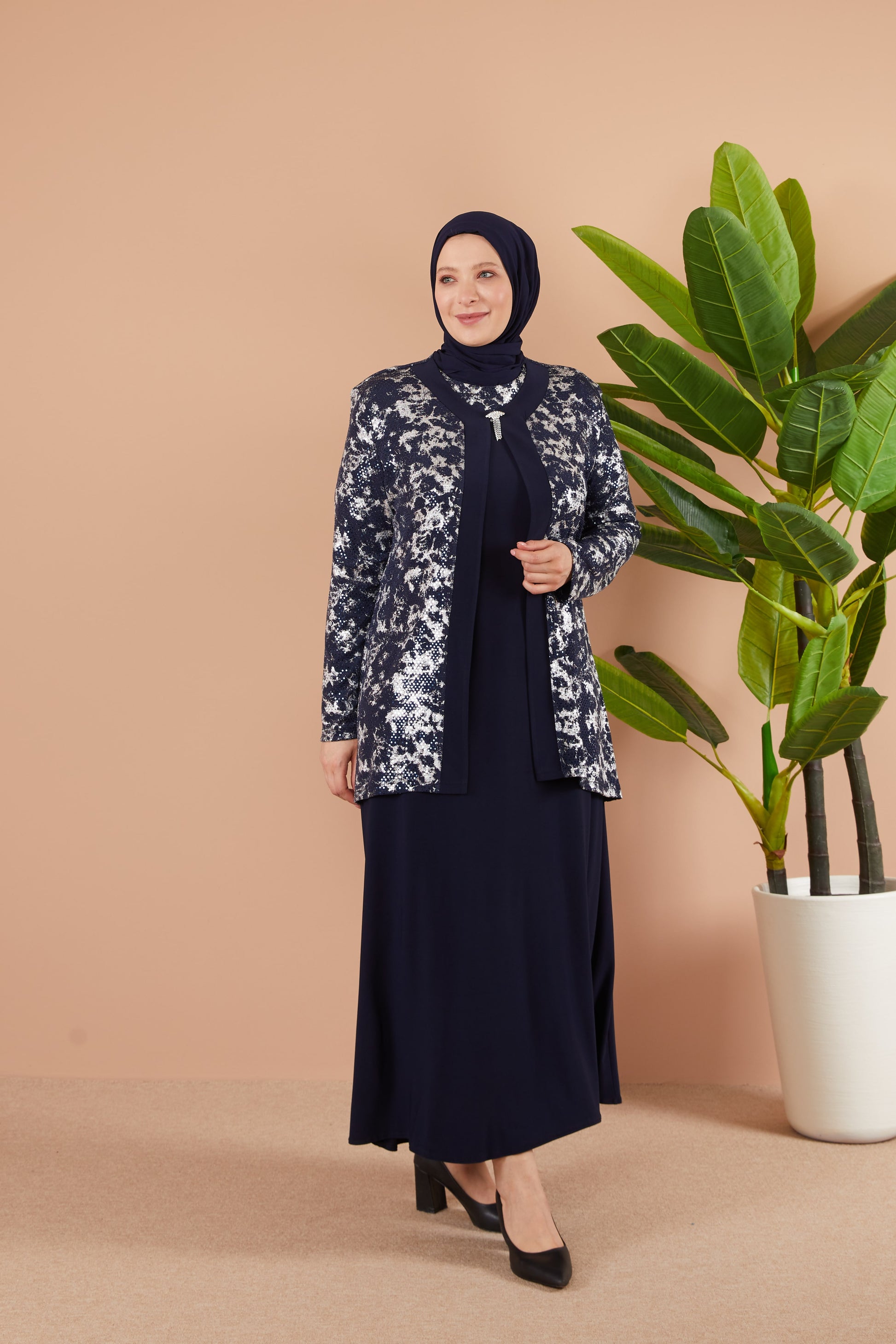 ميزة المنتج: التصميم من المجموعة الجديدة و متوفر في الاحجام الكبيرة،الطقم يتكون من قطعتين الجاكيت والفستان.شكل تصميم الرقبة بيضاوي،الاكمام مستقيمة. القطعتين من قماش الليكرا ساندي،يمكن تنسيق كل قطعة لوحدها.لون المنتج هو بالضبط كما في الصورة