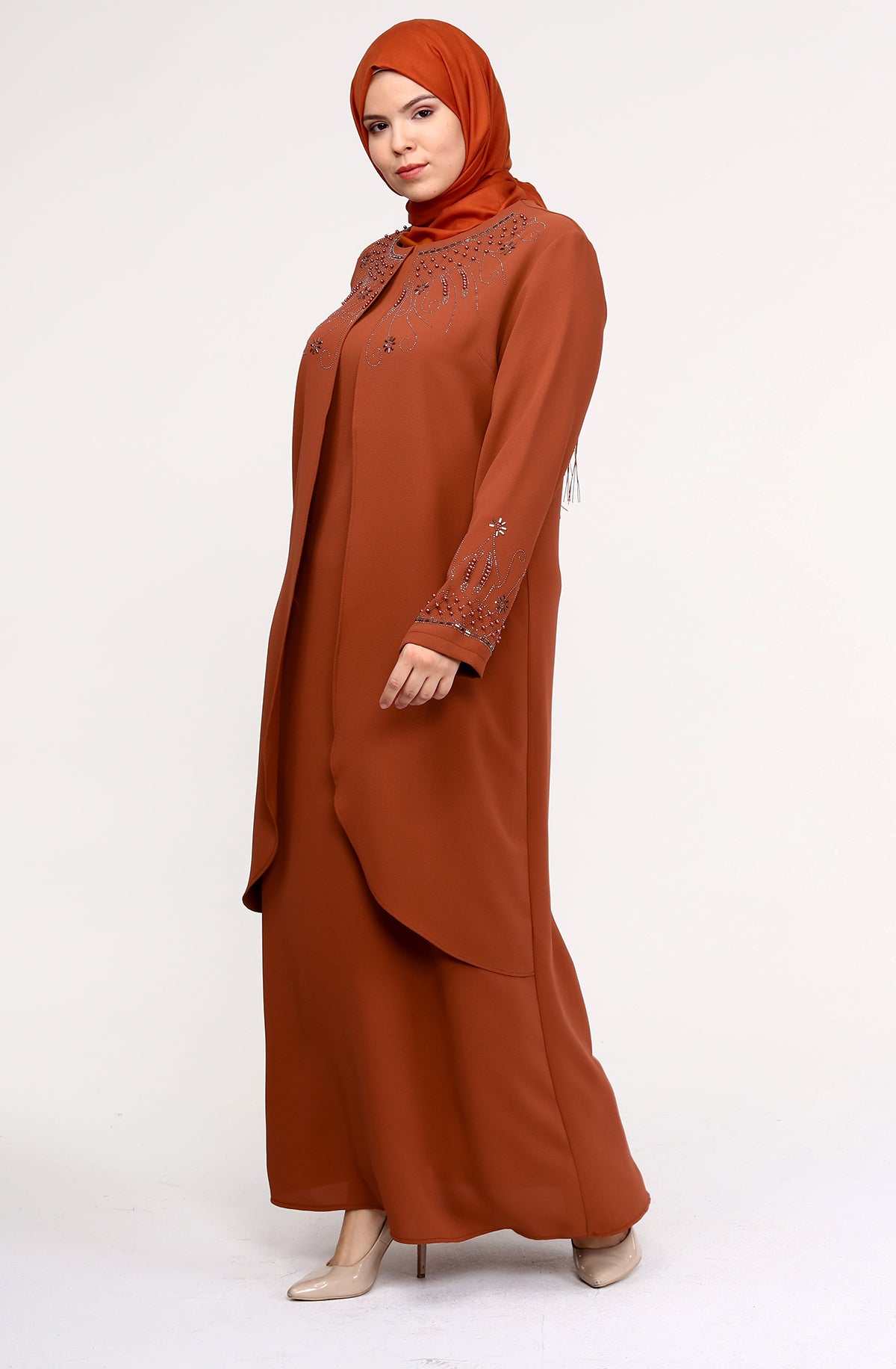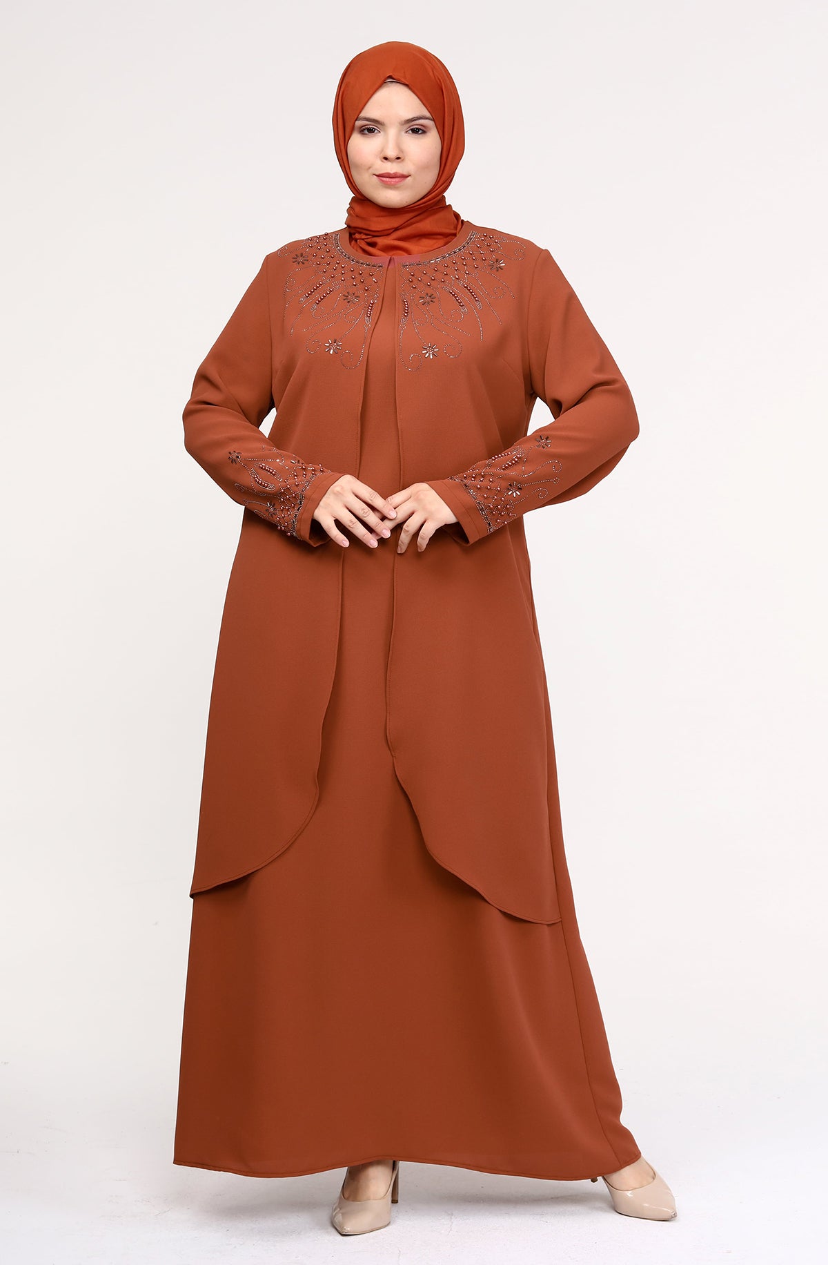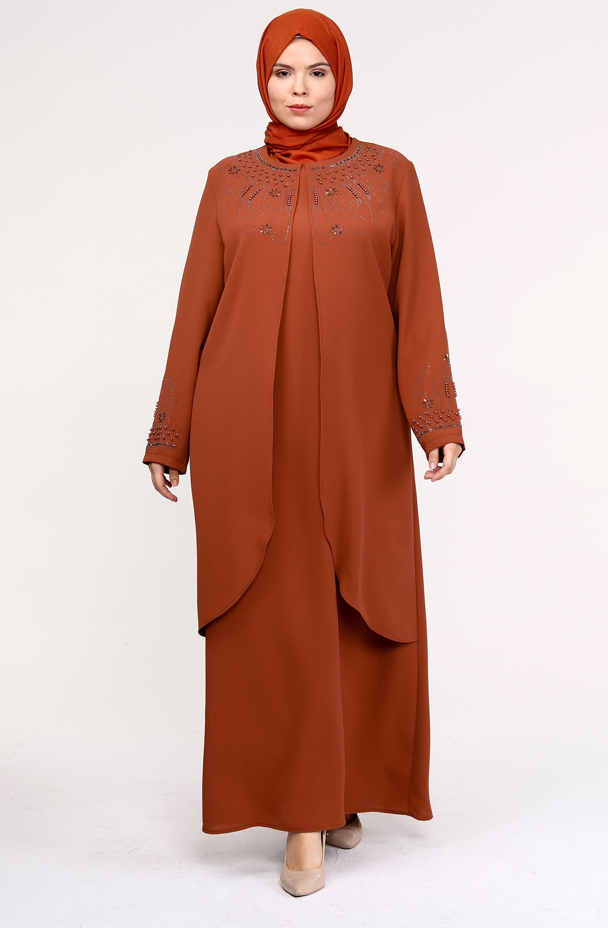 طقم فستان مقاس كبير قرميدي | 8012-1-29