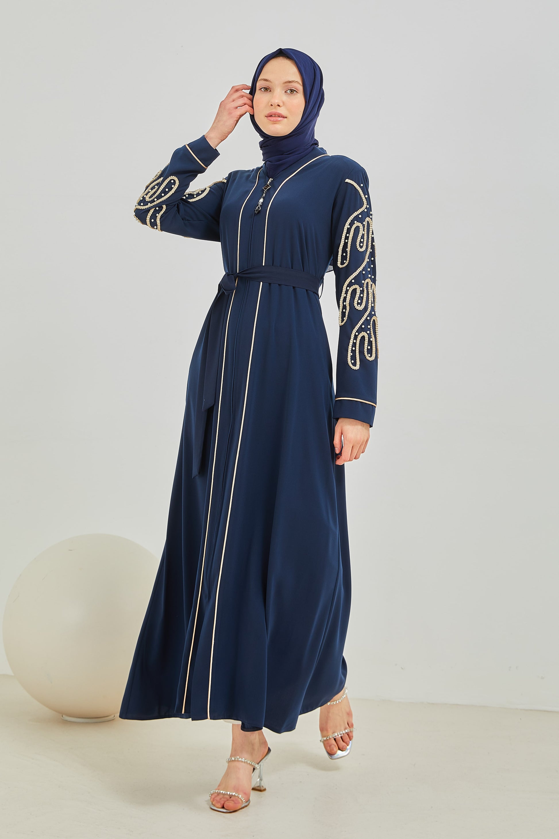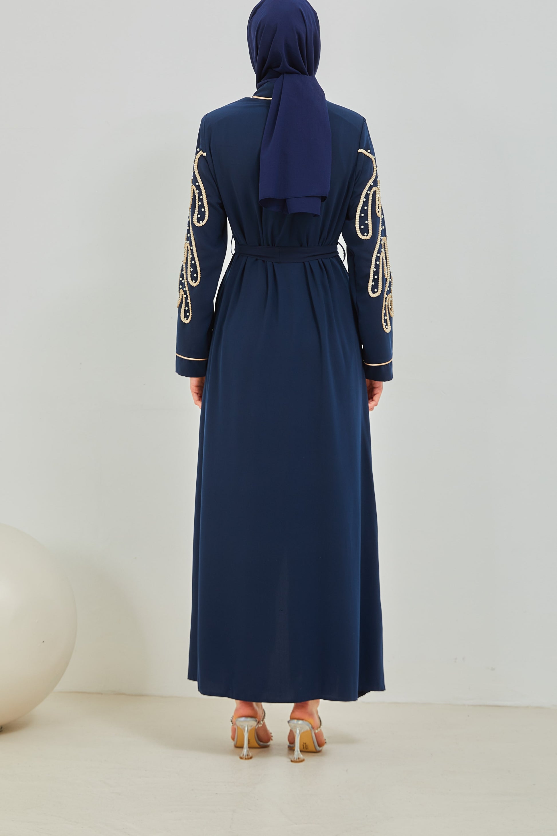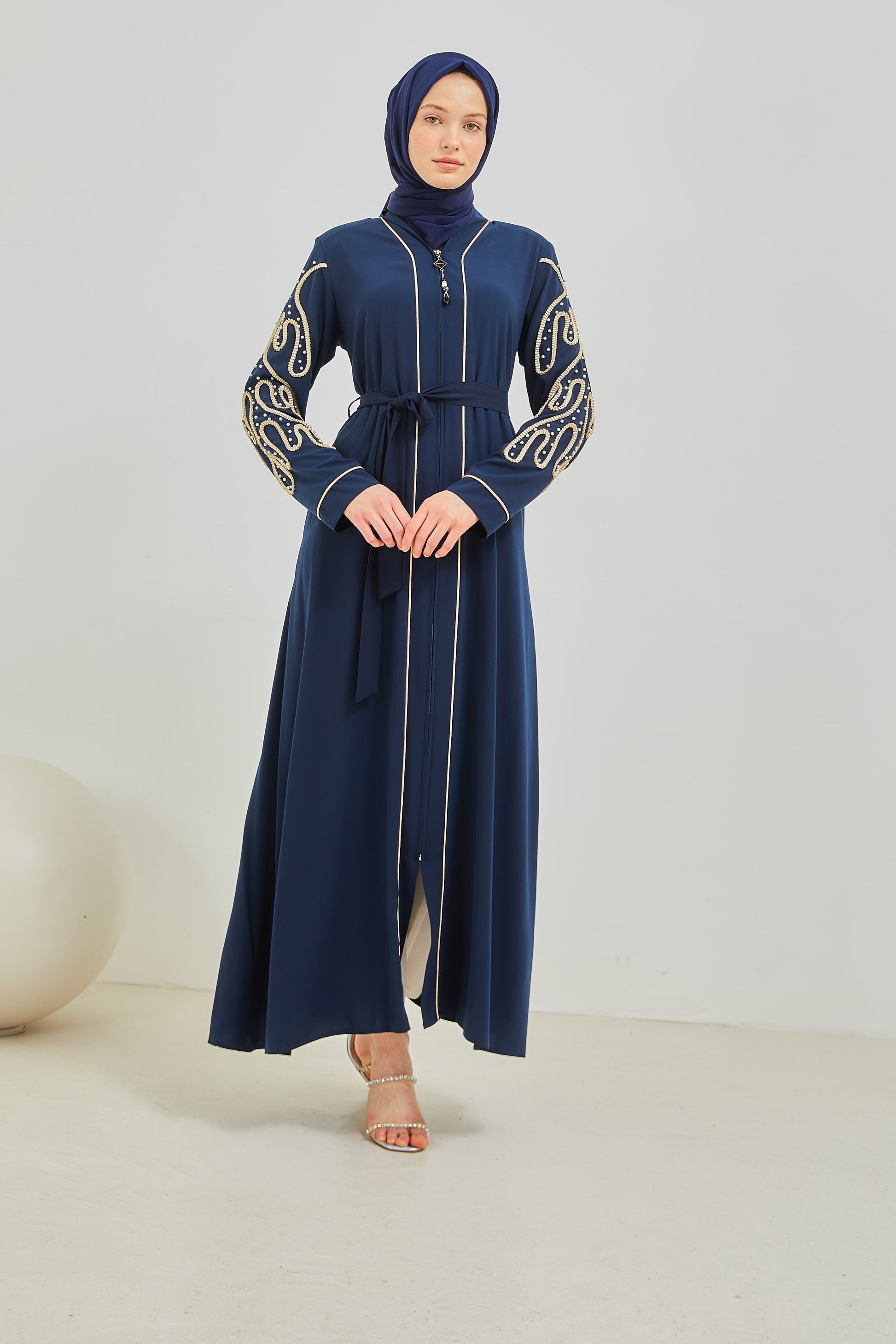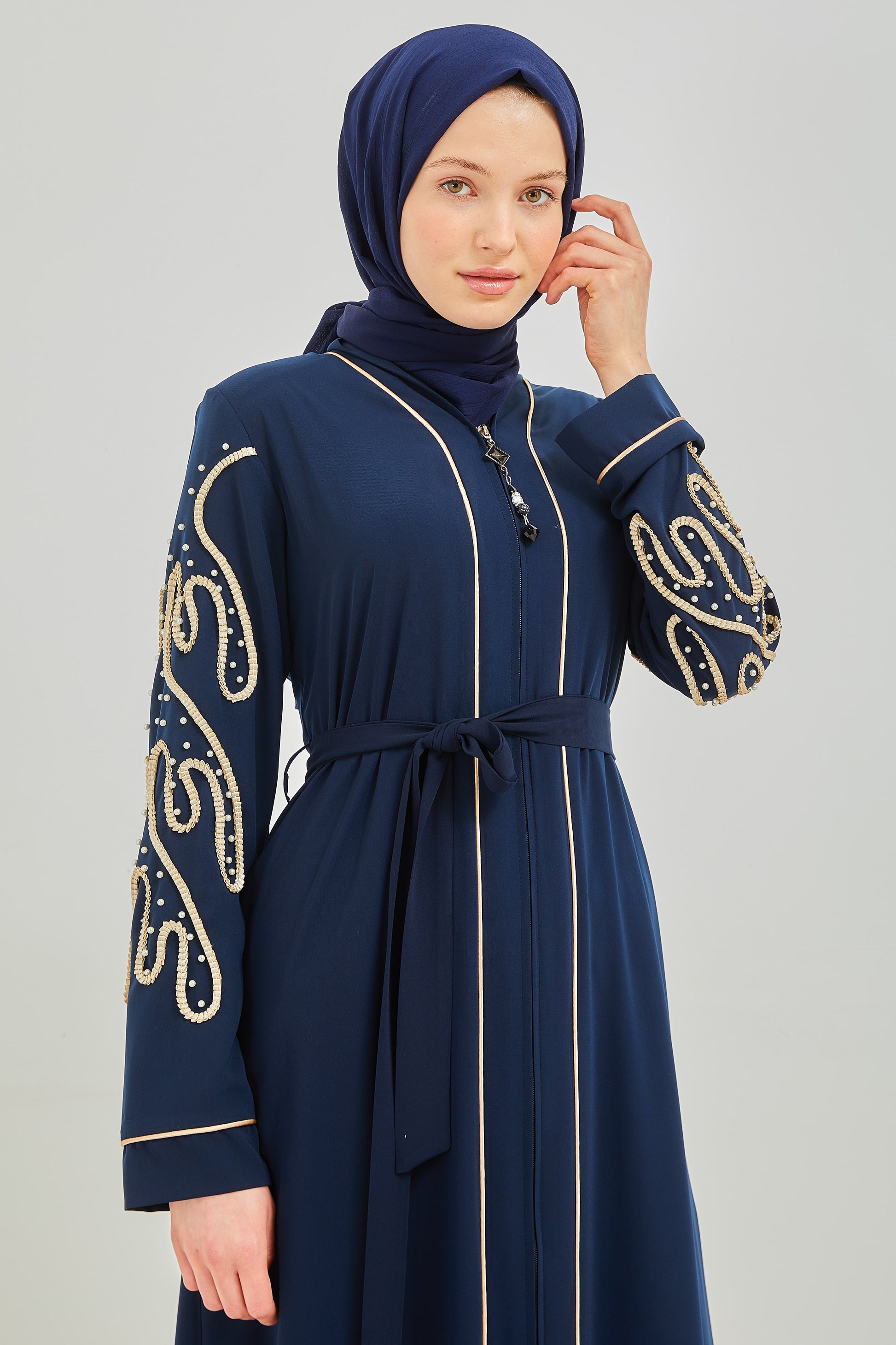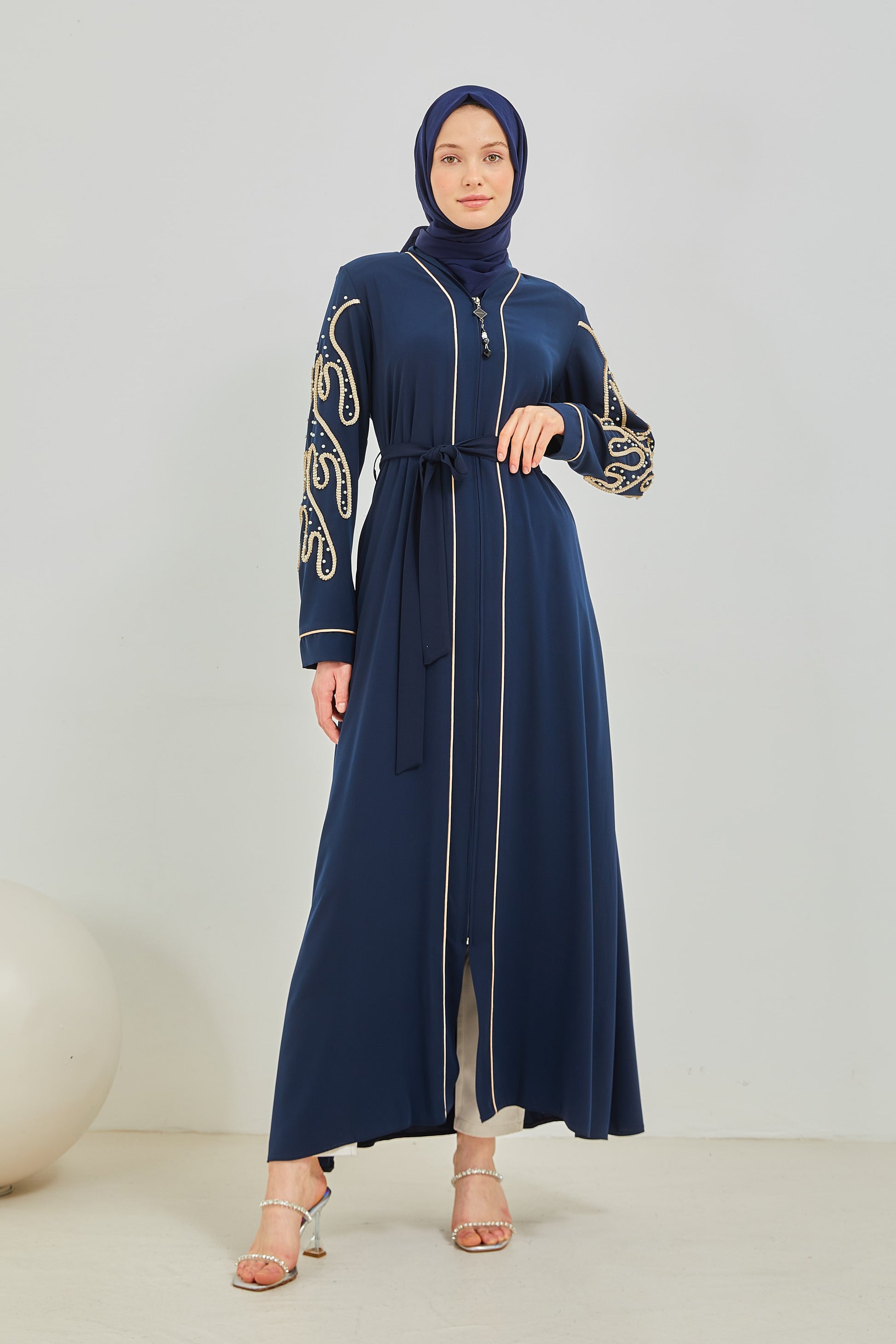 عباية كحلي مطرزة على المعصمين | 2067-6-5