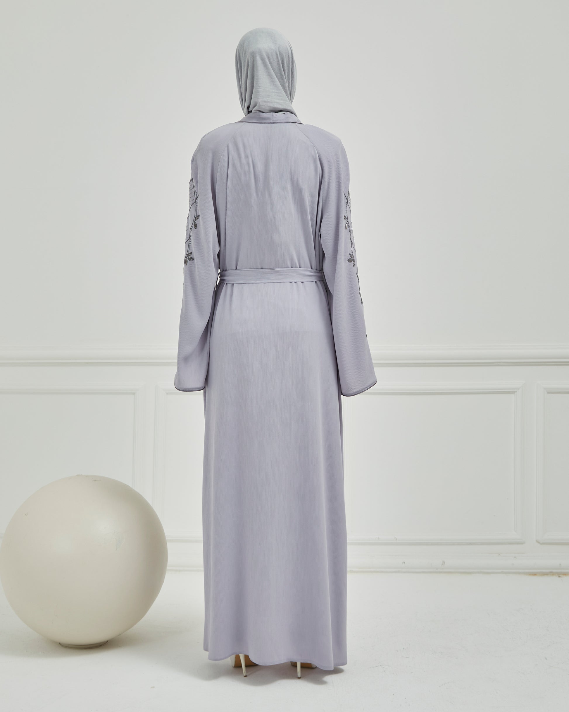 Omzu Nakışlı Abaya Ferace Gri | 1200624