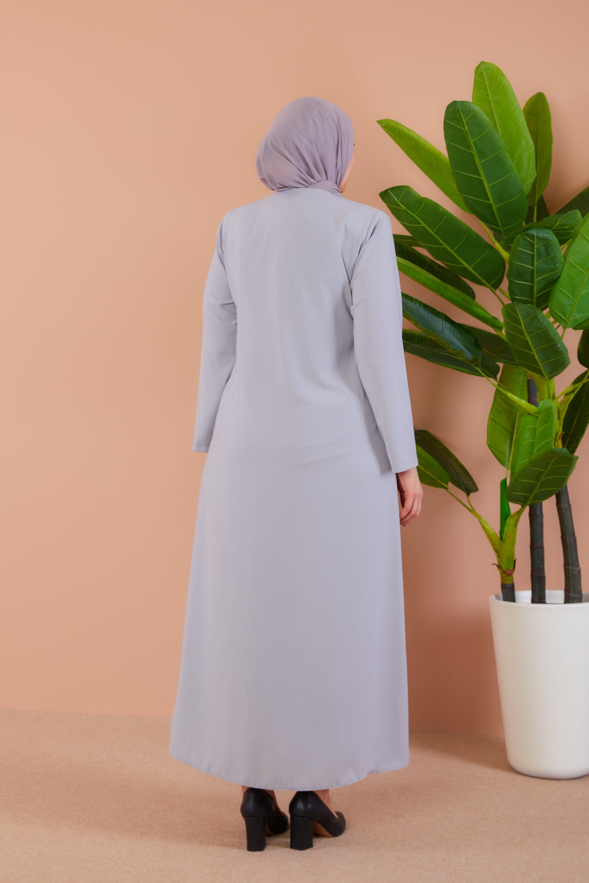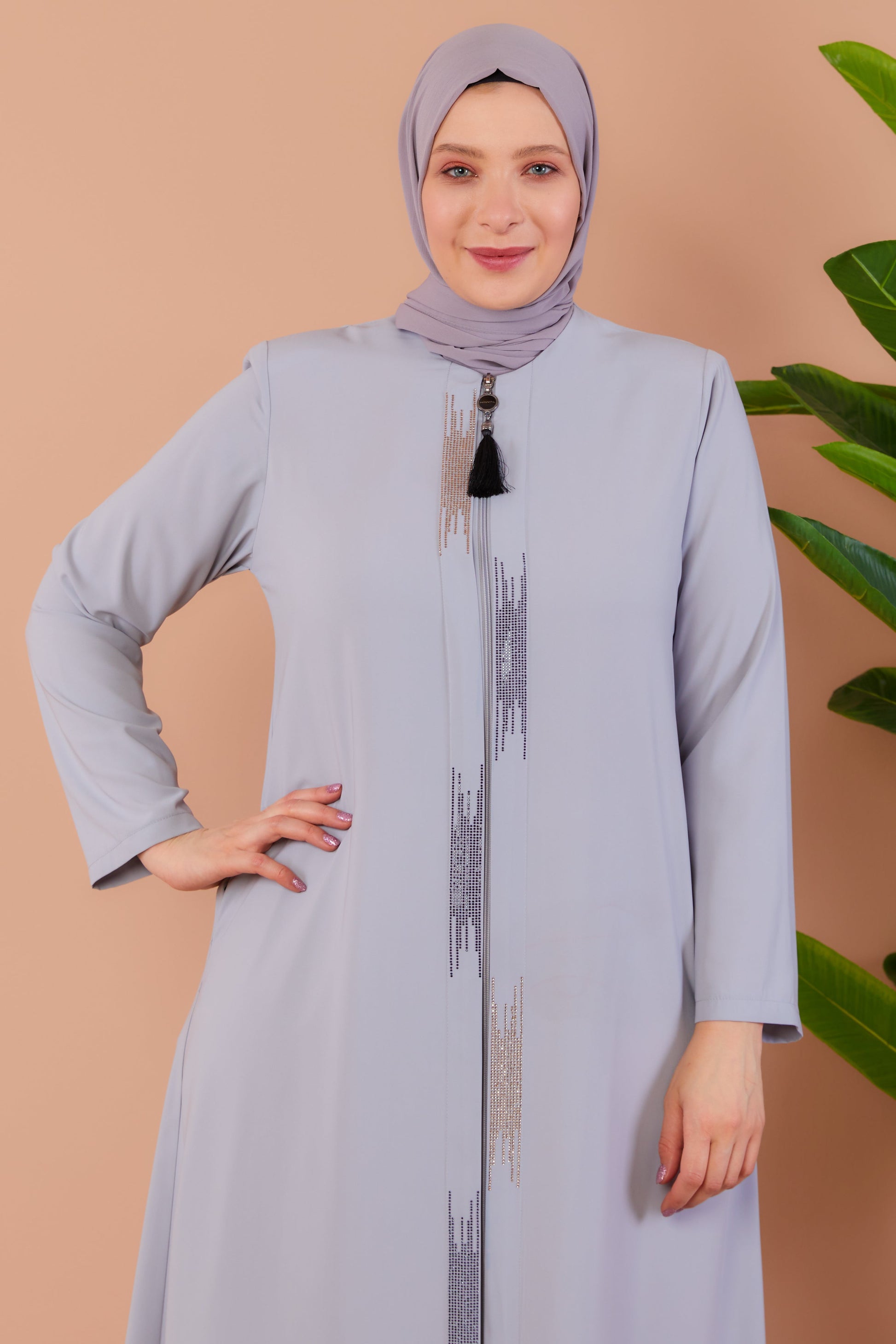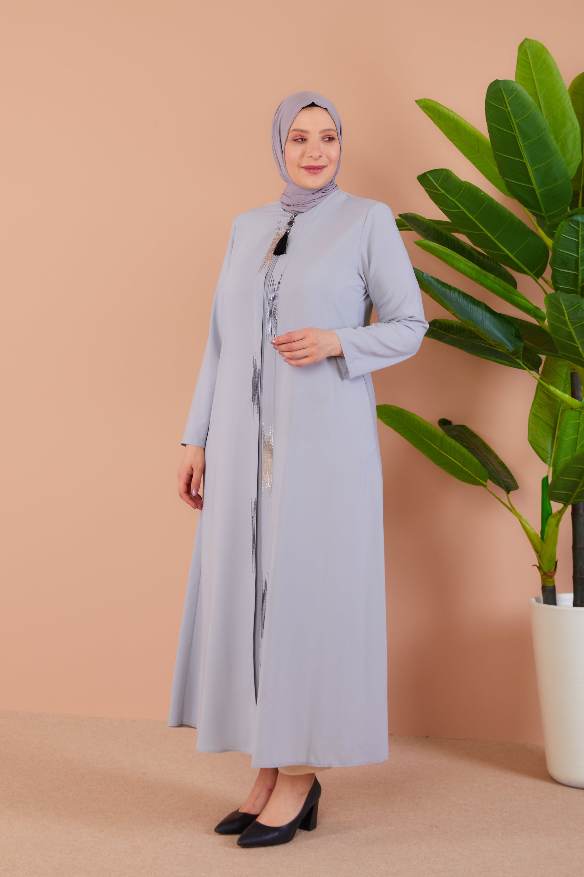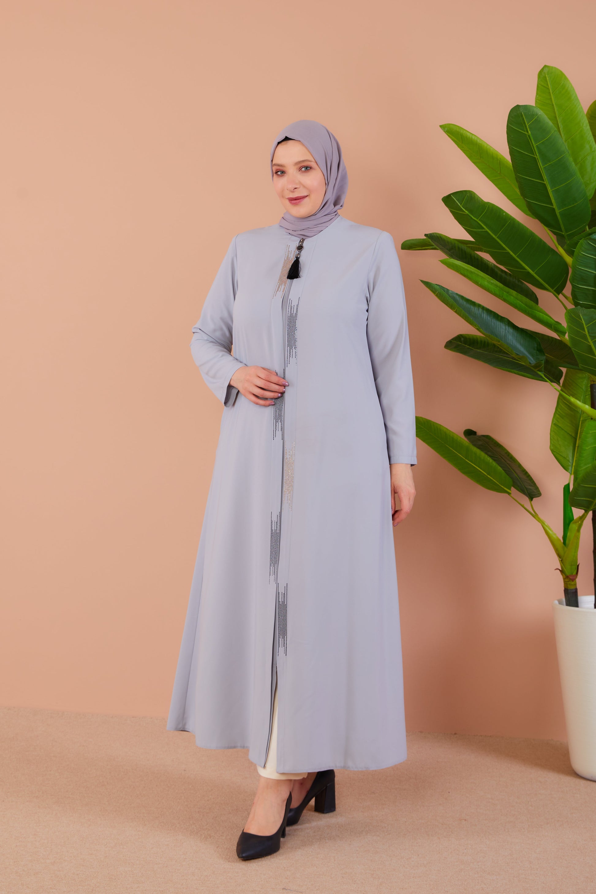 عباية قياس كبير لون رمادي مزينة بالحجر من الجهة الامامية |2066-24