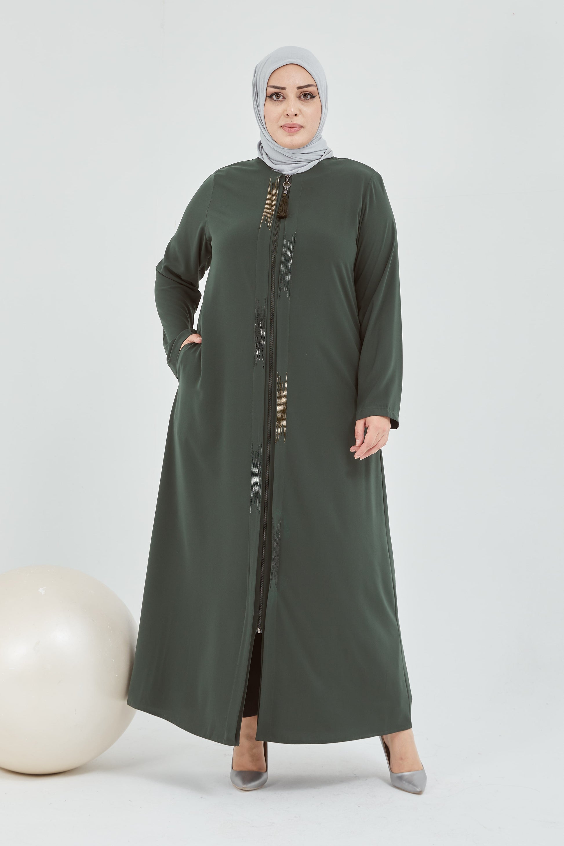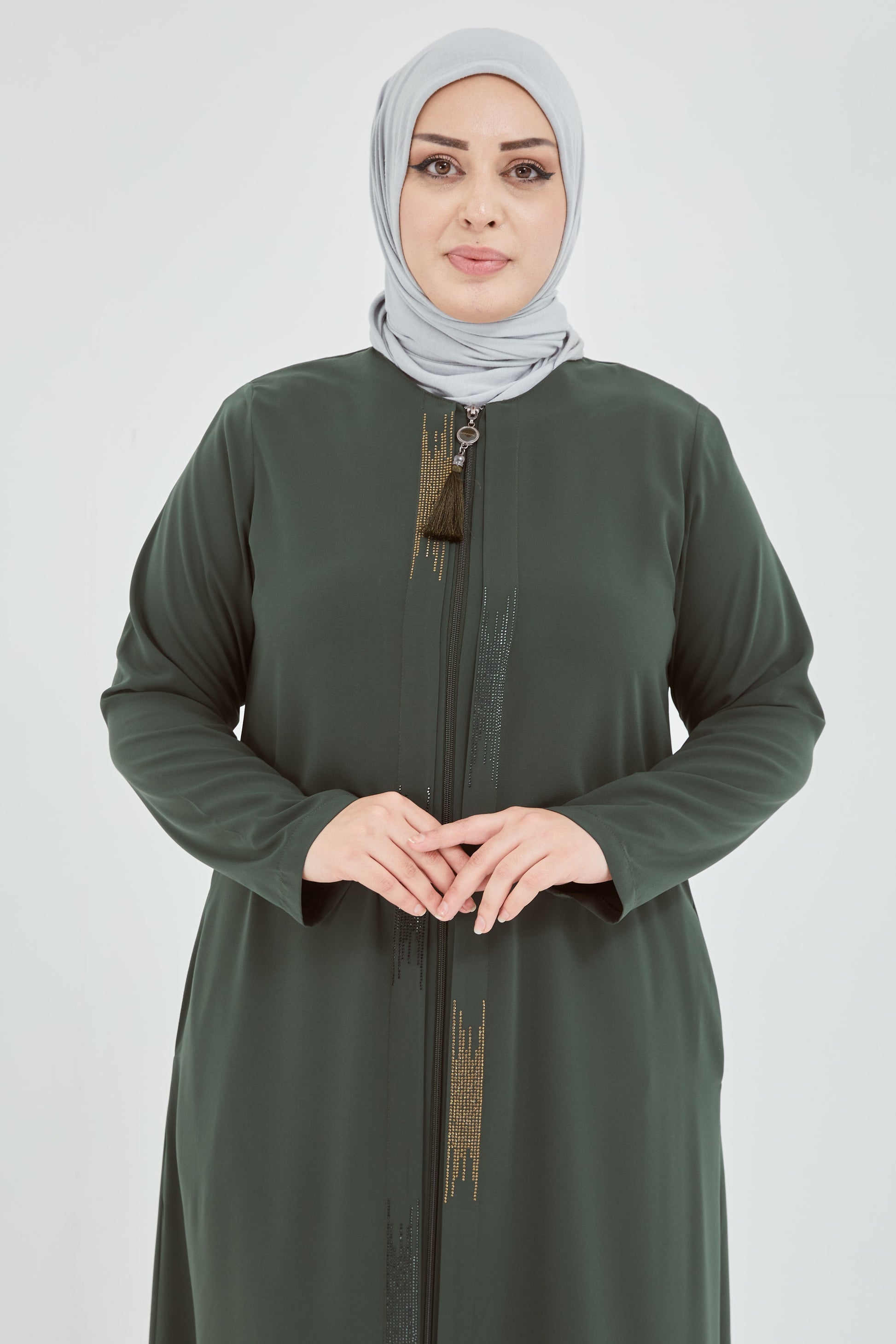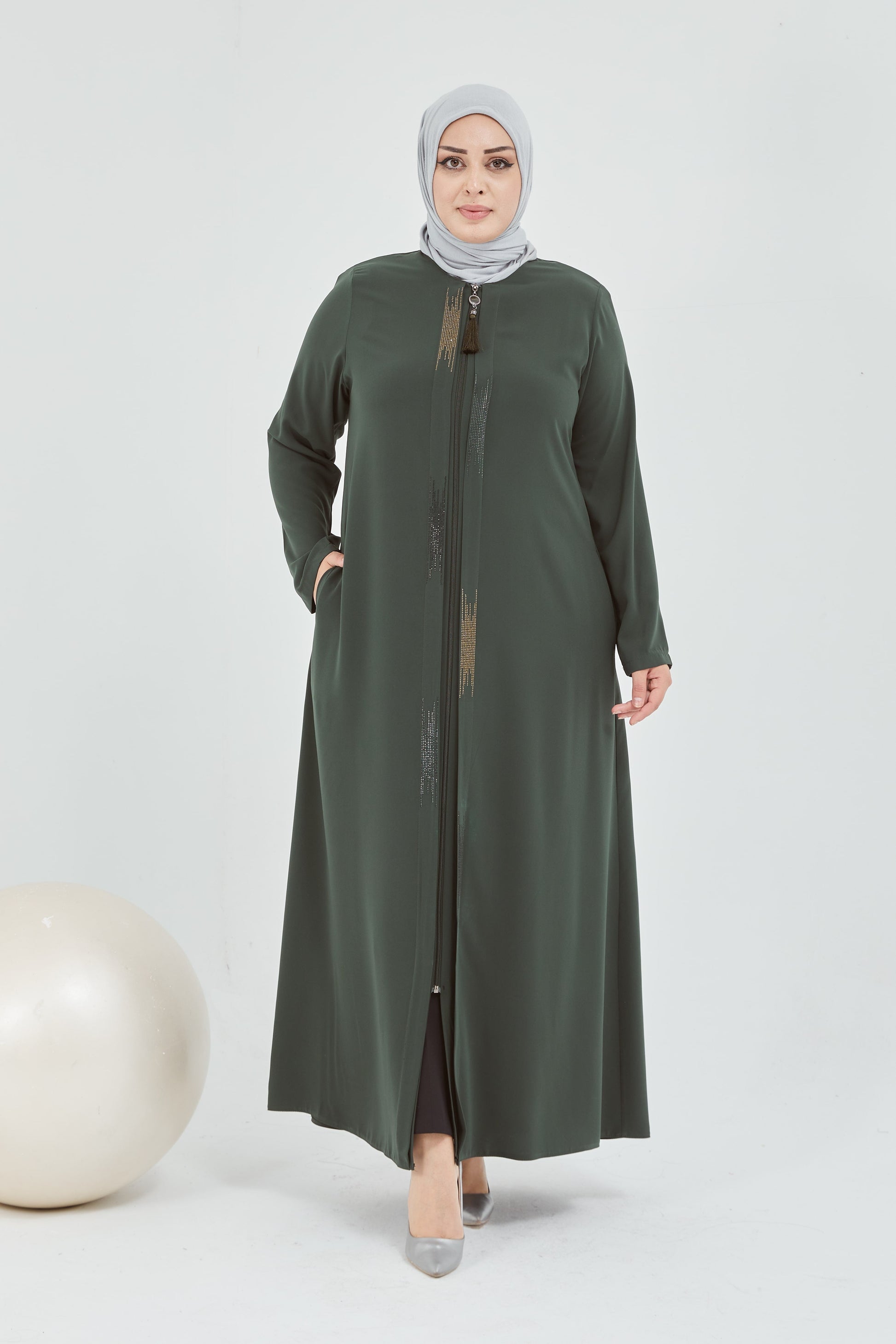 عباية زيتوني قياس كبير مزينة بالحجر من الأمام | 2066-9