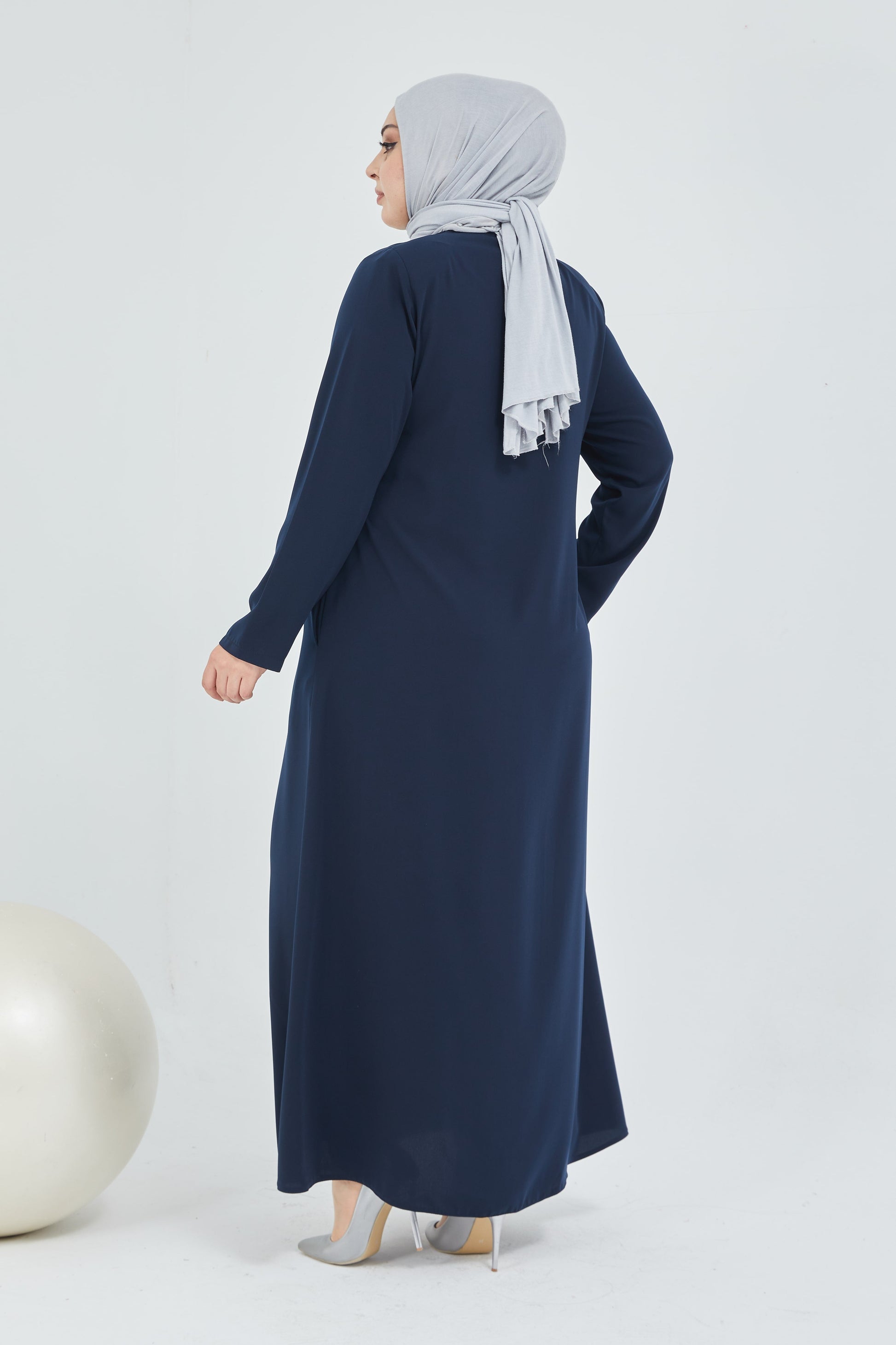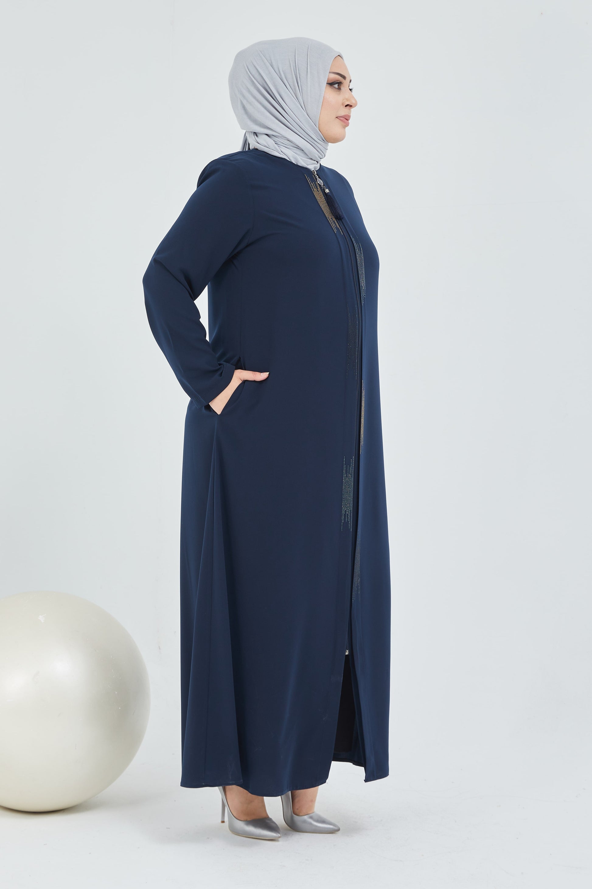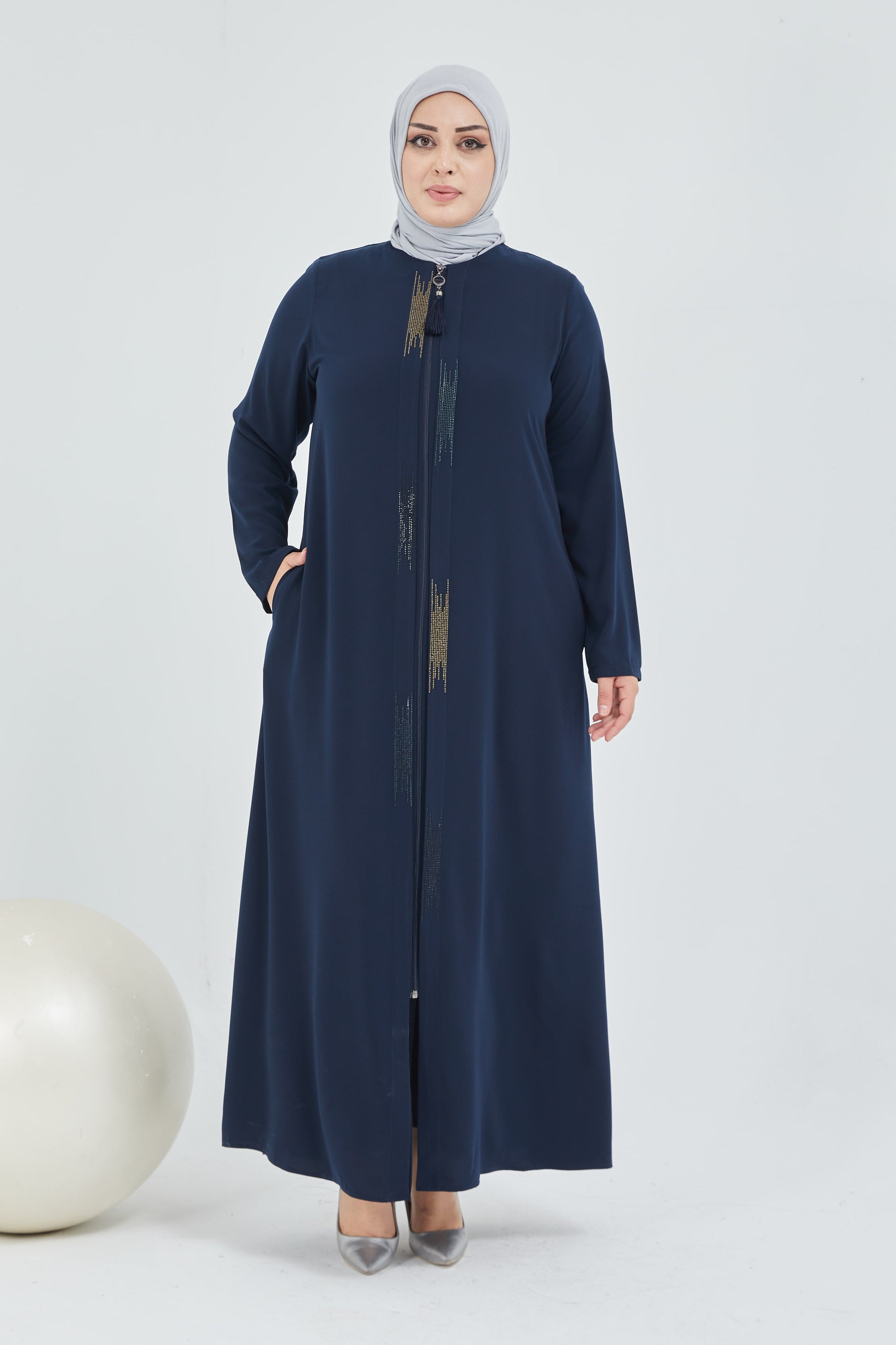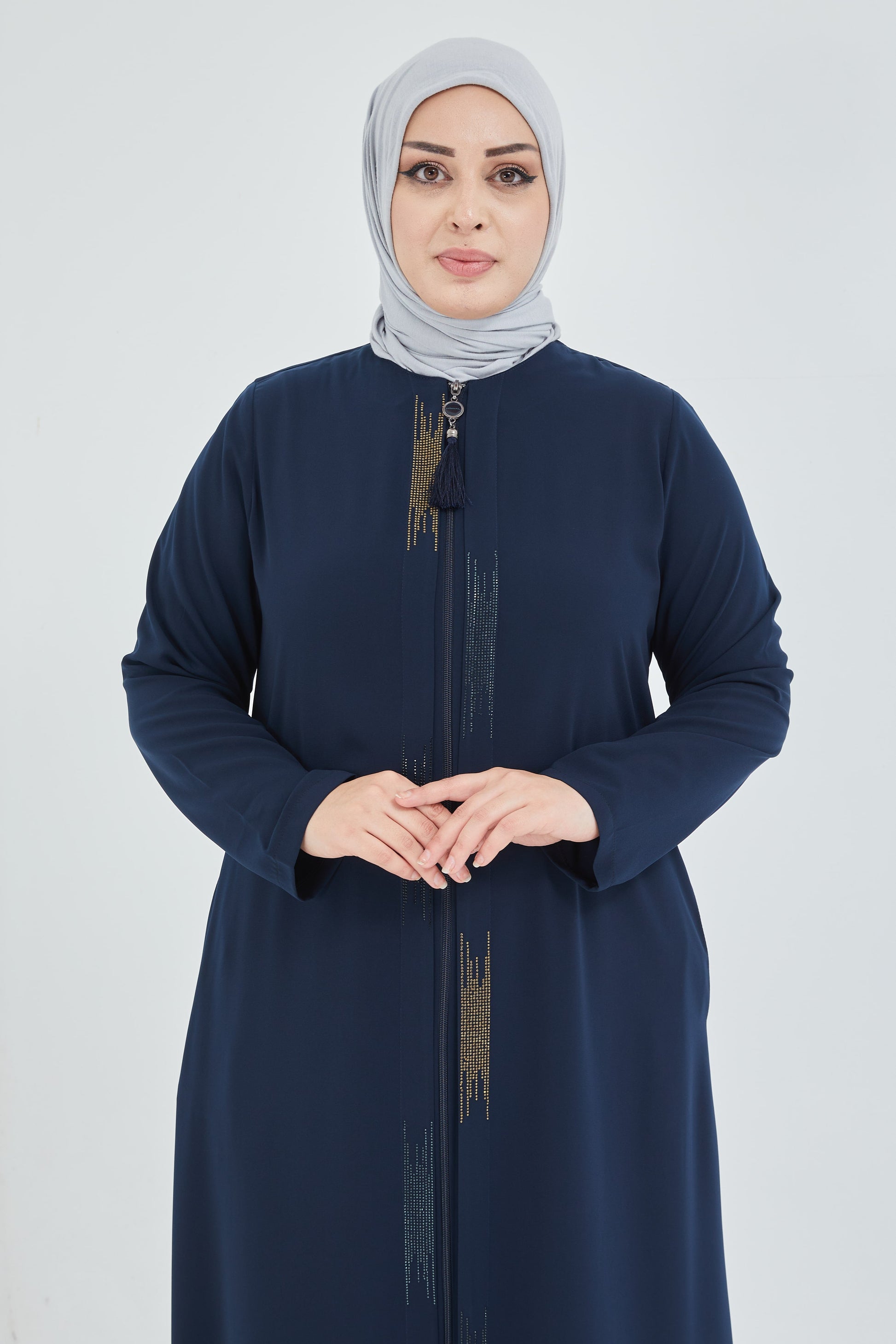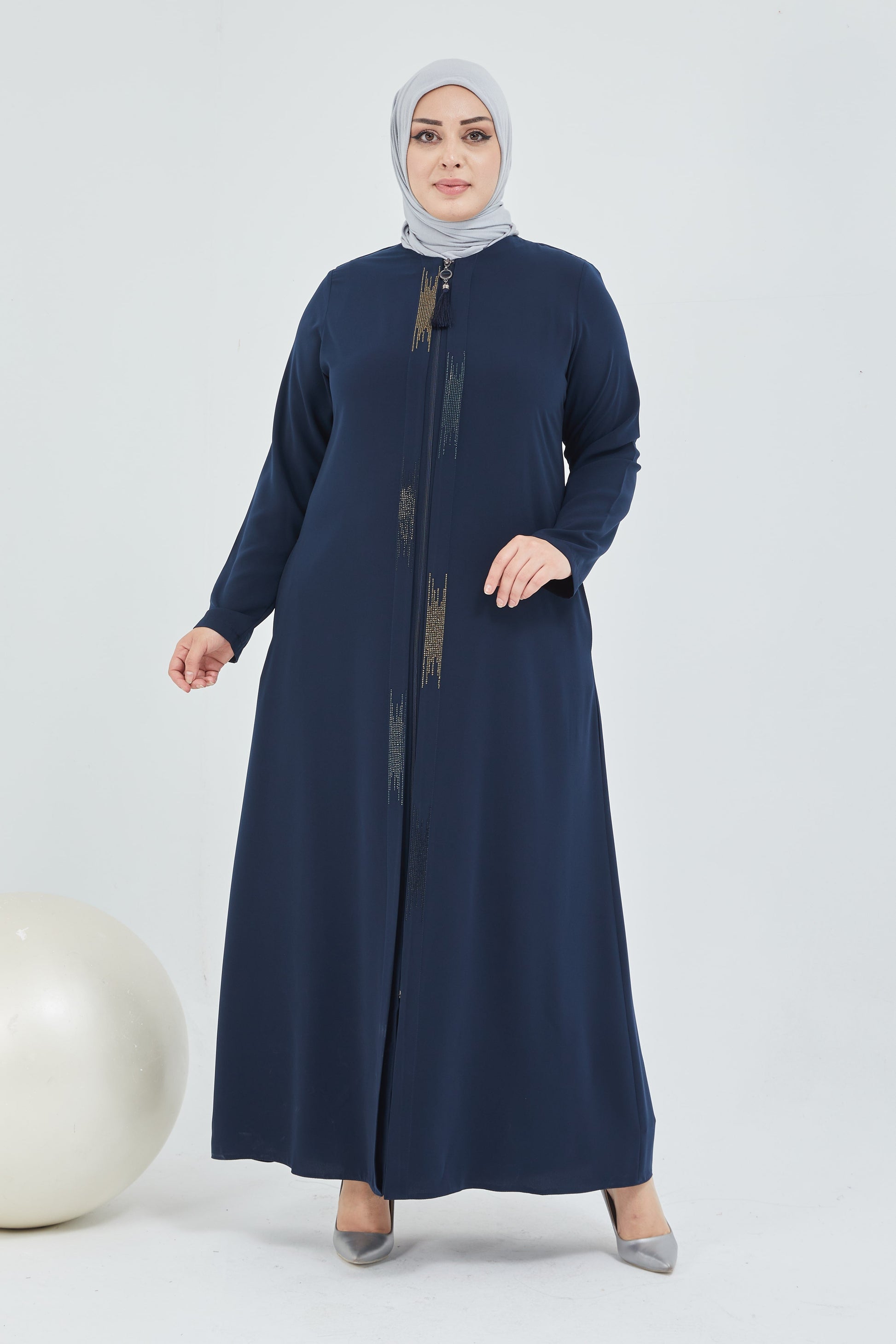 عباية كحلي مقاس كبير مزينة بالحجر مع فتحة مزدوجة من الأمام | 2066-5