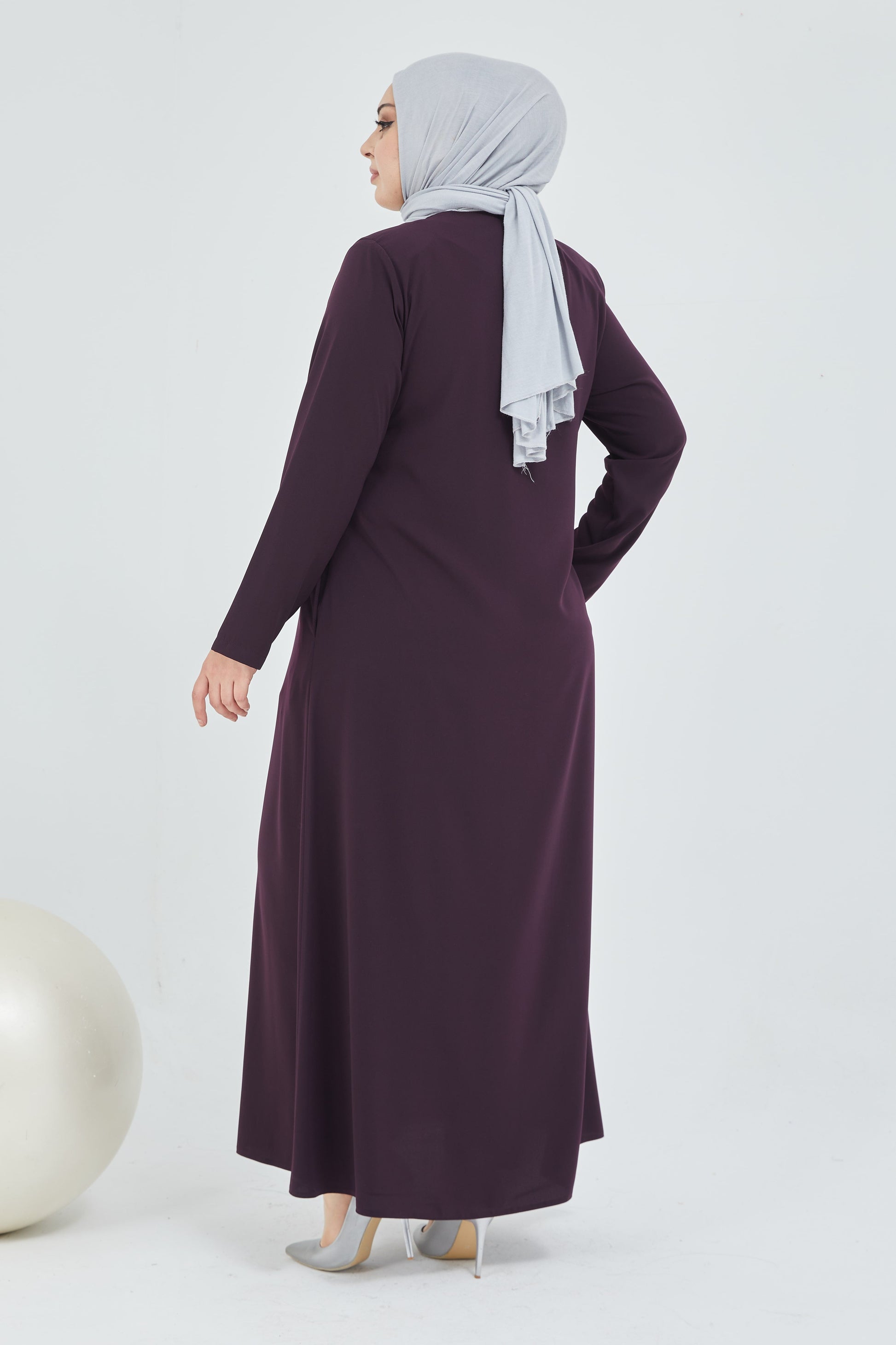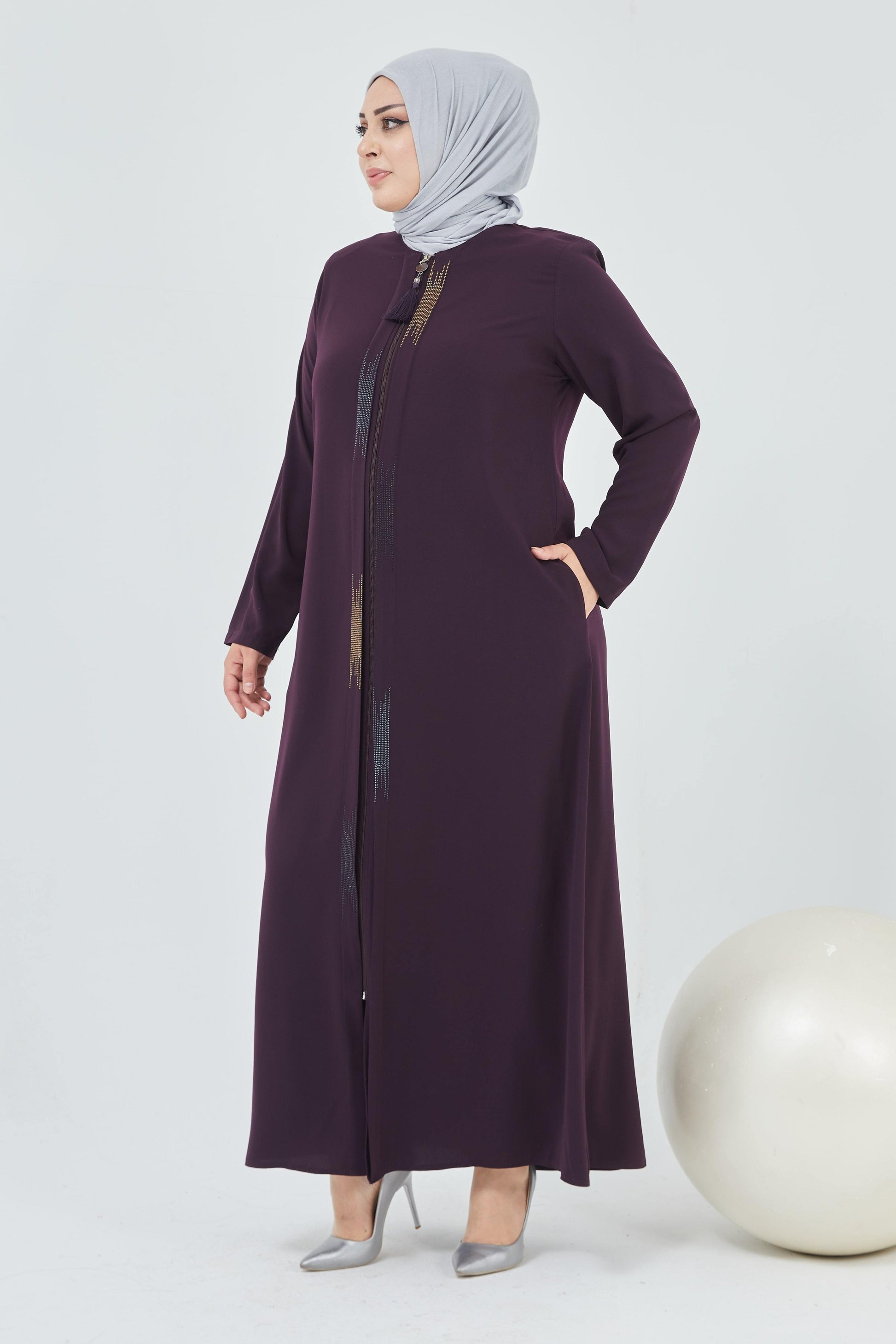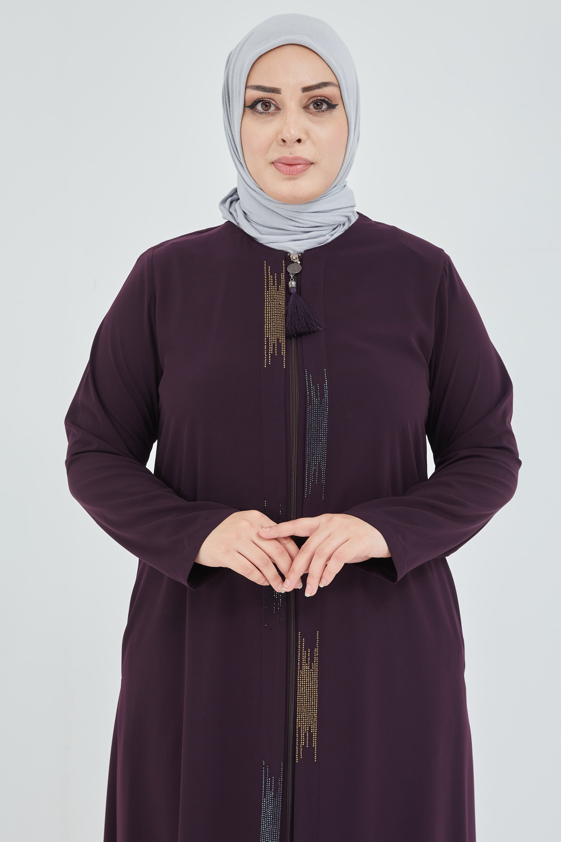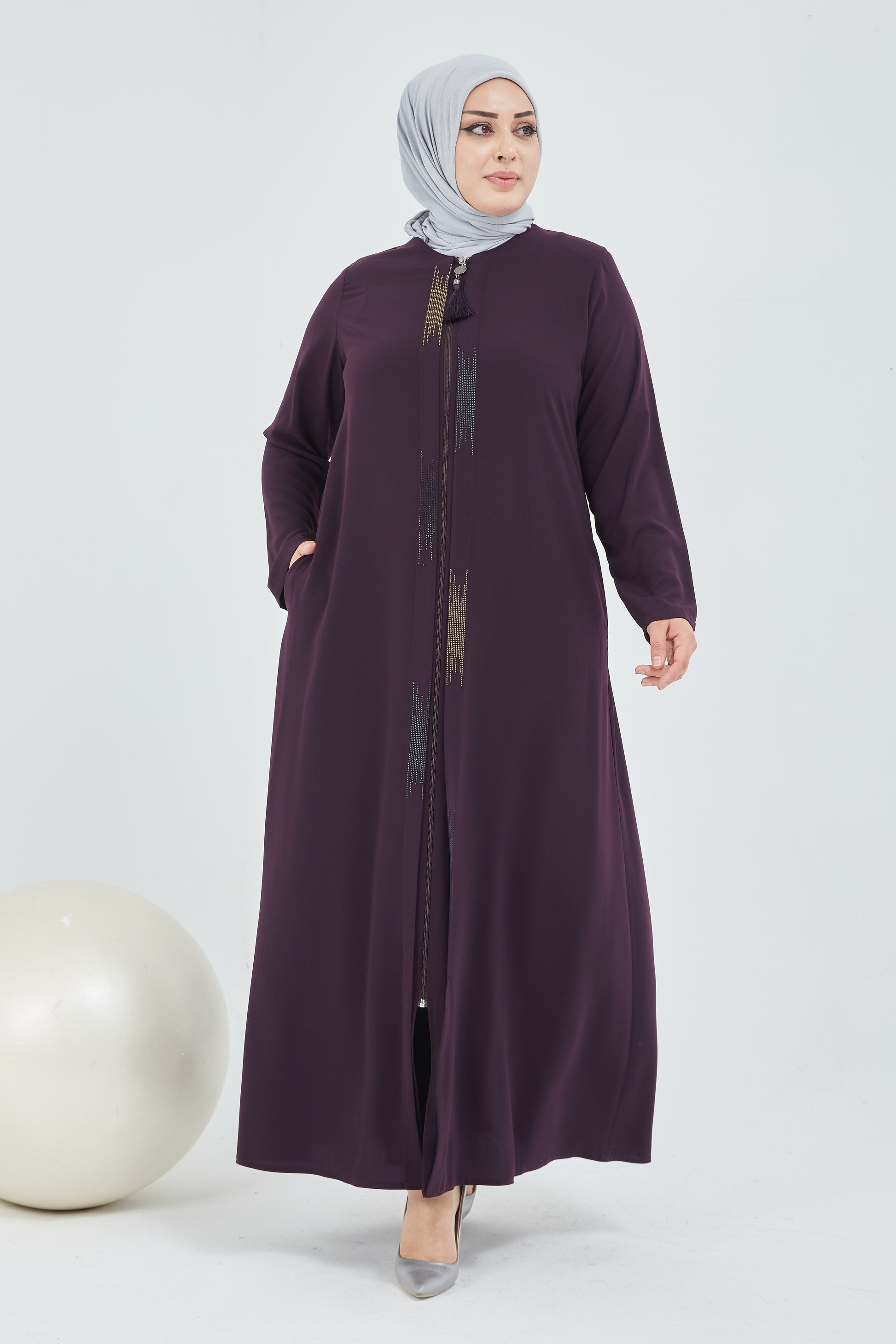 عباية مقاس كبير لون أرجواني مع فتحة من الأمام مزينة بأحجار | 2066-8