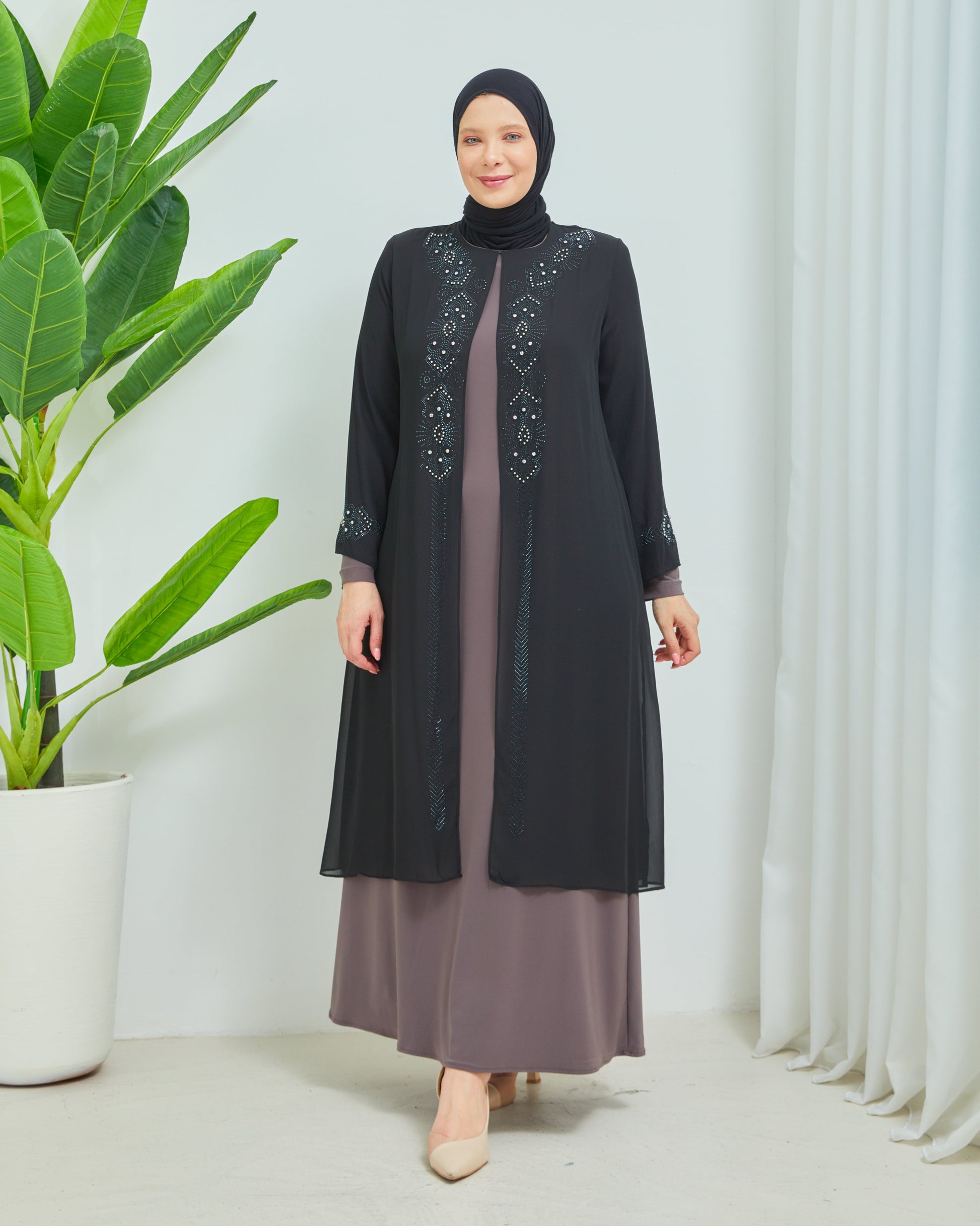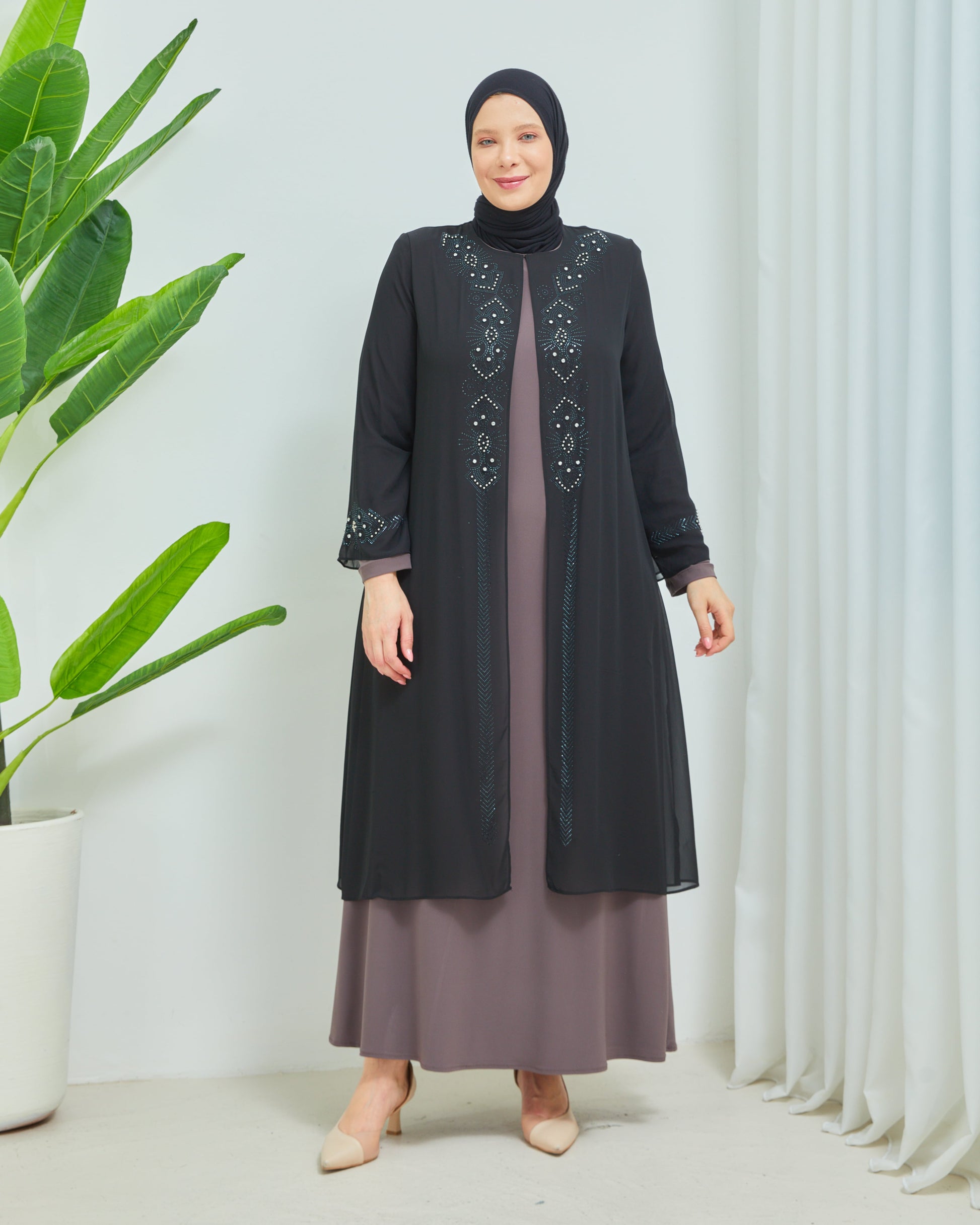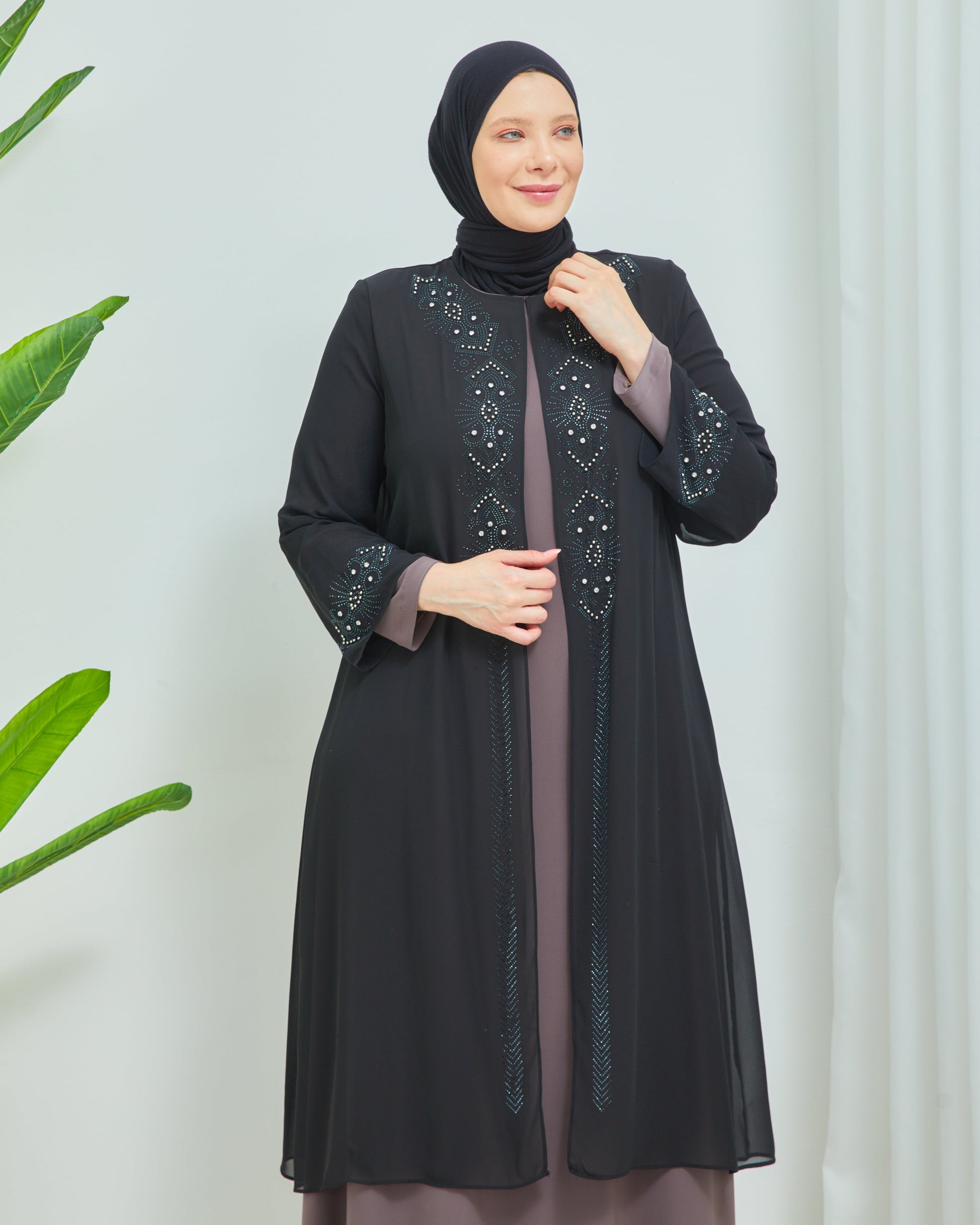 | 8013-1-24فستان من شيفون مرصع بالأحجار في اللون الرمادي