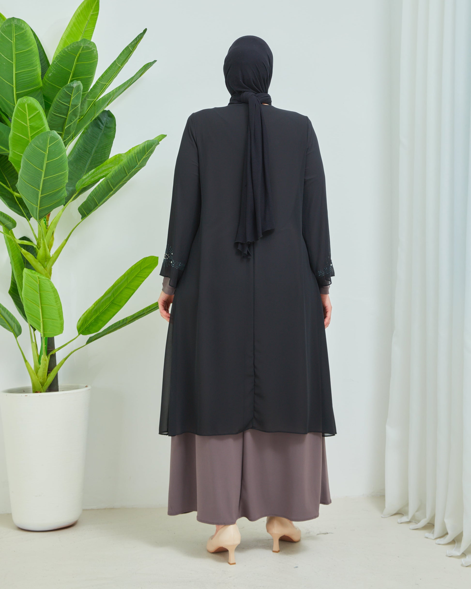 ميزة المنتج: من مجموعة الموسم الجديد بالإضافة إلى حجم منتج مقاس كبير. إنه طوق بيضاوي. أذرع المنتج هي أذرع مستقيمة. وعلى الظهر مصنوع من قماش الشيفون إضافي. يتميز قماش الشيفون بتفصيل حجري في الأمام والمعصمين. قماش الشيفون هو نصف معصم. لون المنتج مثل صورة تماما