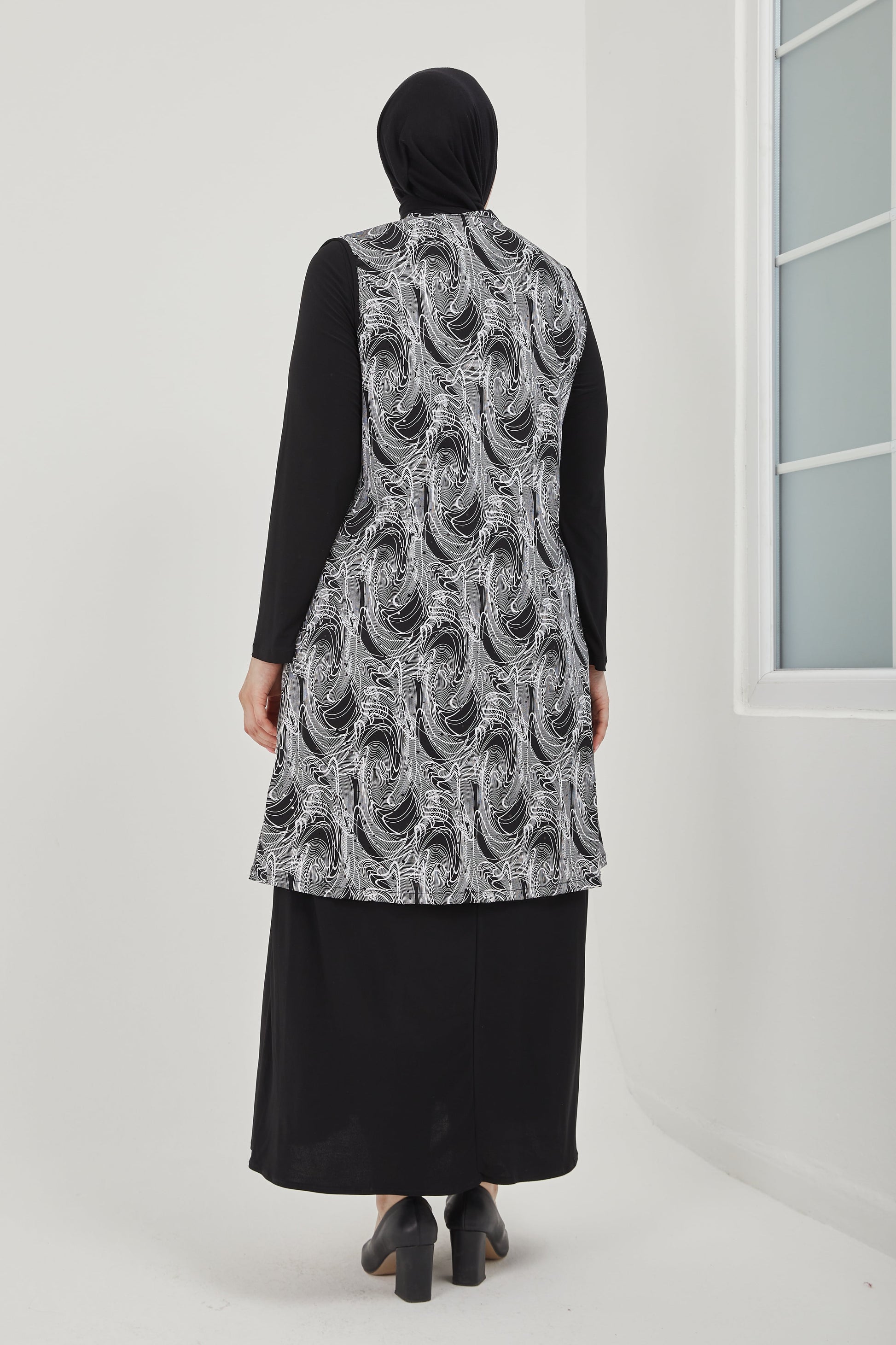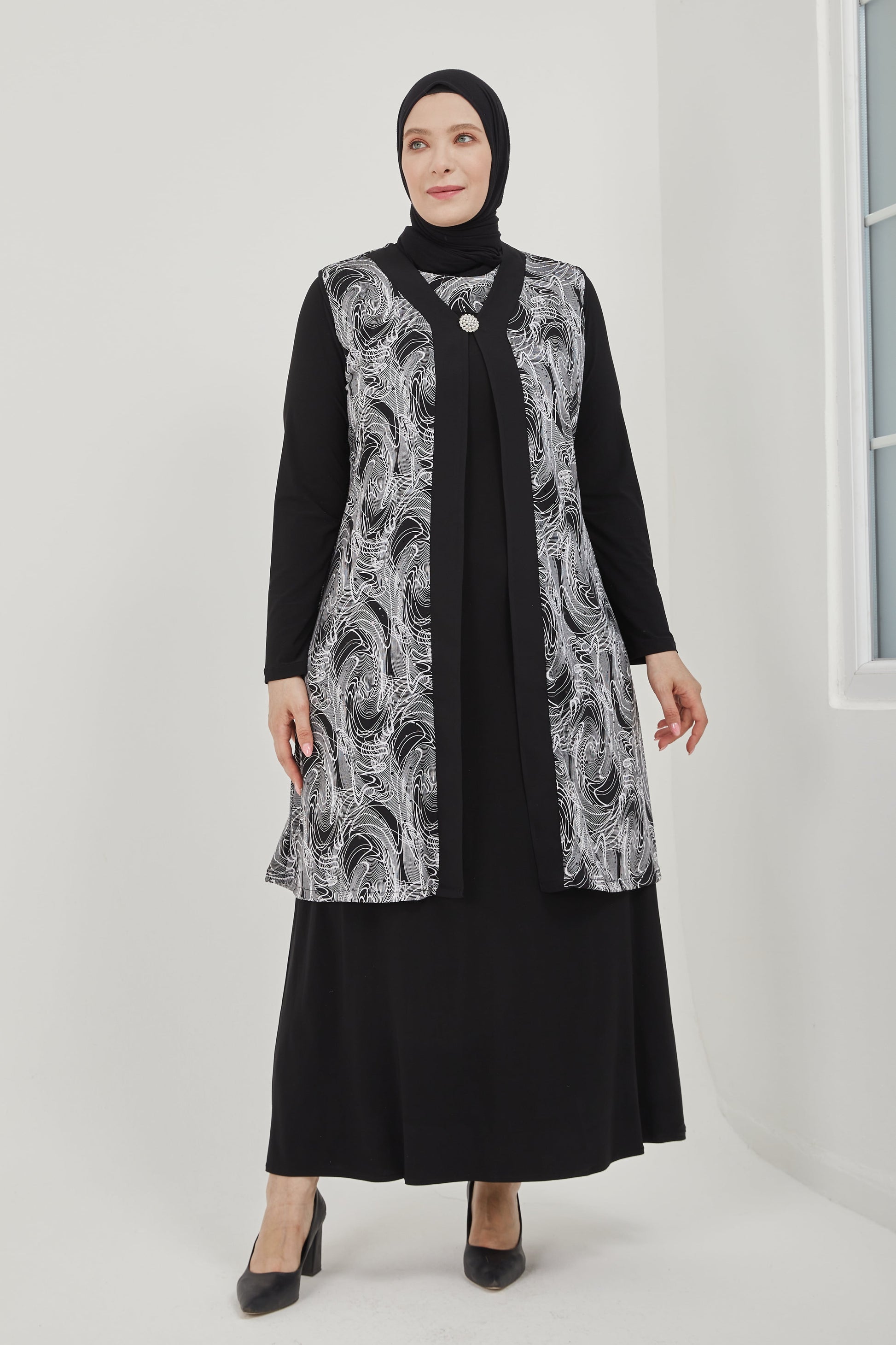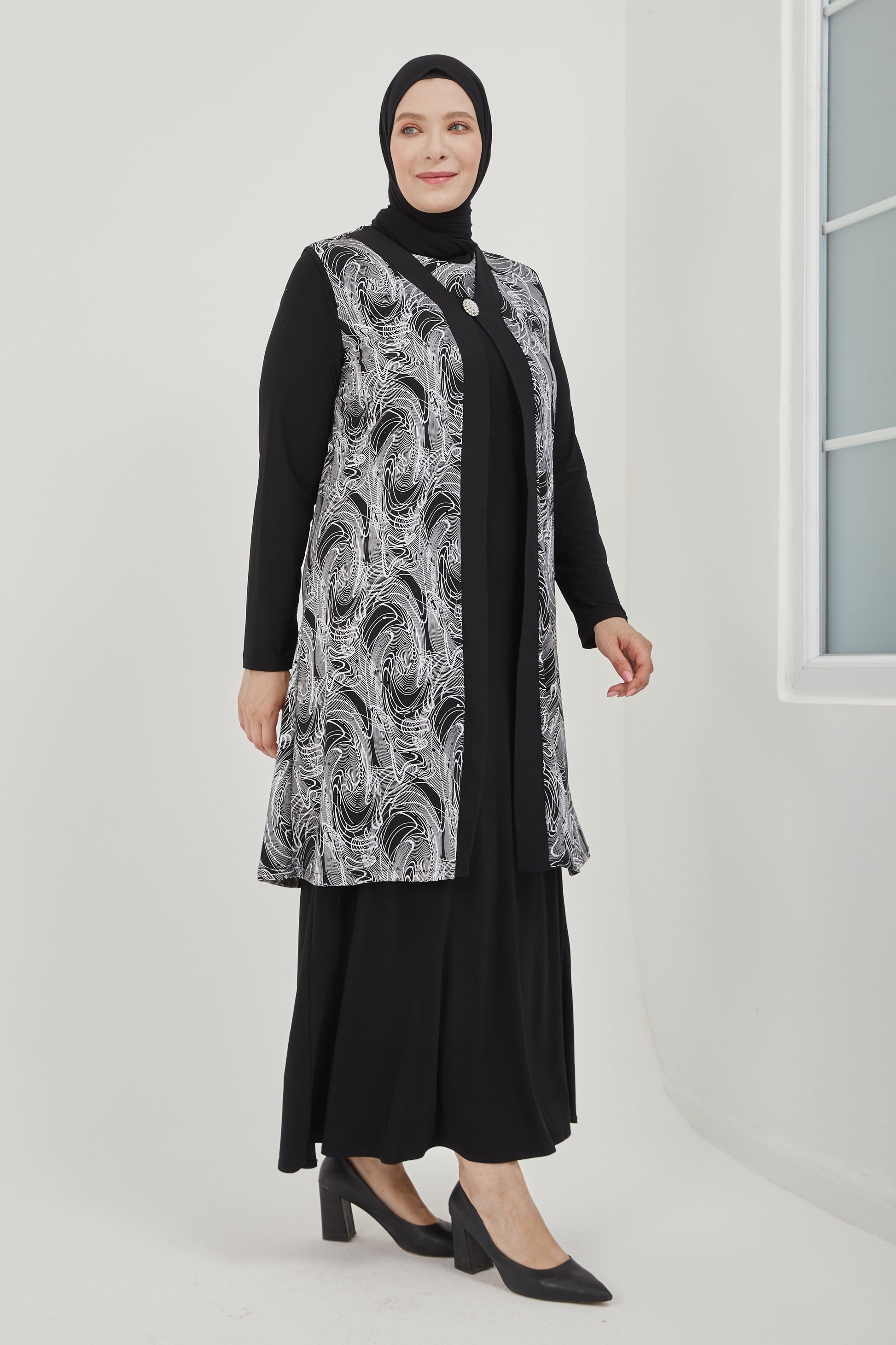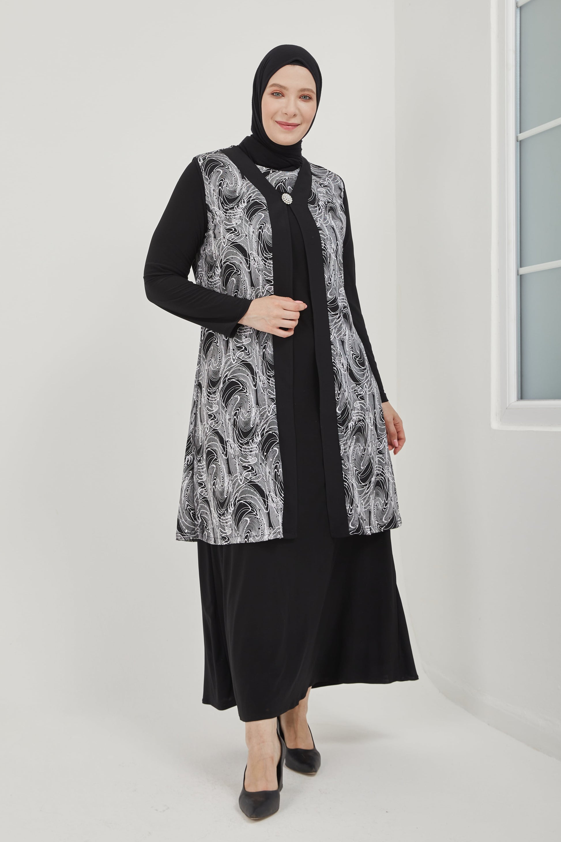 ميزة المنتج: التصميم من المجموعة الجديدة و متوفر في الاحجام الكبيرة،الطقم يتكون من قطعتين الجاكيت والفستان.شكل تصميم الرقبة بيضاوي،الاكمام مستقيمة. القطعتين من قماش الليكرا ساندي،يمكن تنسيق كل قطعة لوحدها لون المنتج هو بالضبط كما في الصور