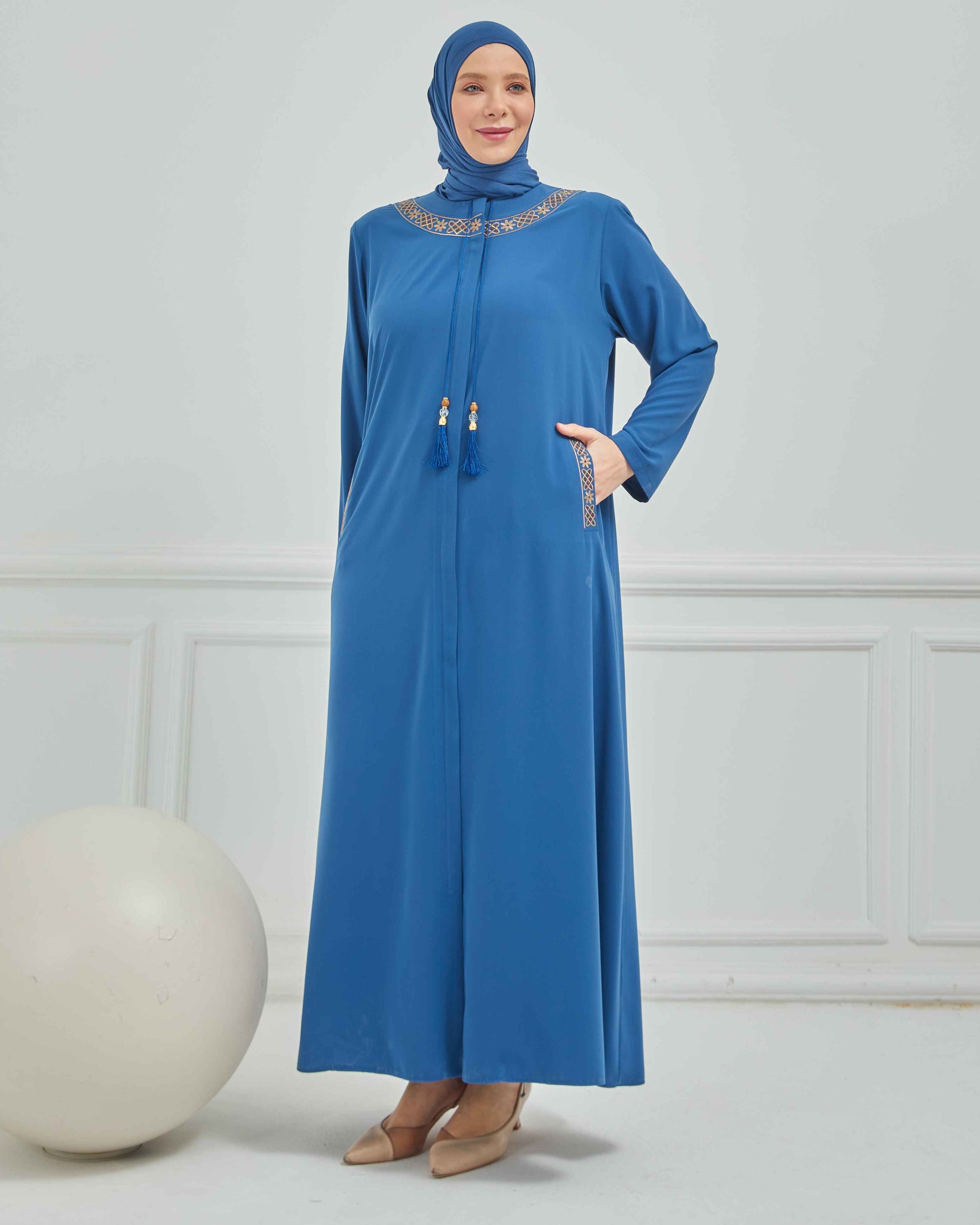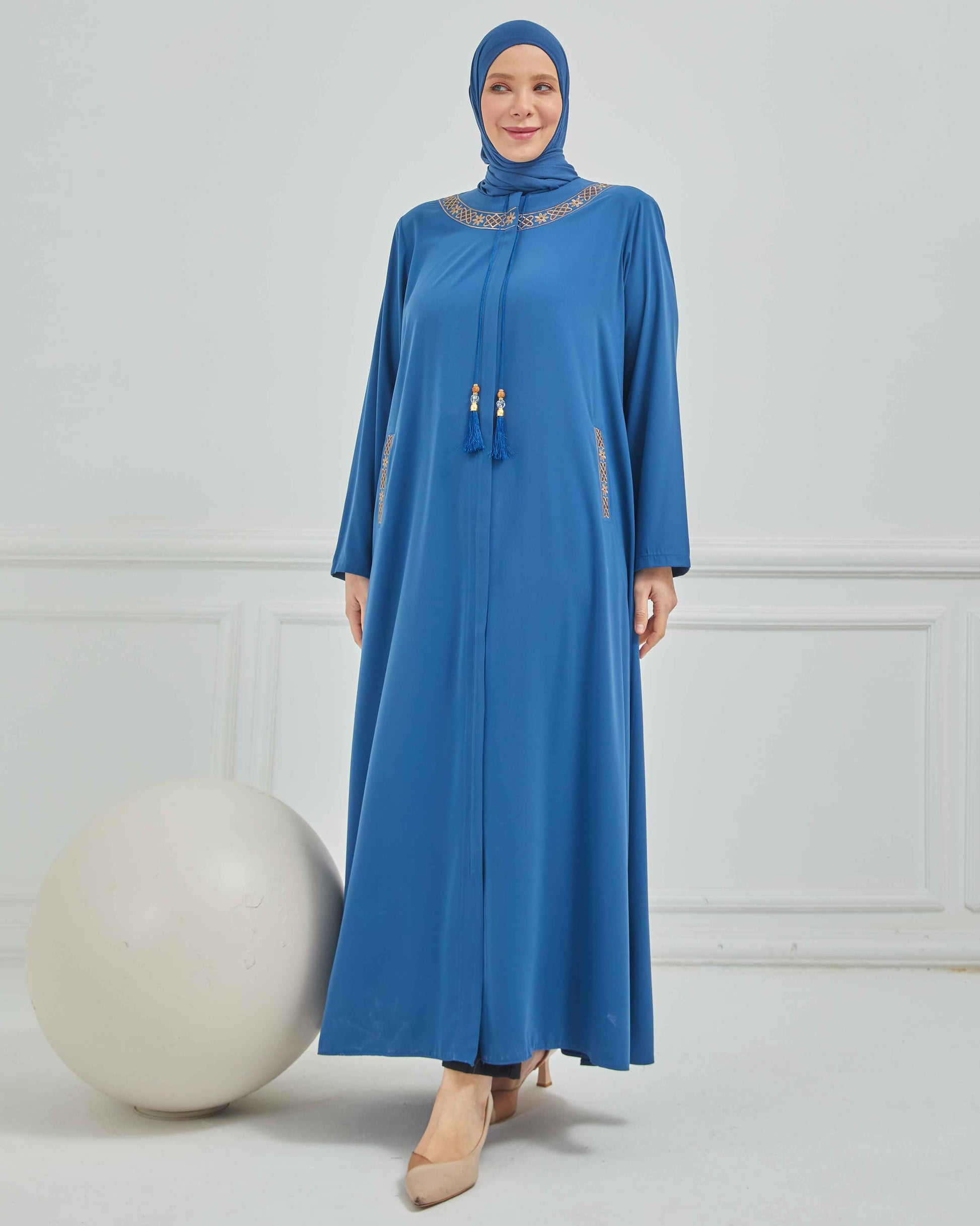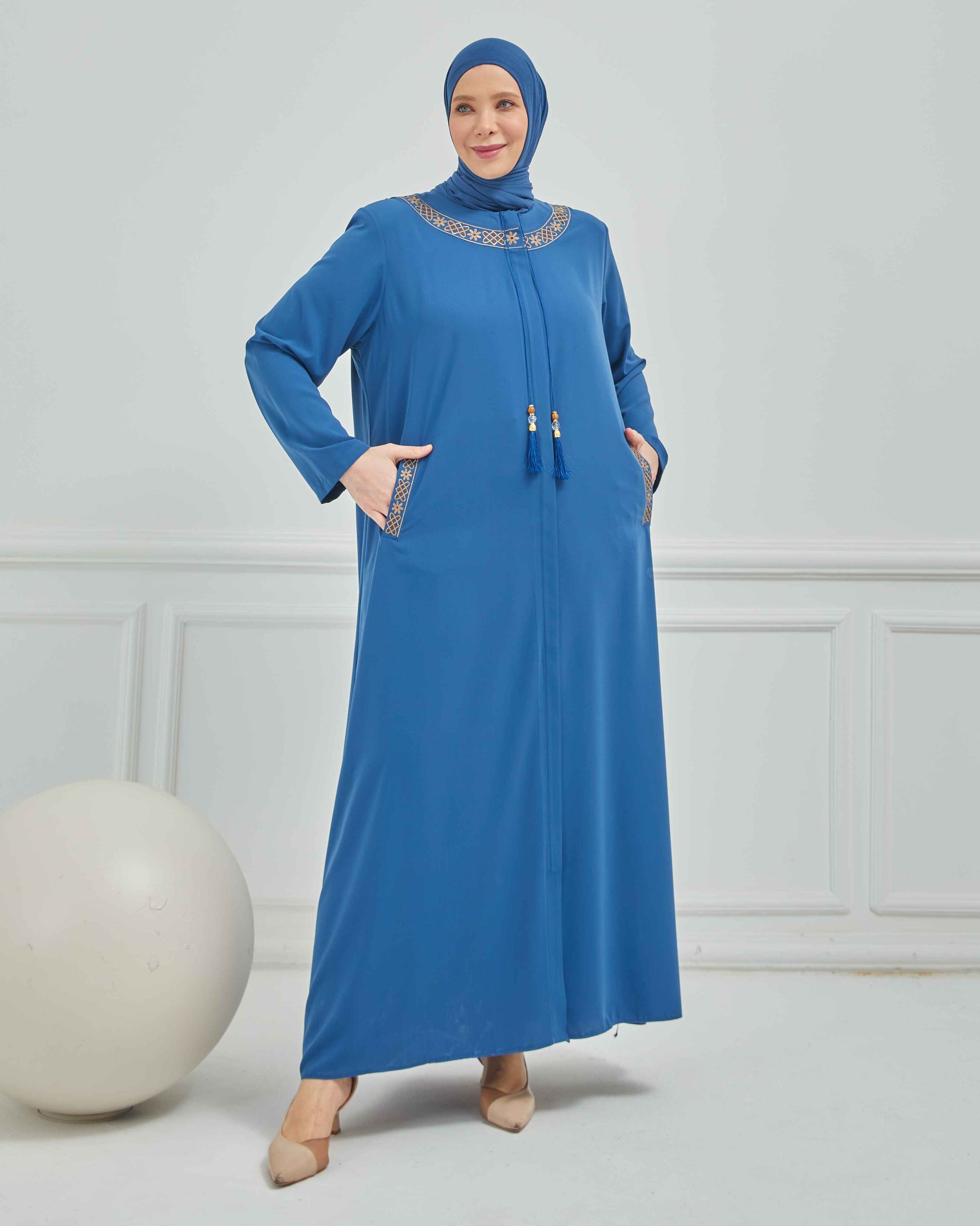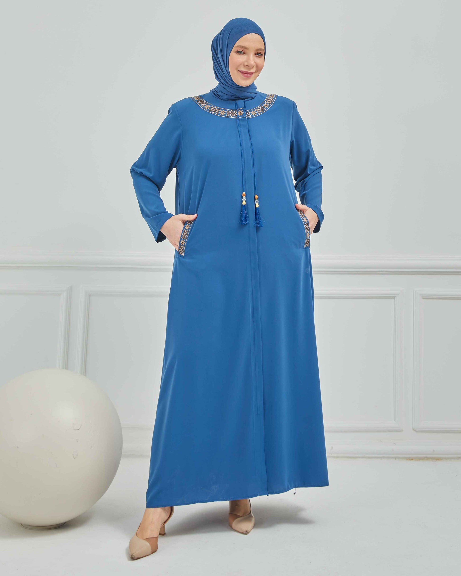 Büyük Beden Nakışlı Ferace İndigo | 204166