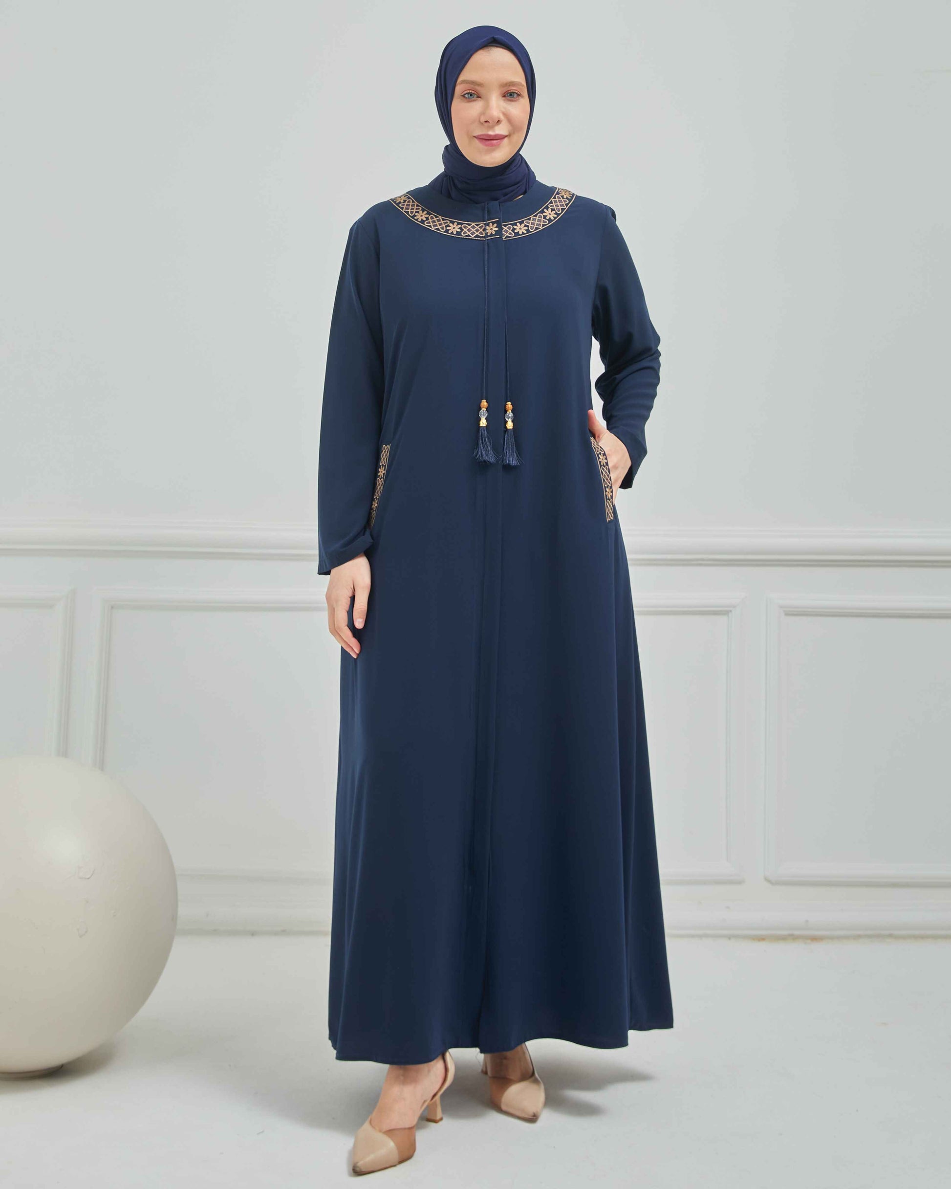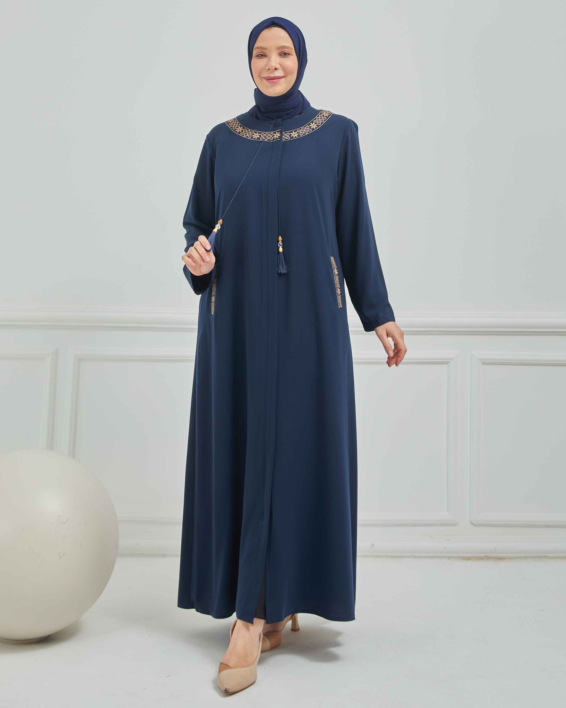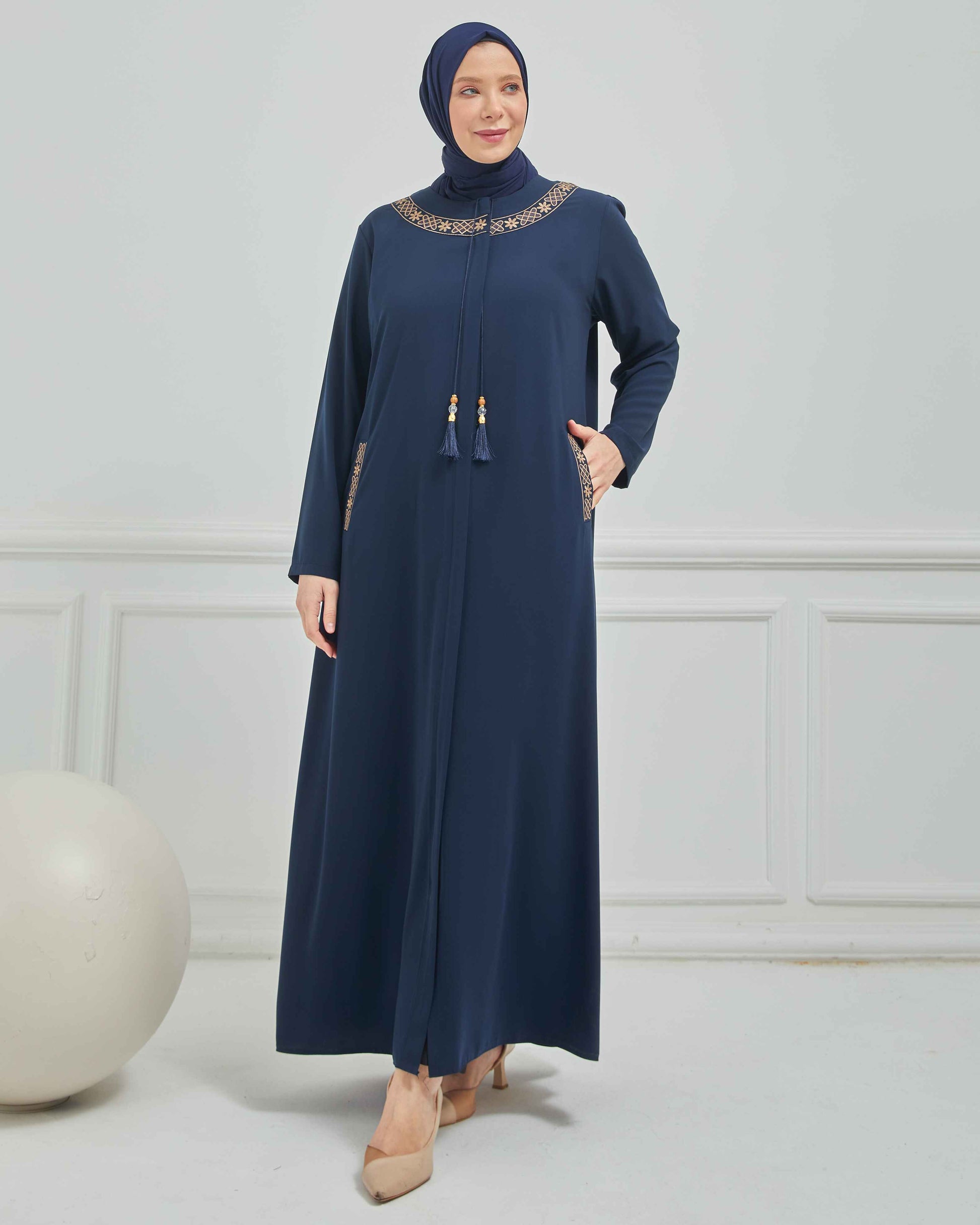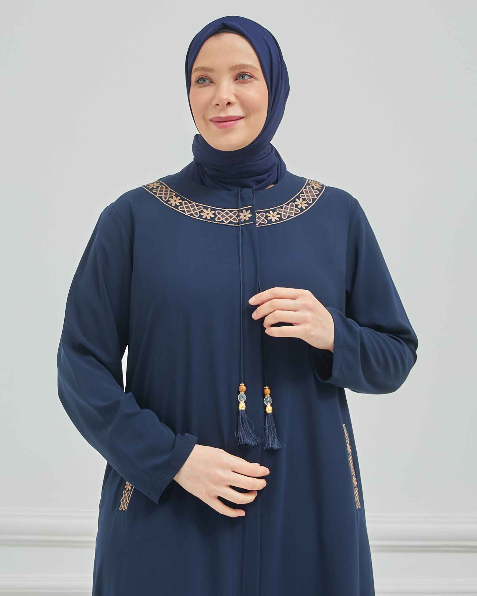 Büyük Beden Nakışlı Ferace Lacivert | 204165