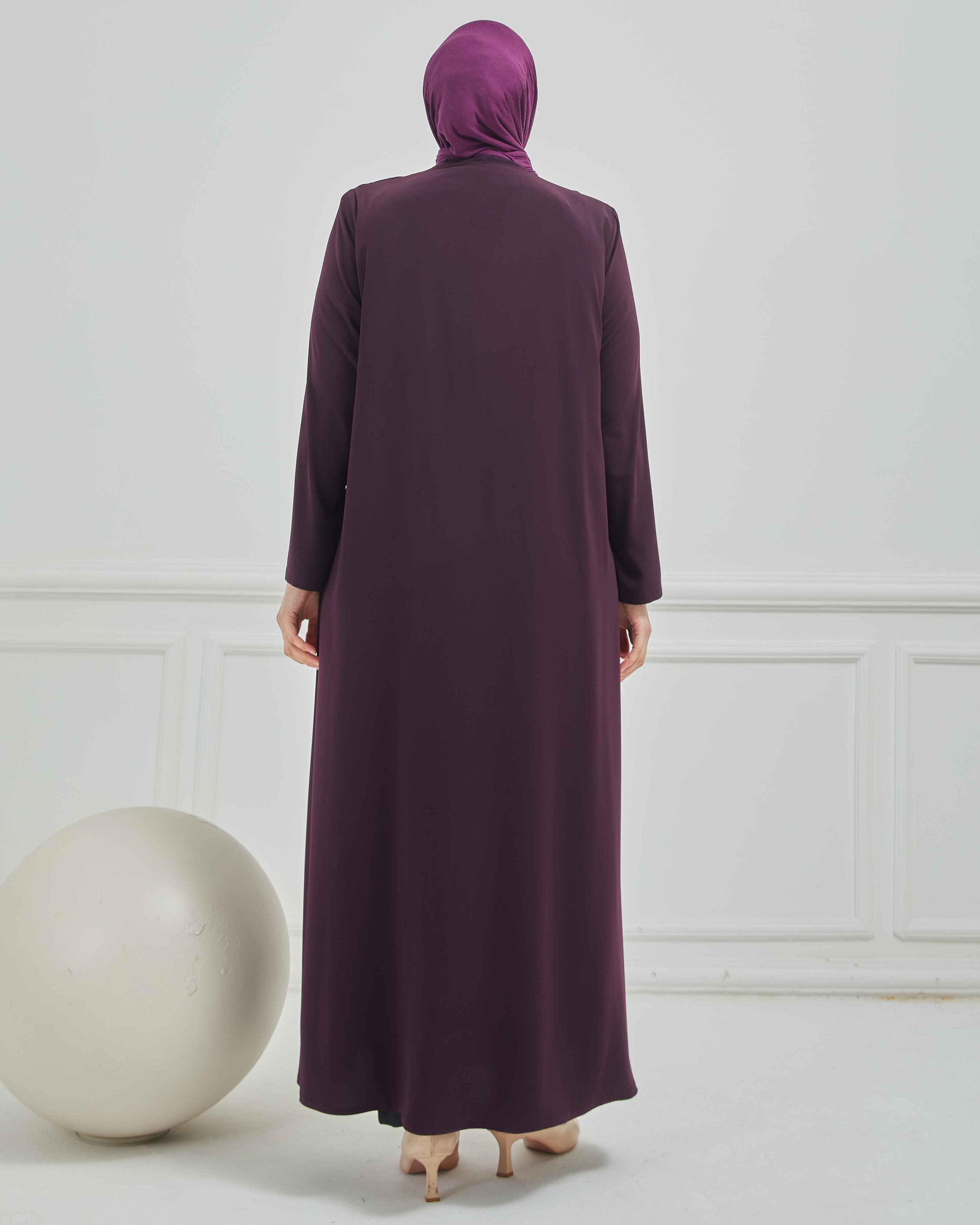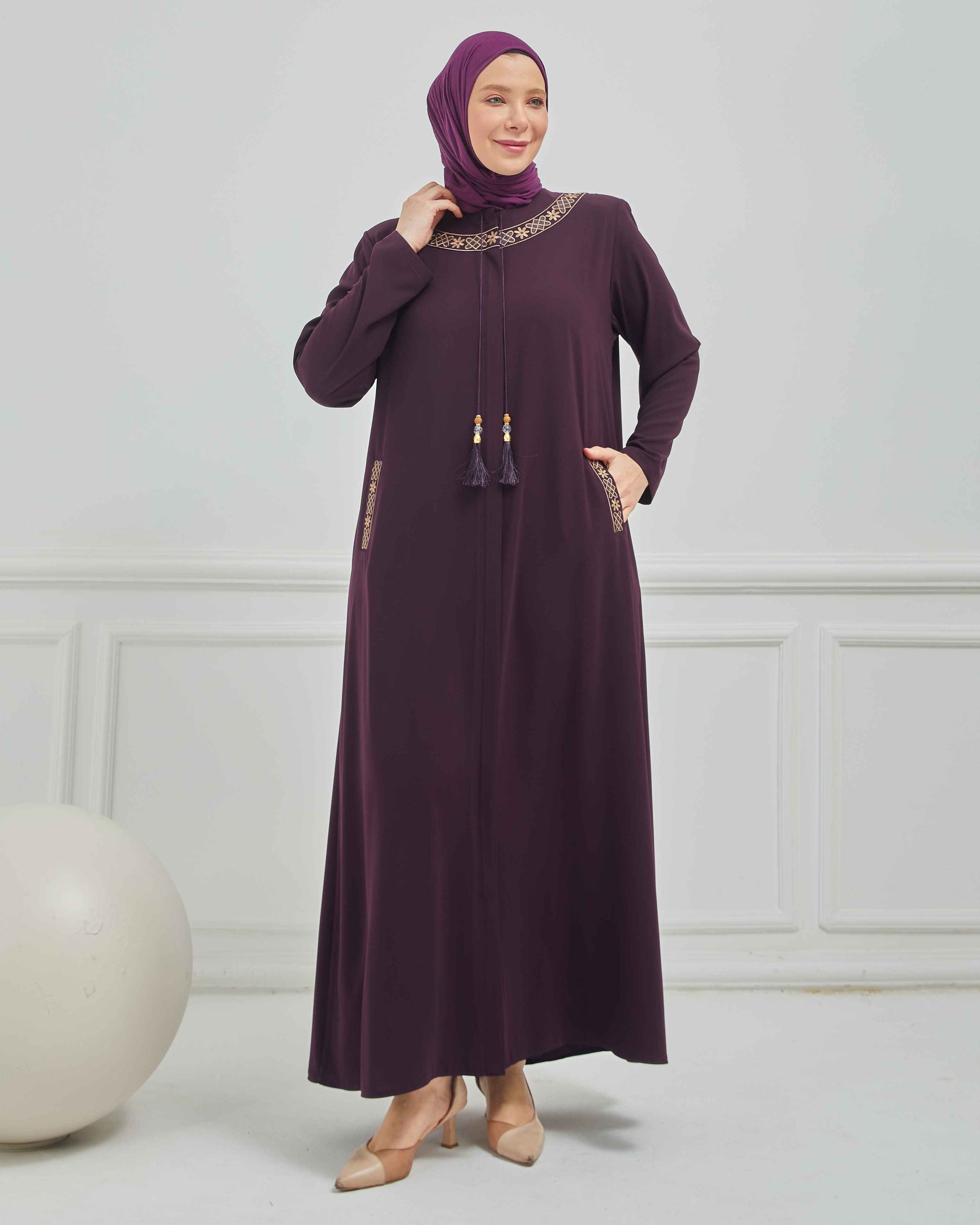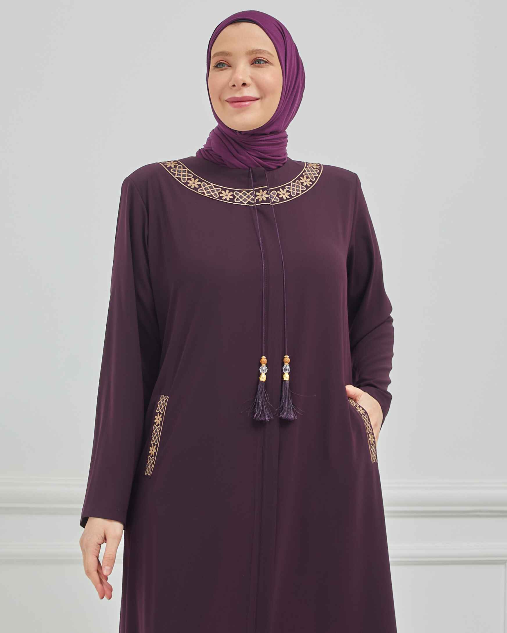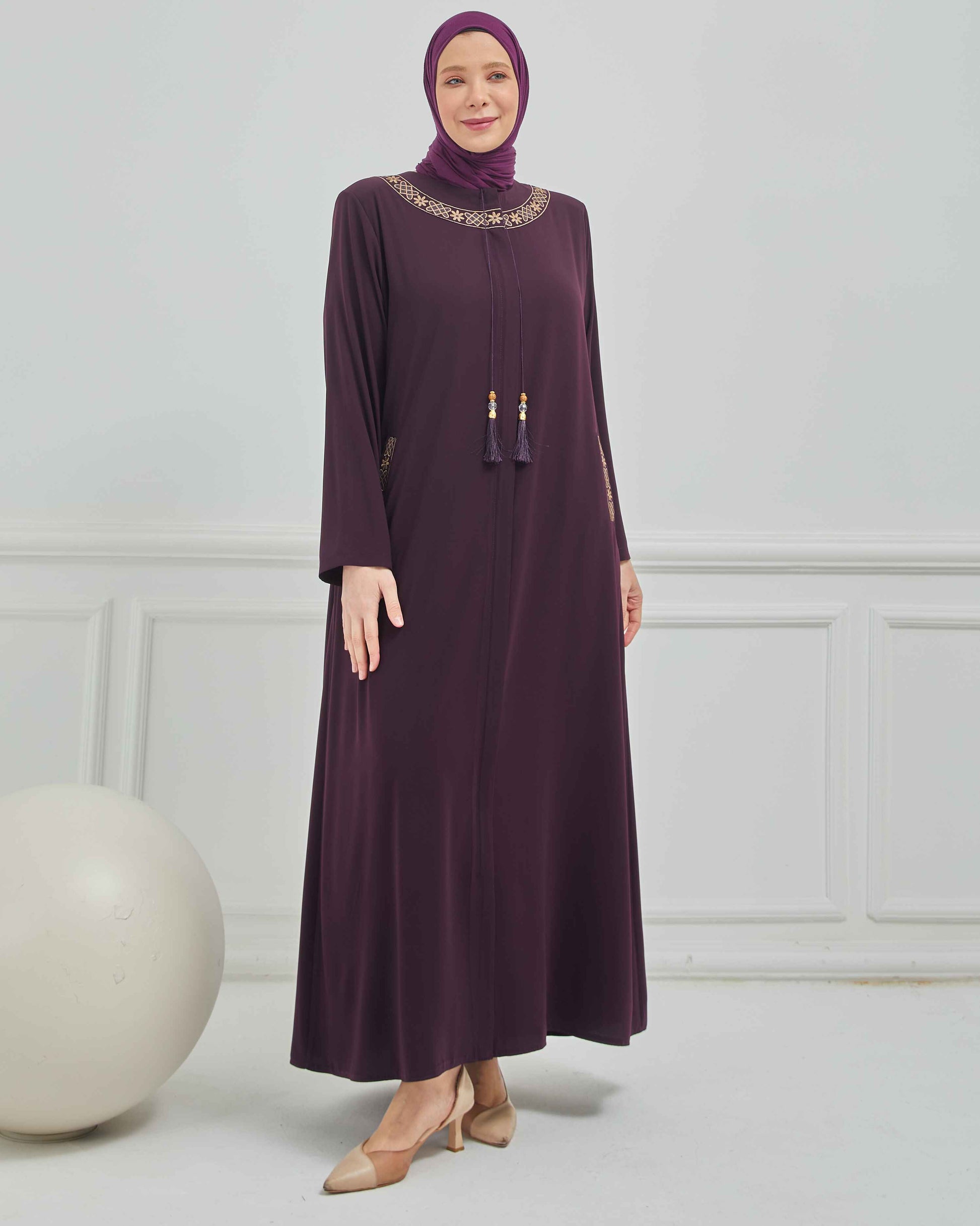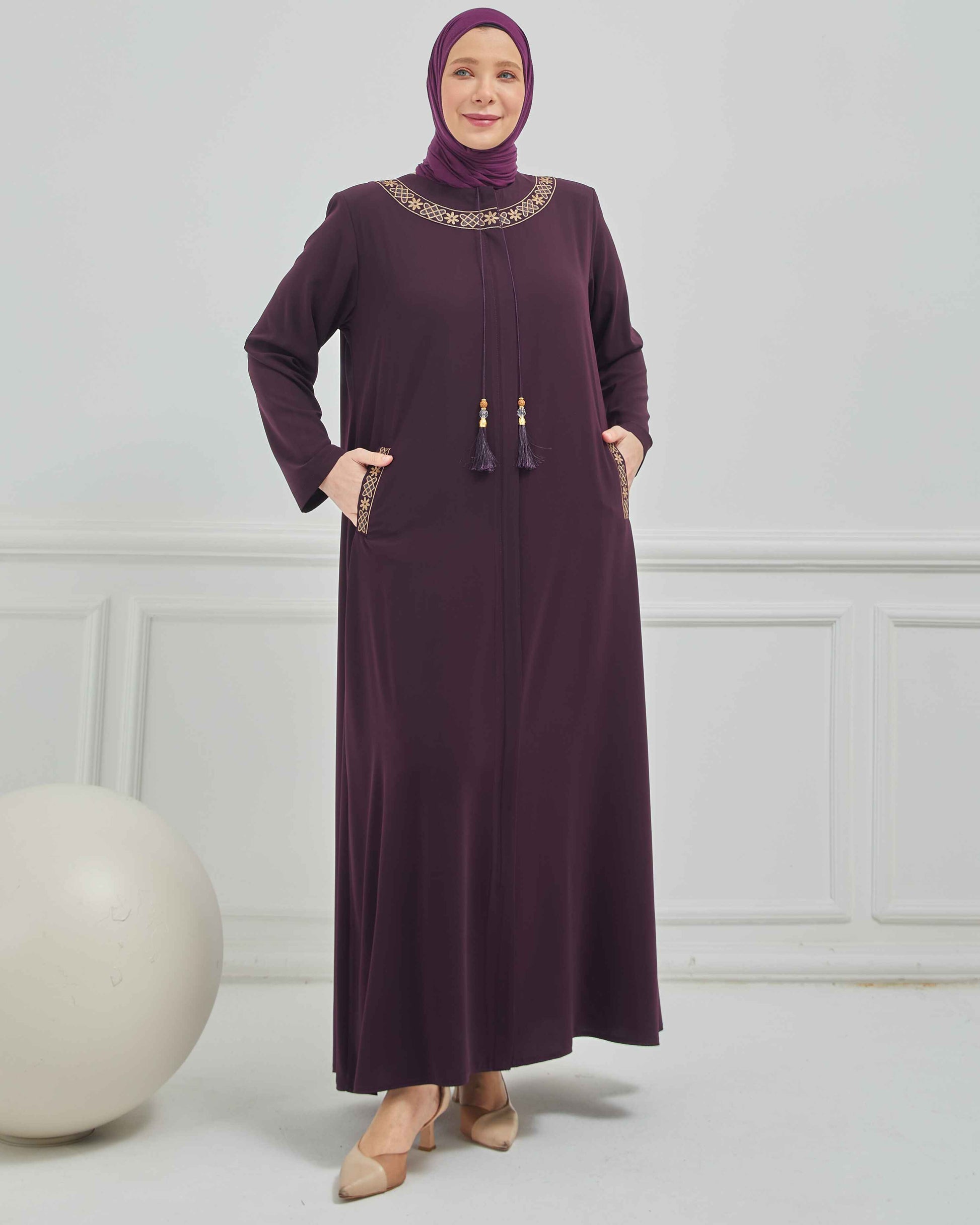 Büyük Beden Nakışlı Ferace Mürdüm | 204168