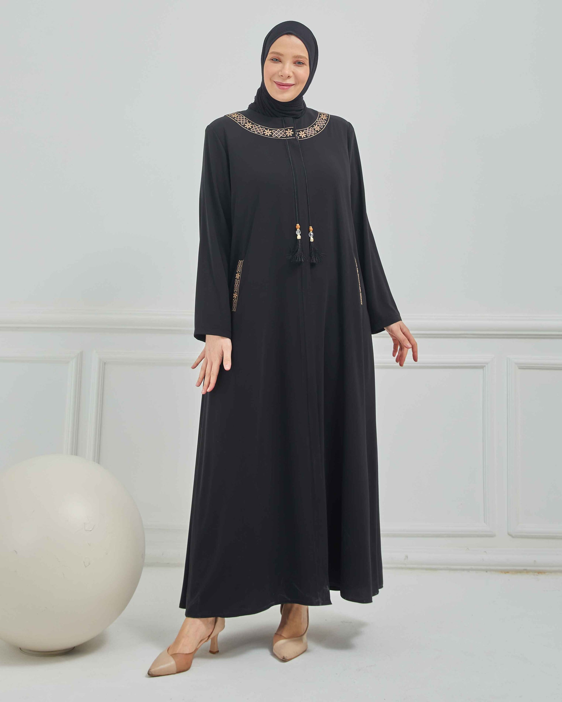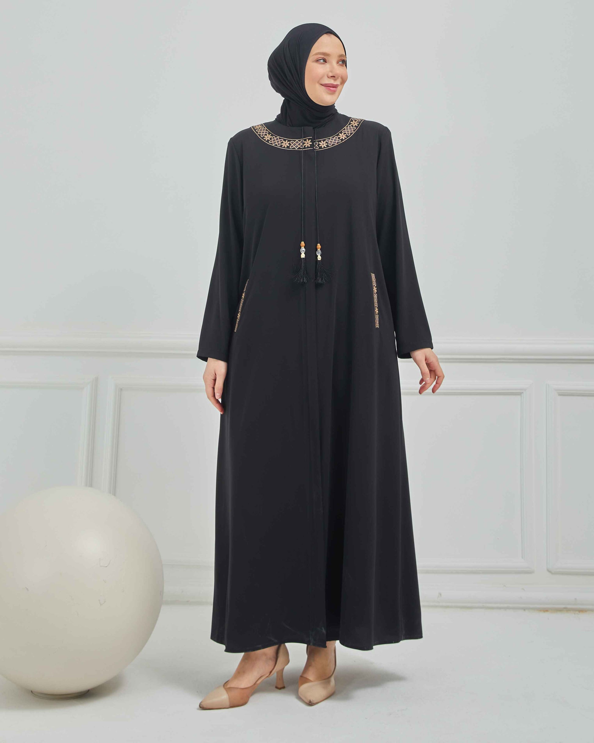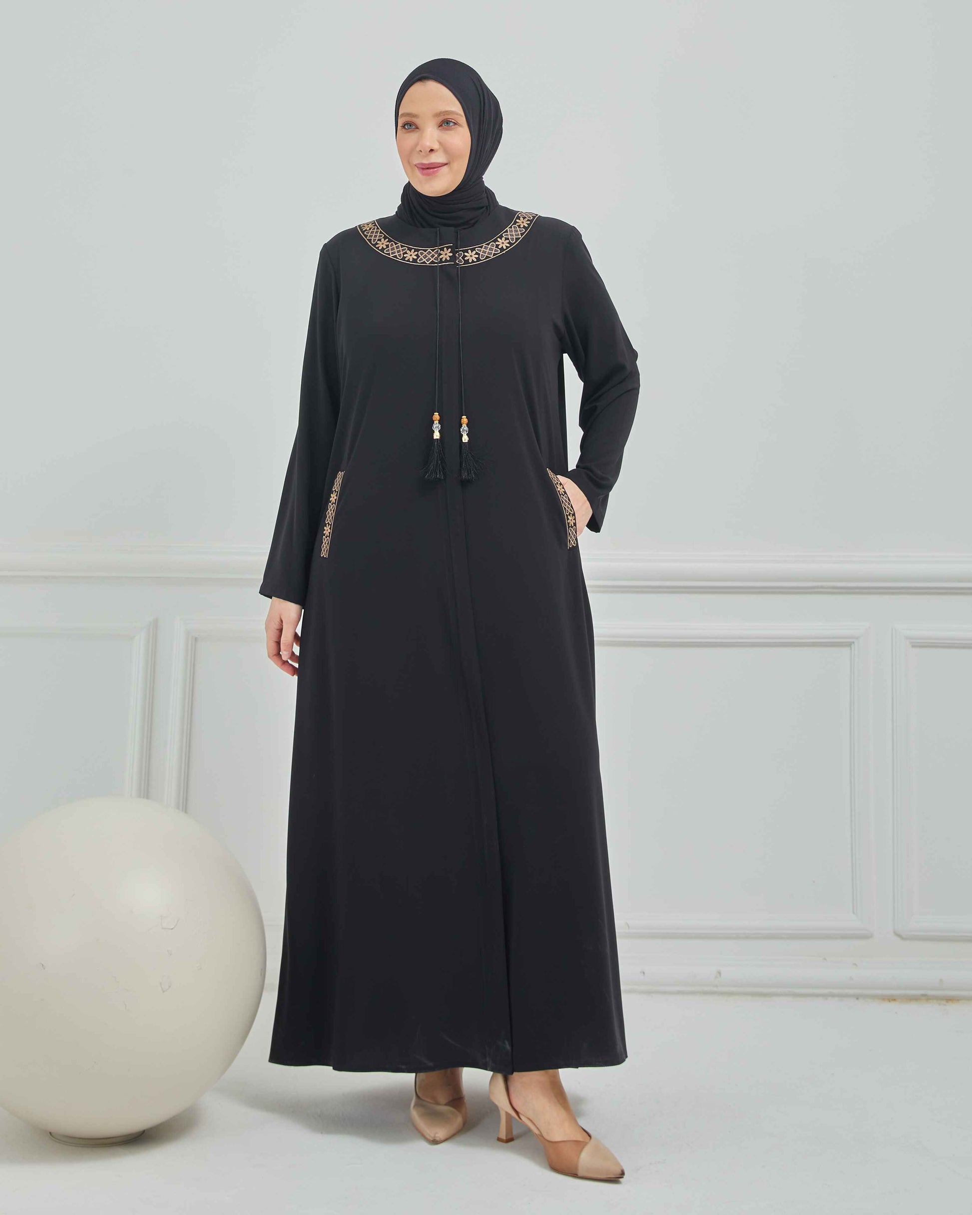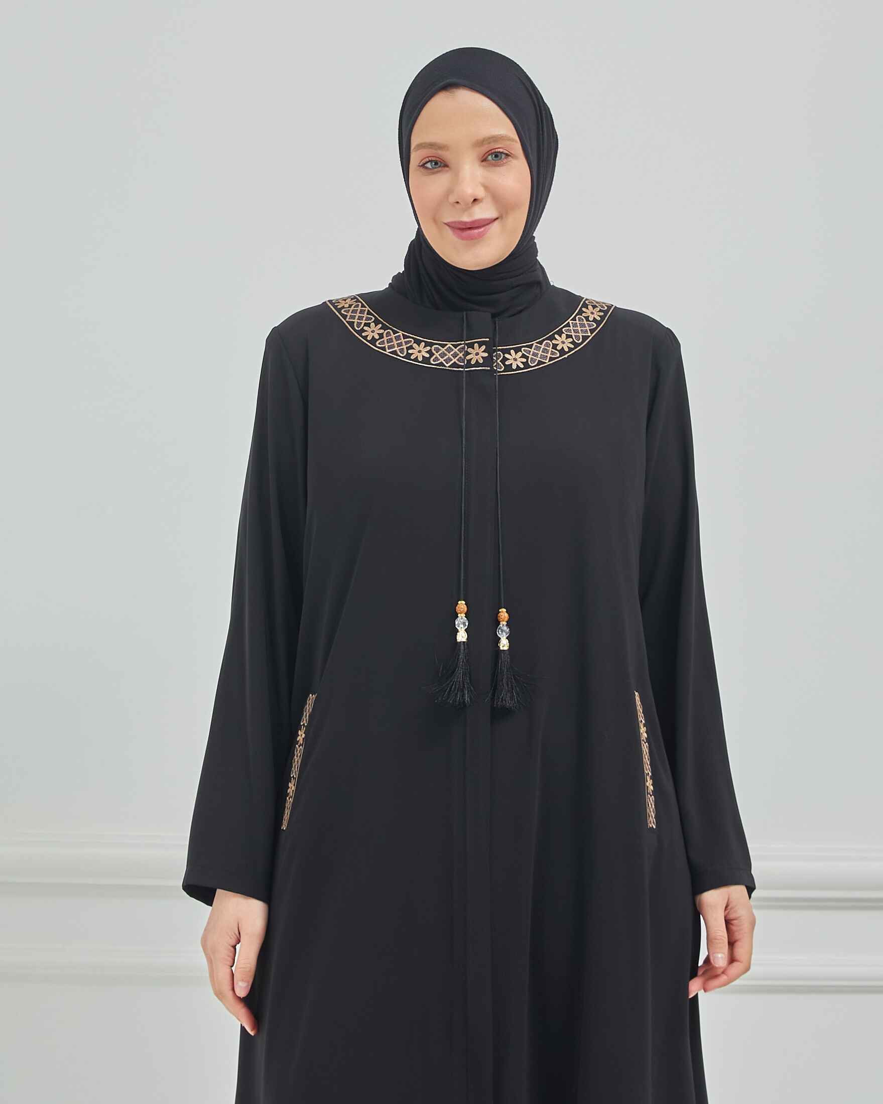 Büyük Beden Nakışlı Ferace Siyah | 204161