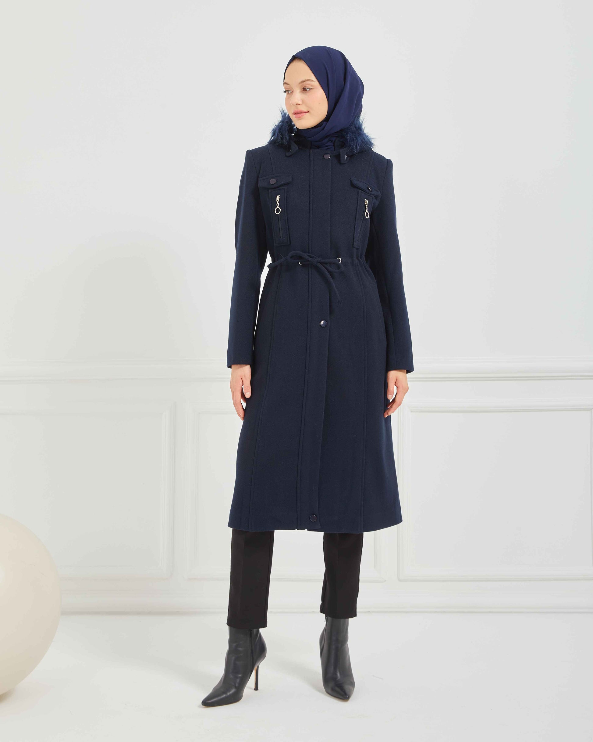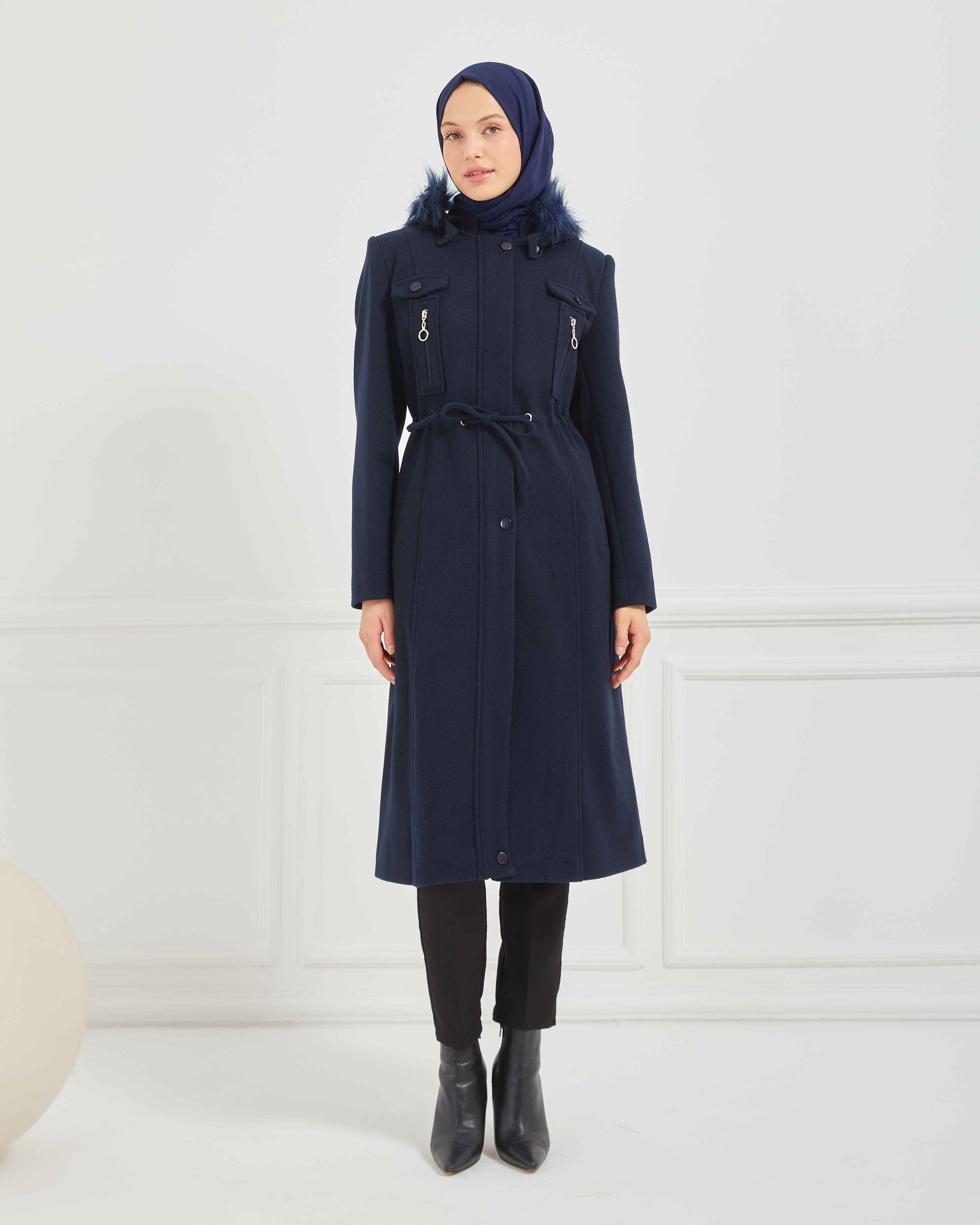 Dizaltı Kapşonlu Kaşe Mont Lacivert | 17001K5