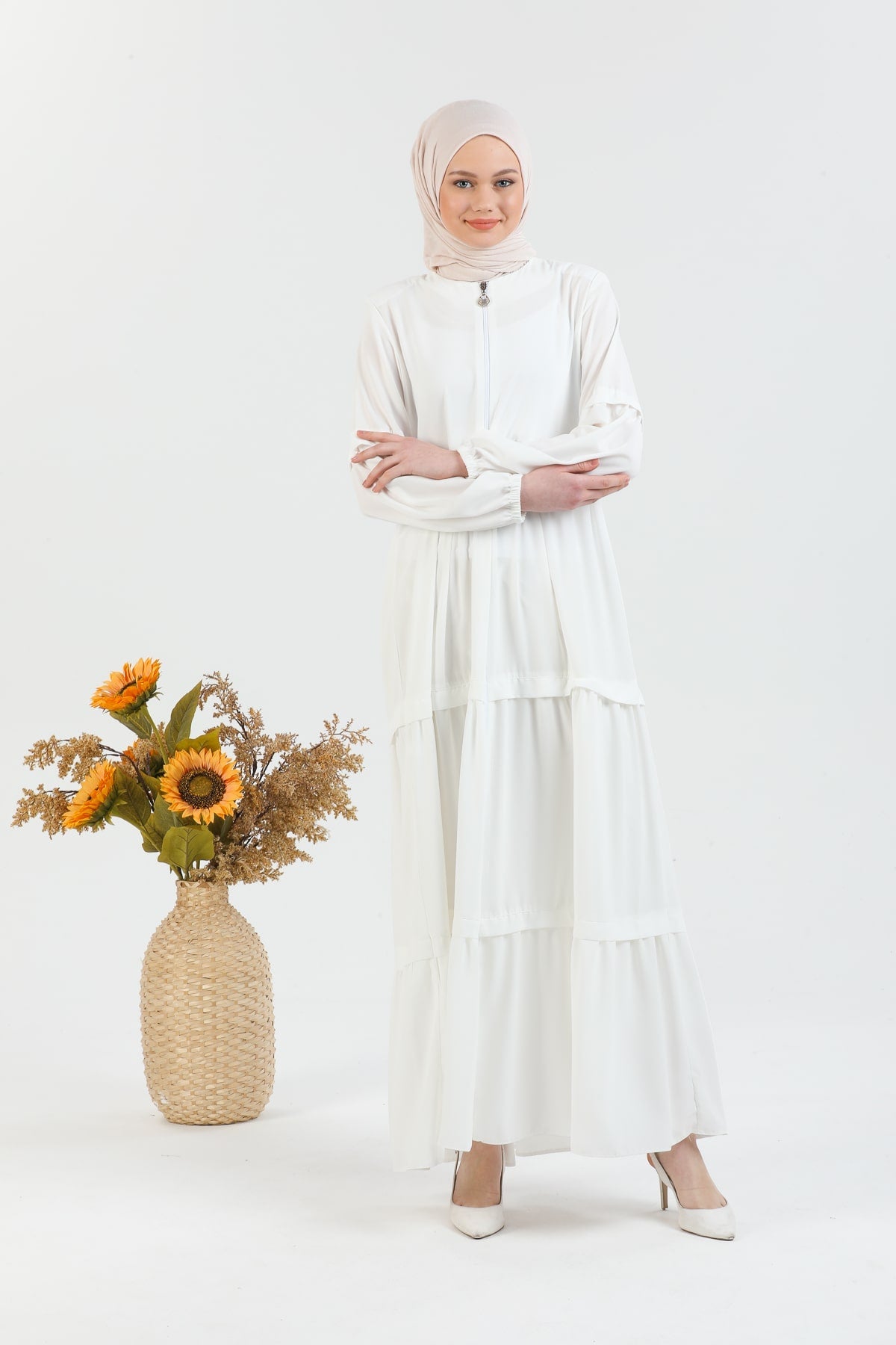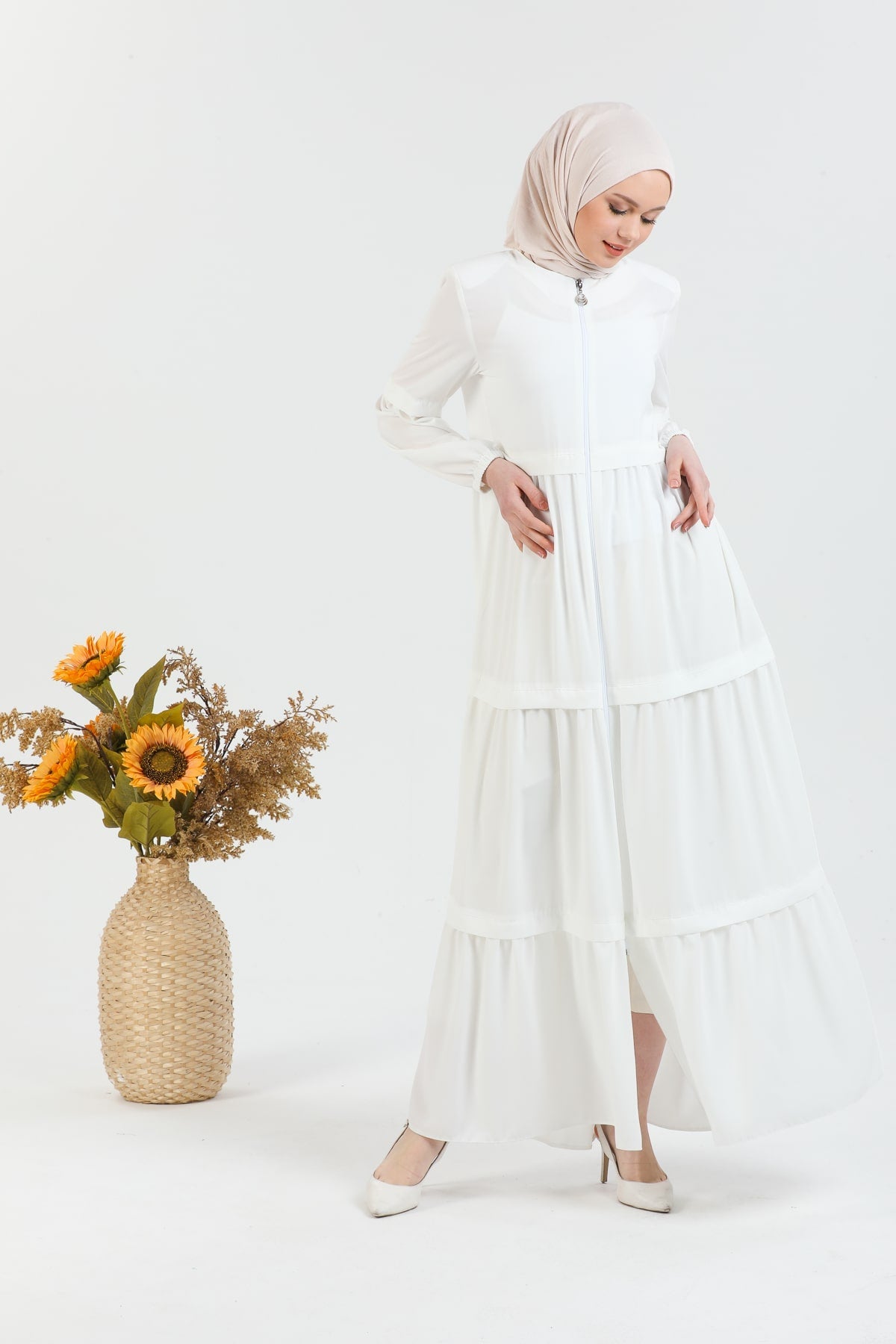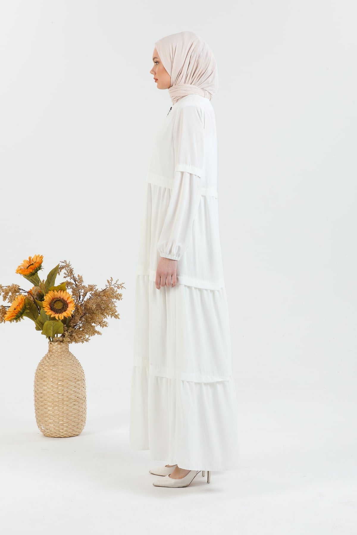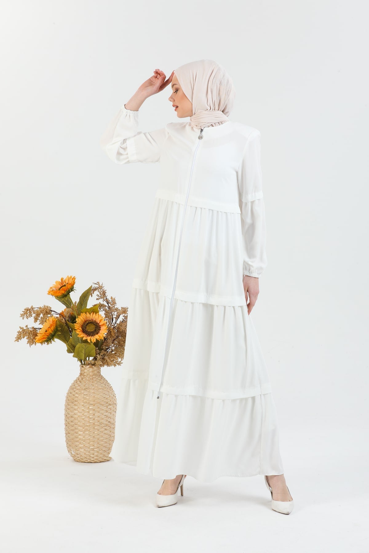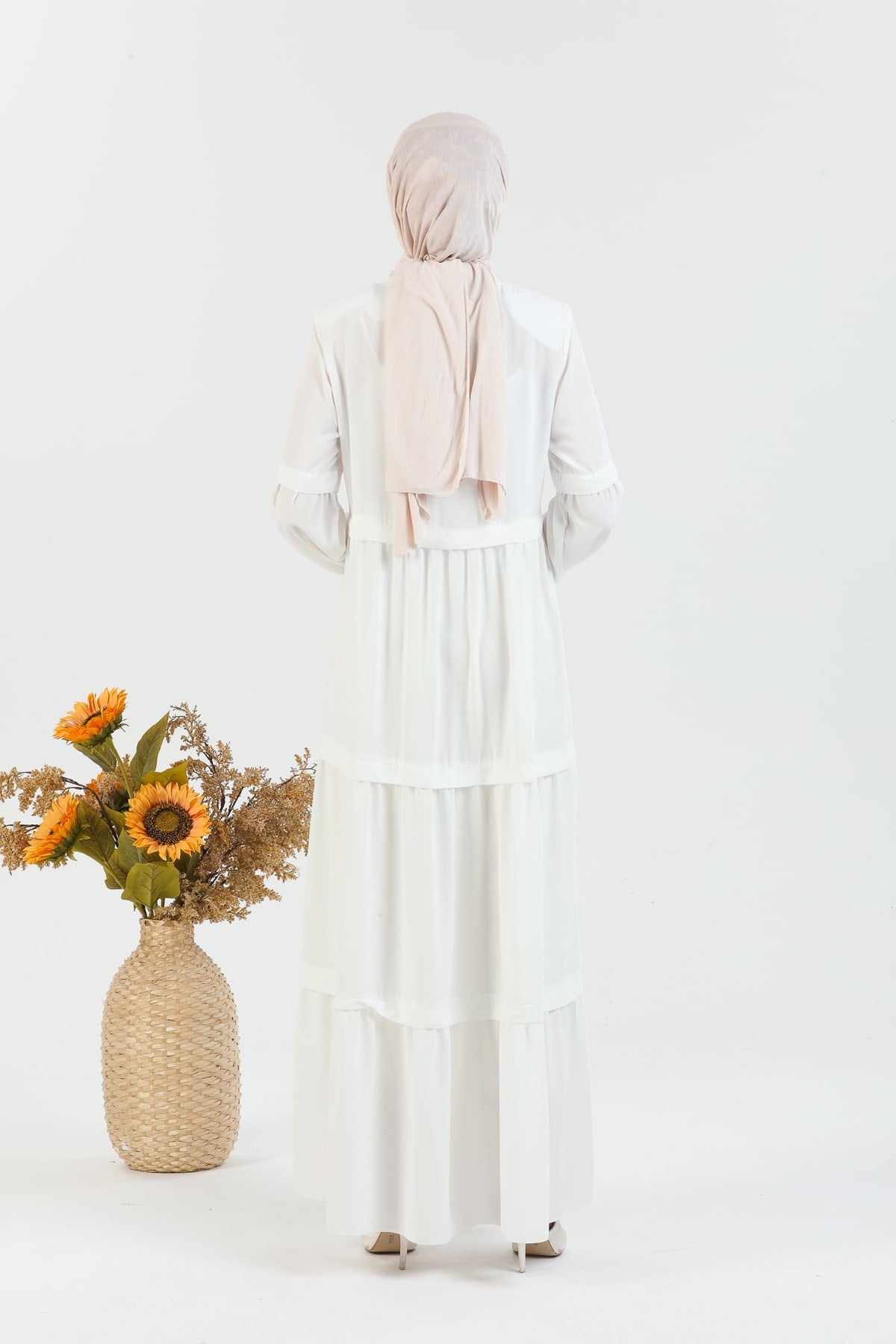 Kat Detaylı Bol Kesim Ferace Beyaz | 20682