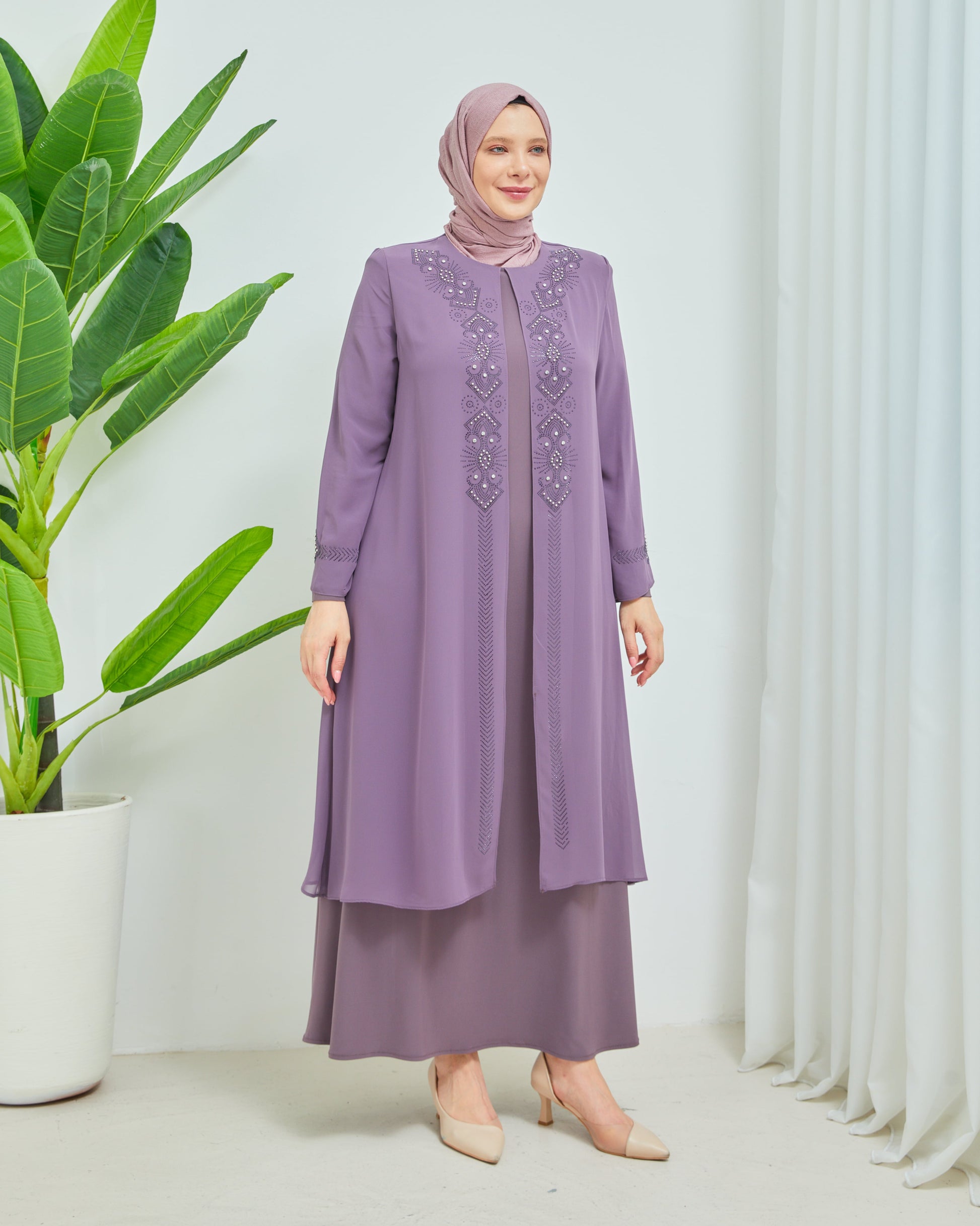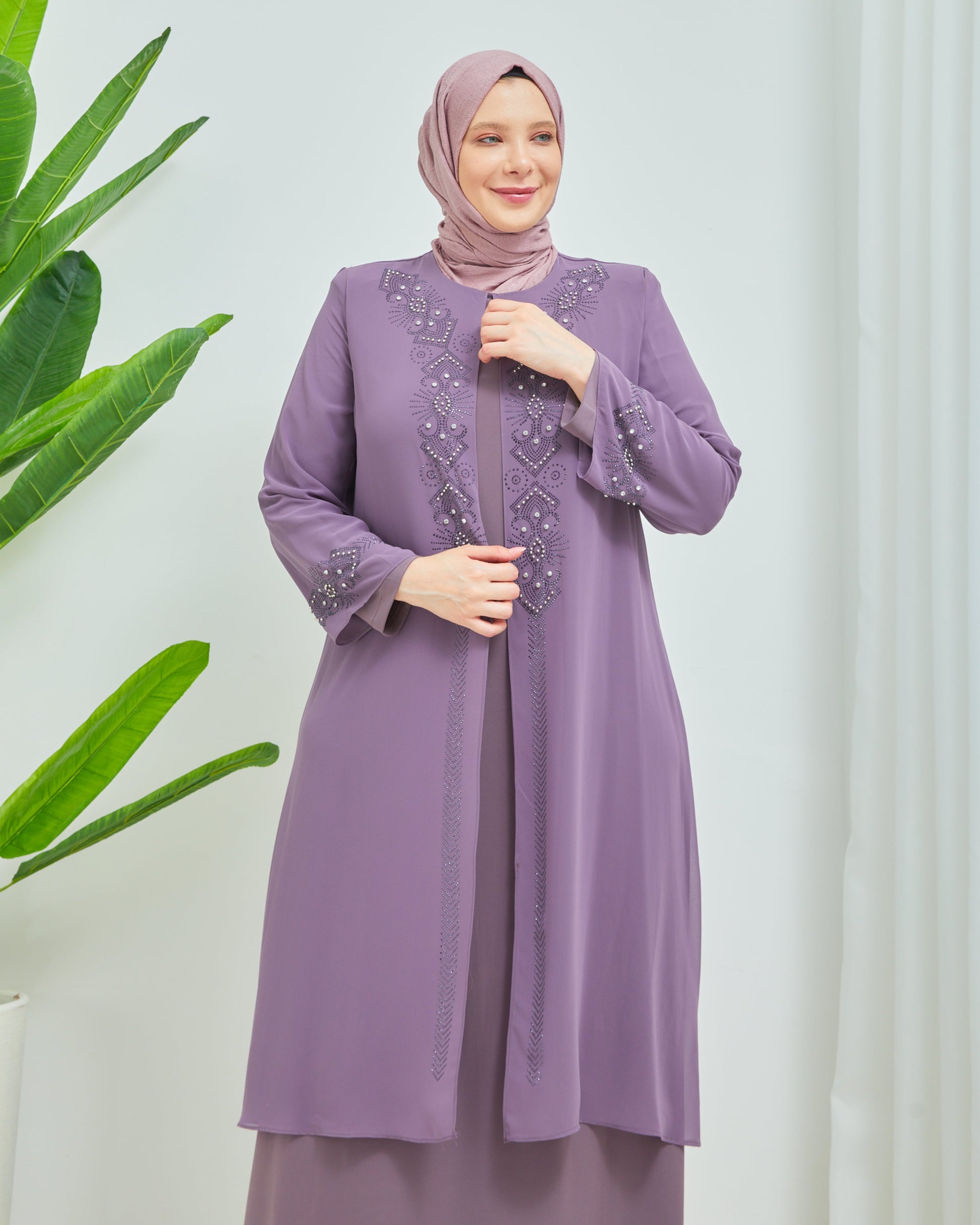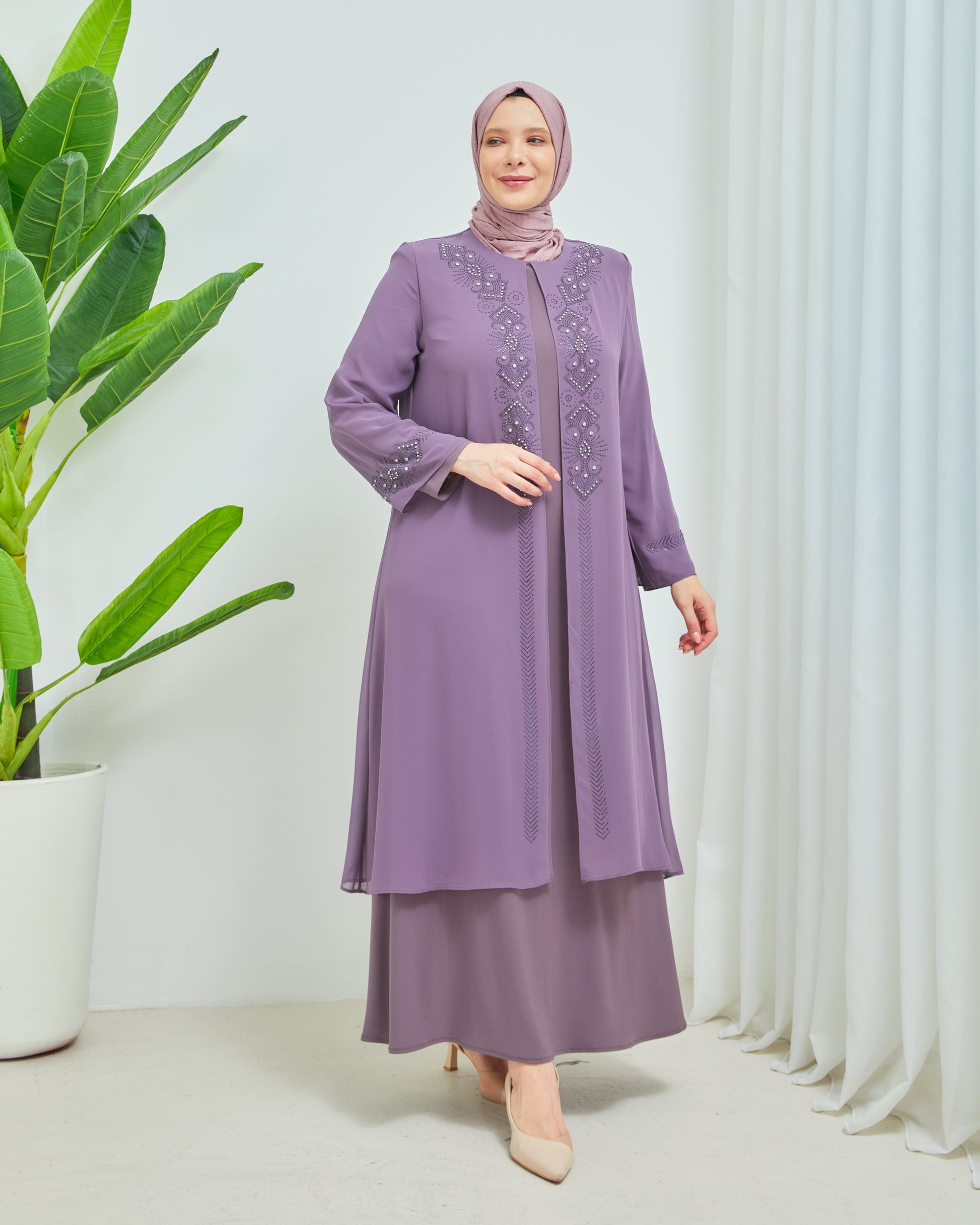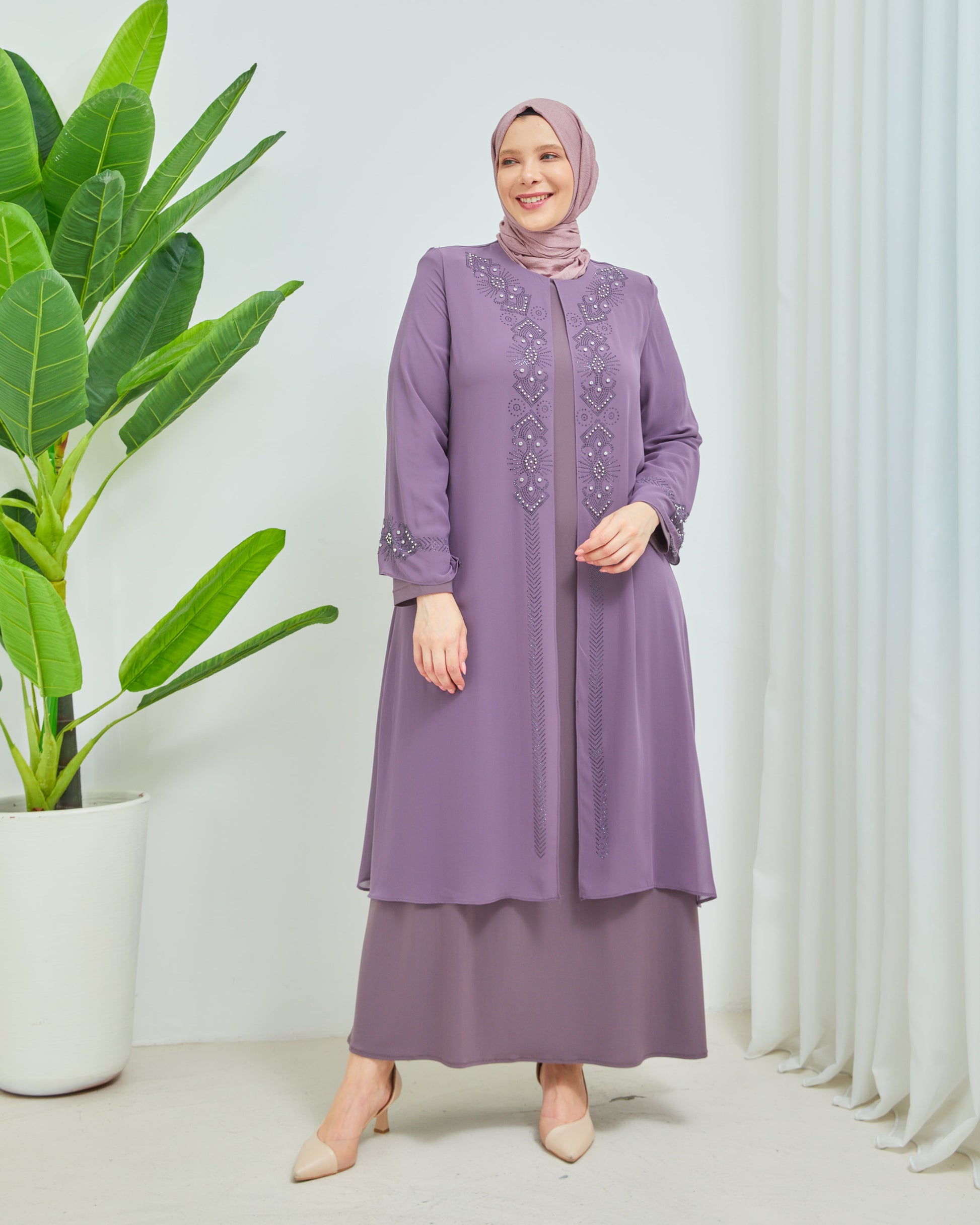 Önü ve Arkası Şifonlu Taş Detaylı Büyük Beden Sendi Elbise Gül Kurusu | 801333