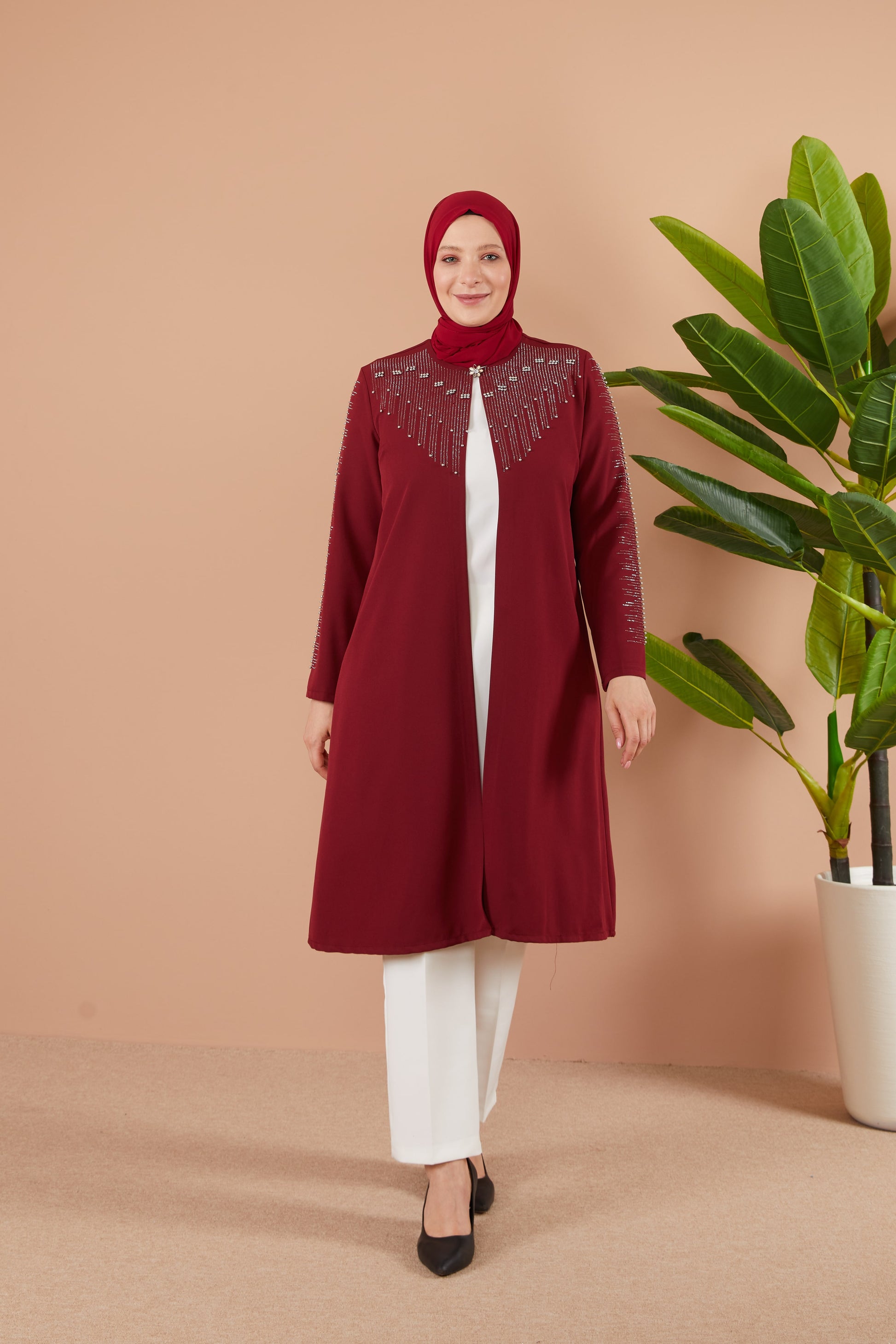 Taş Detaylı Ceketli Takım Bordo | 1100747