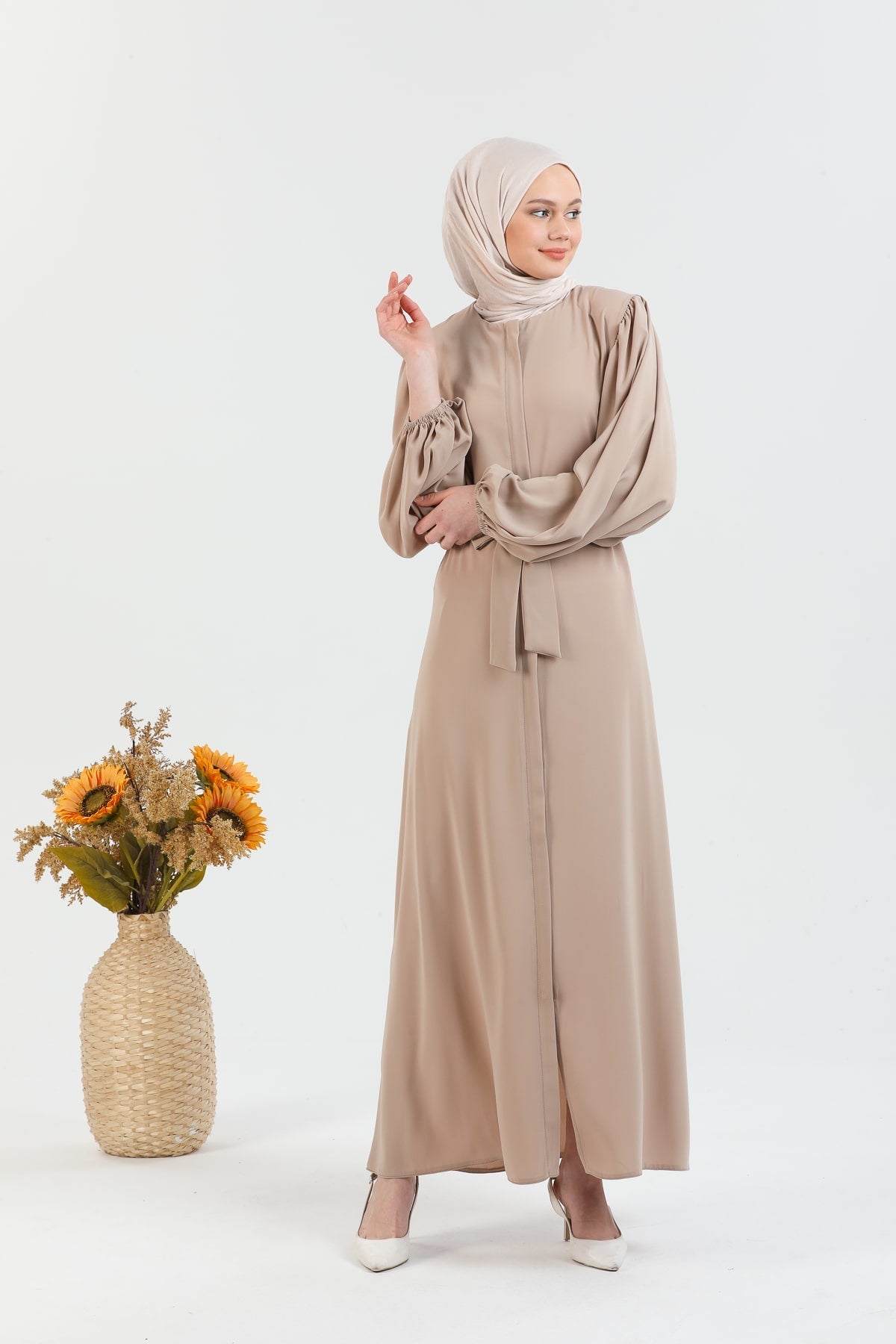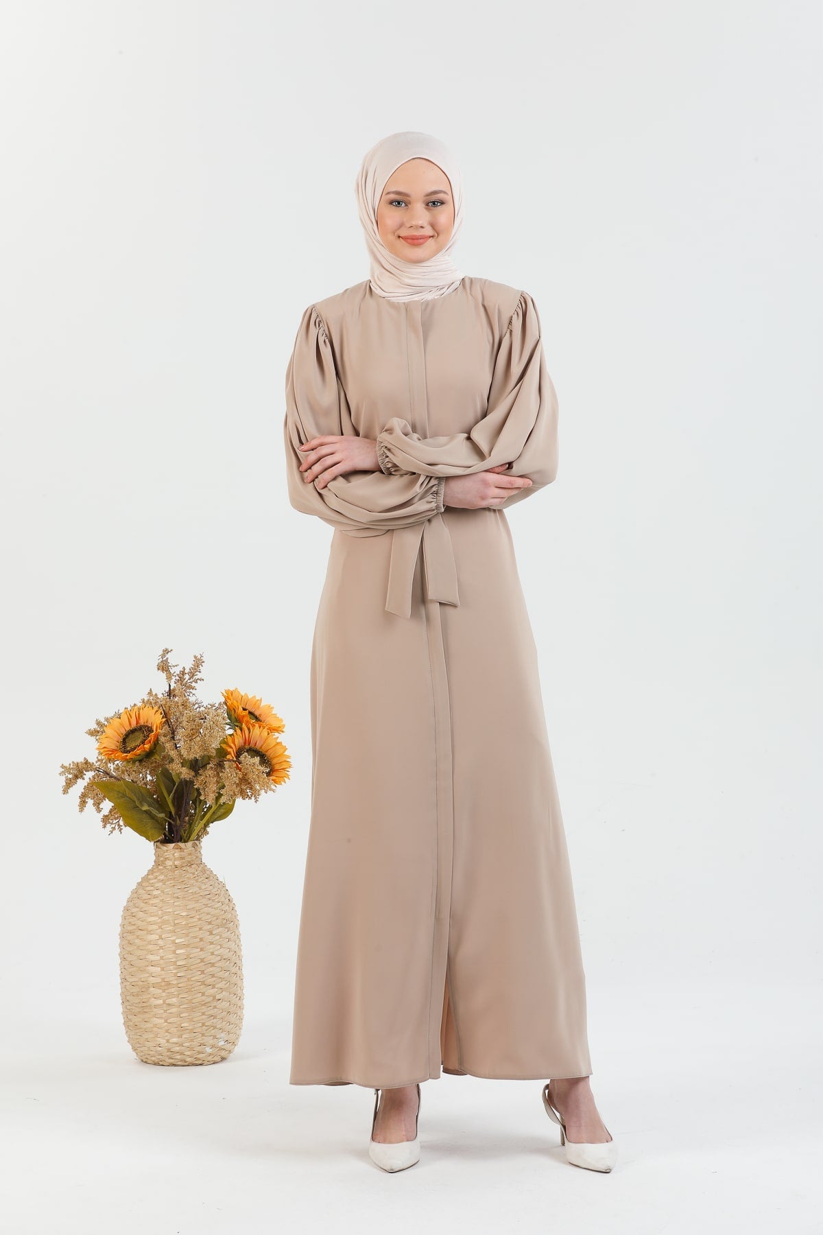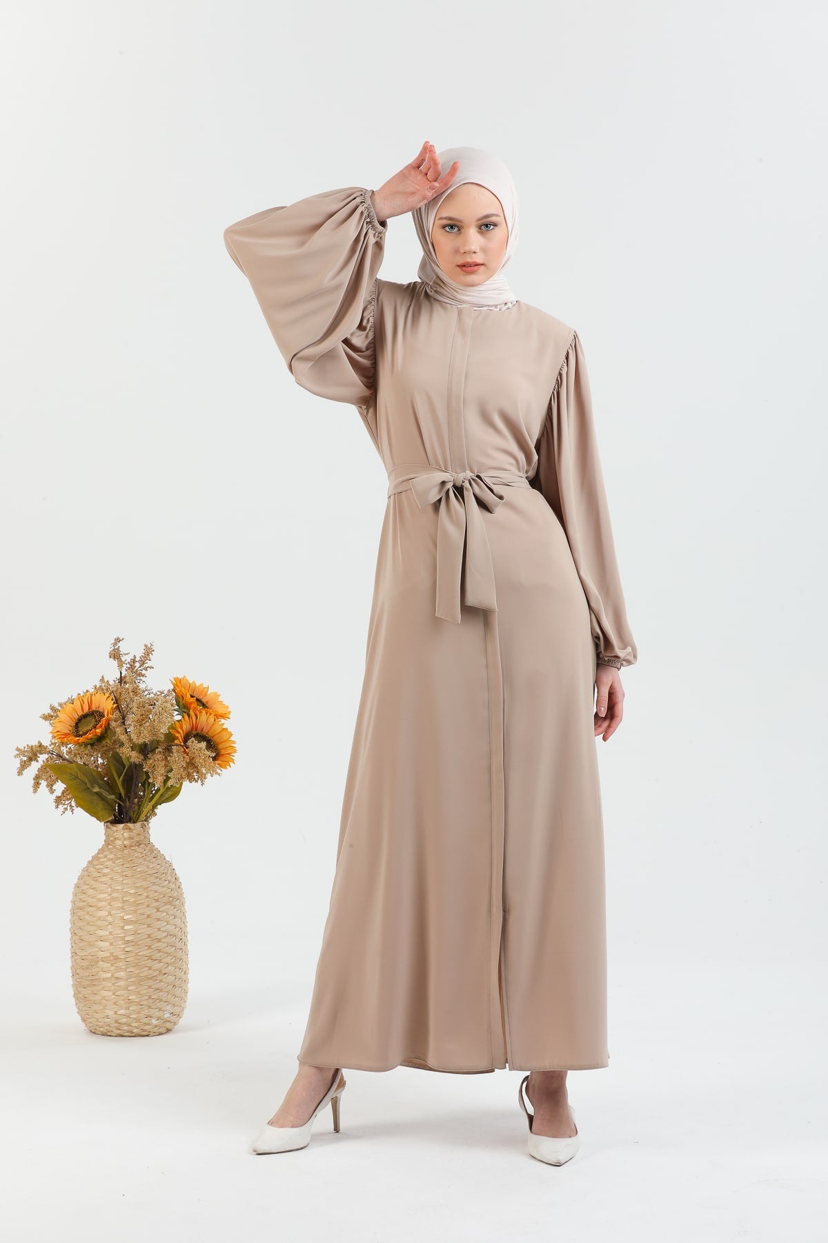 Caractéristiques du produit : Une abaya voilée nouvelle saison. (non doublé). qui est une expression.les bras du produit sont des manches ballon qui ont une ceinture et des poignets élastiqués. La fermeture éclair a des détails de gland. Notre produit a une fermeture éclair à l'avant. La poche est disponible. La couleur du produit est exactement comme sur la photo.