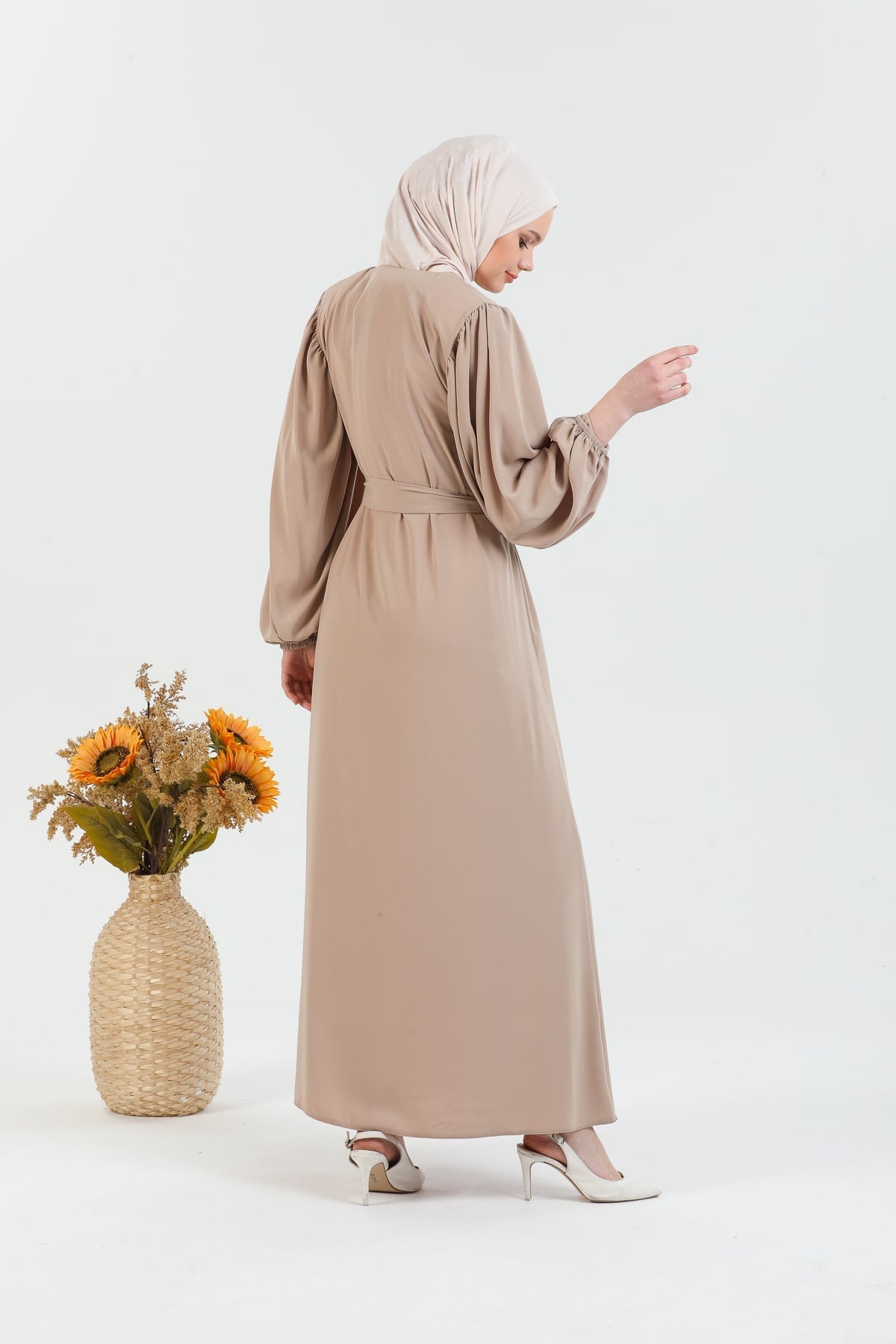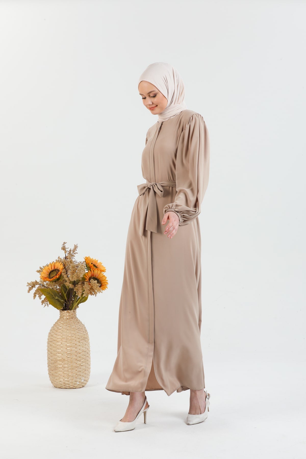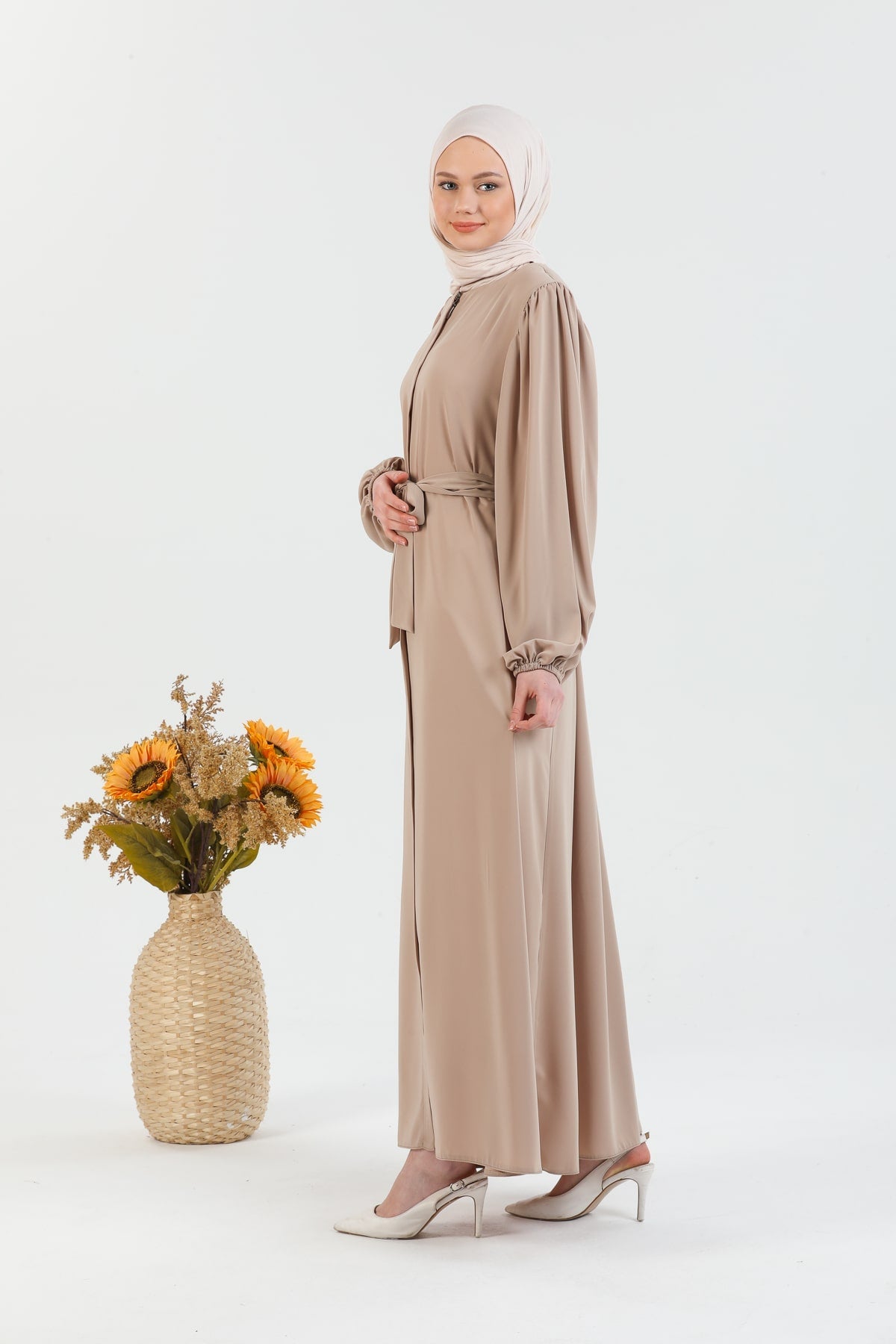 Caractéristiques du produit : Une abaya voilée nouvelle saison. (non doublé). qui est une expression.les bras du produit sont des manches ballon qui ont une ceinture et des poignets élastiqués. La fermeture éclair a des détails de gland. Notre produit a une fermeture éclair à l'avant. La poche est disponible. La couleur du produit est exactement comme sur la photo.