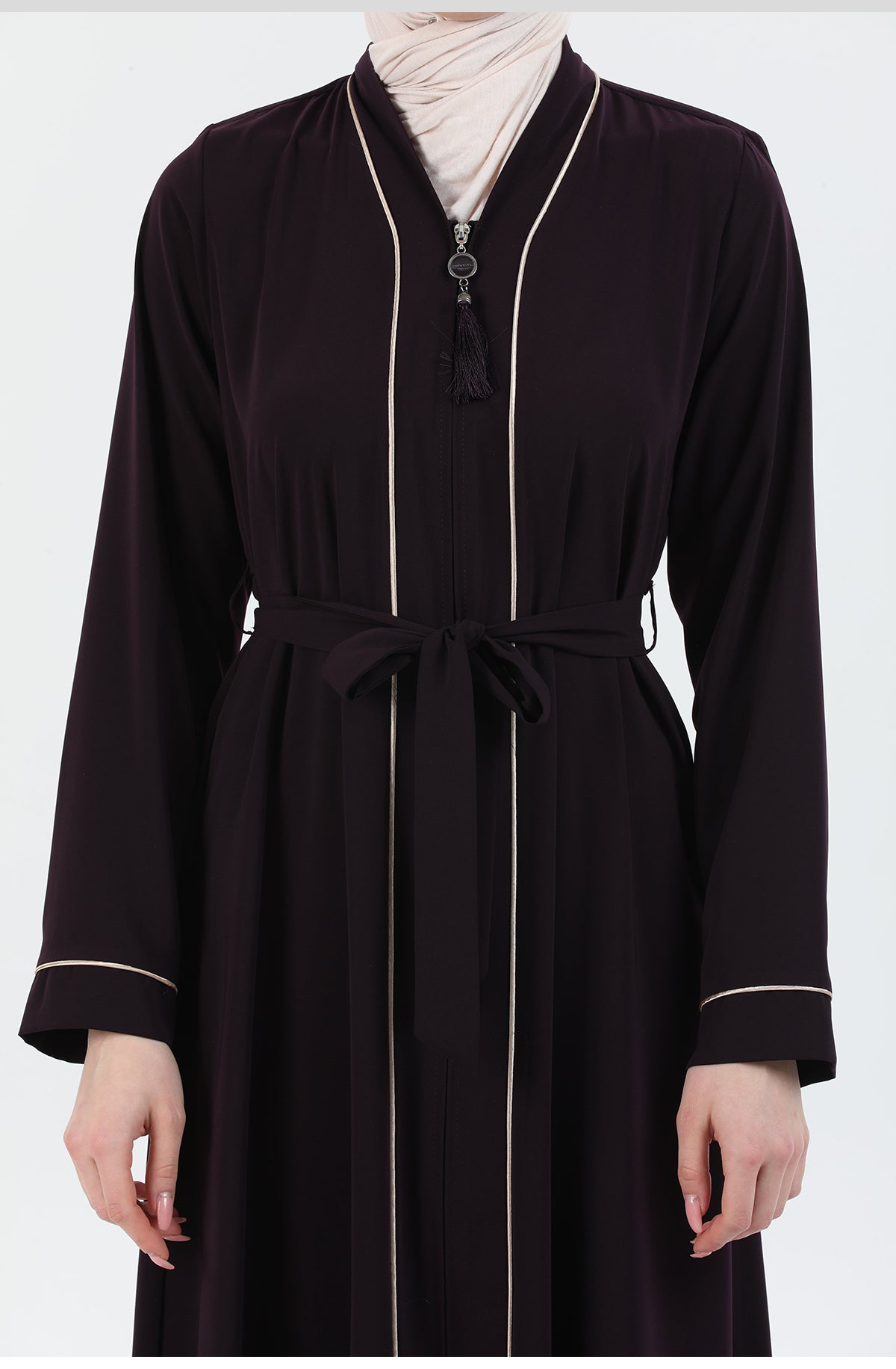 Abaya Kaki avec détail Passepoil | 2067-0-9