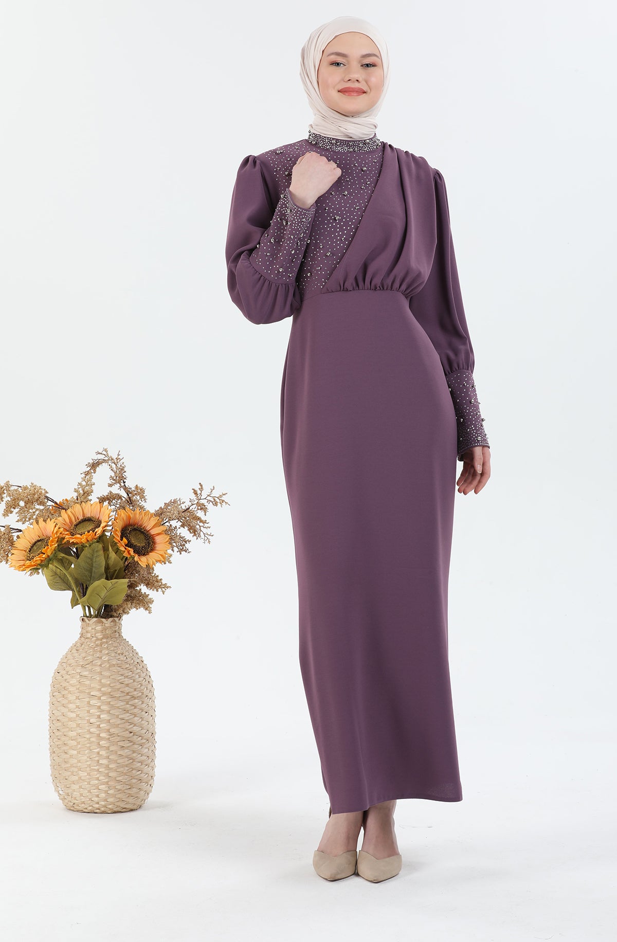 Robe Hijab détaillée Perle | 3024-12