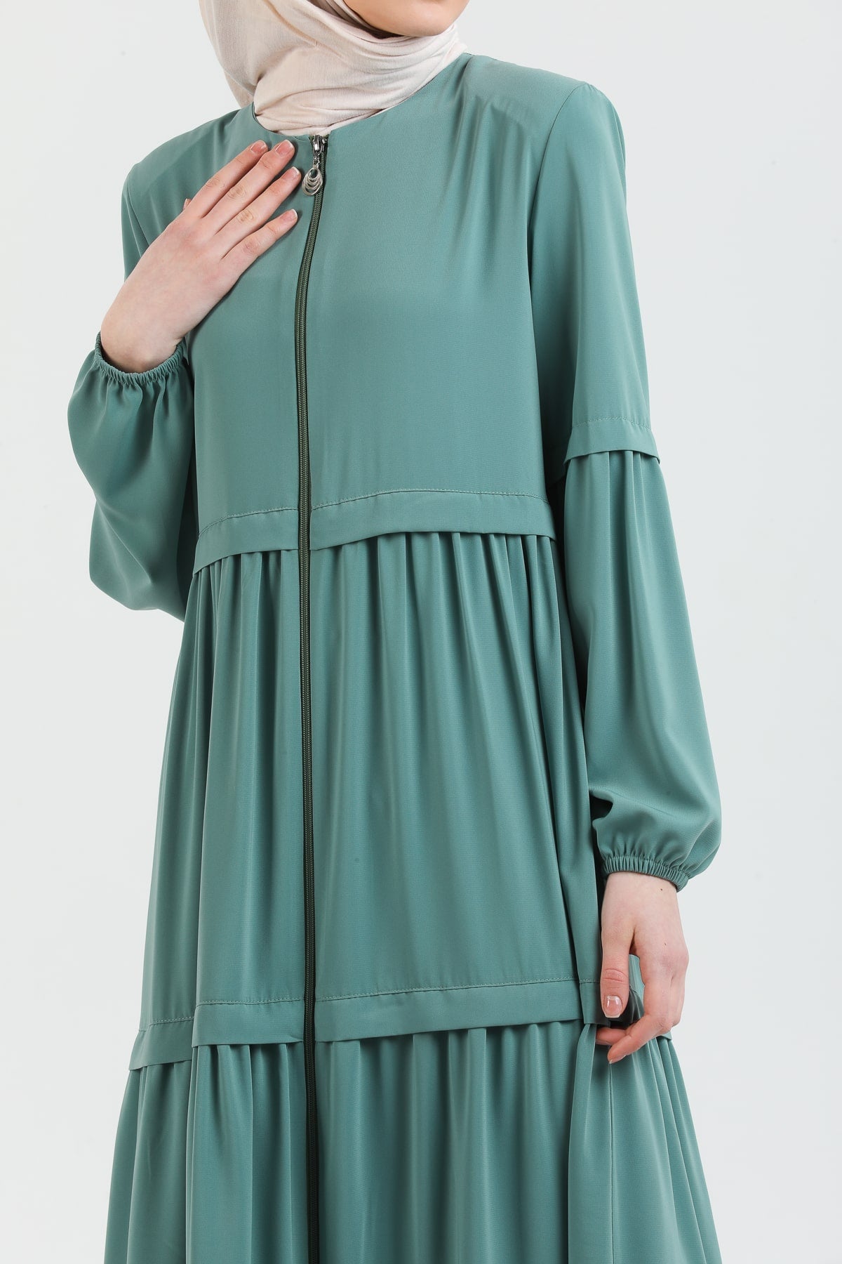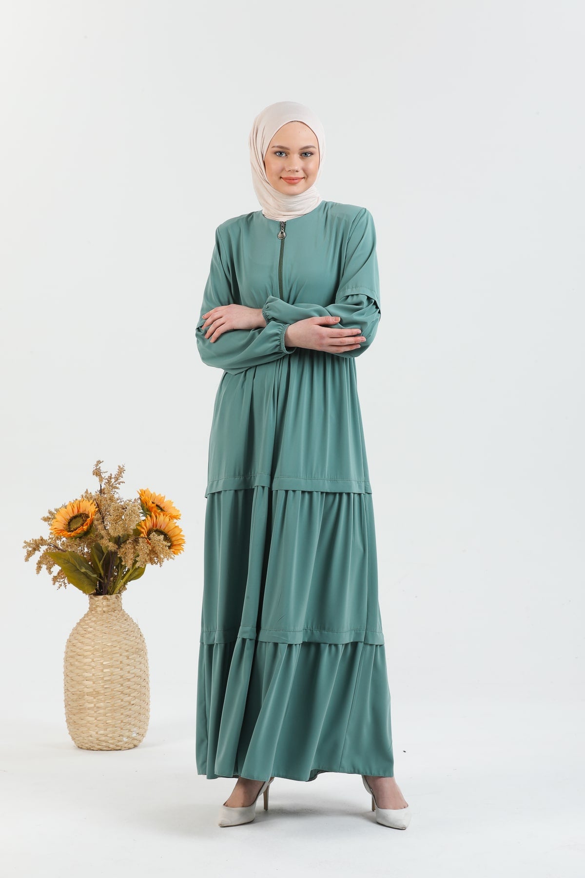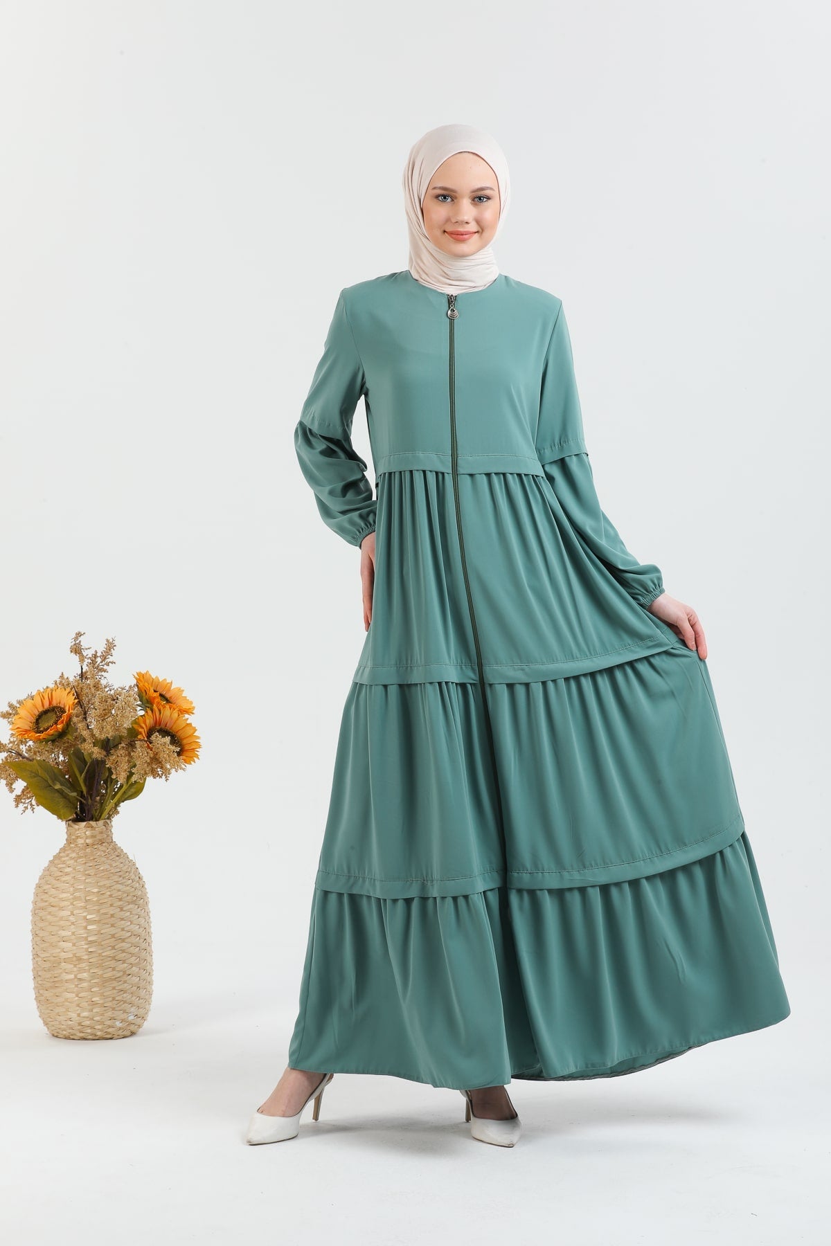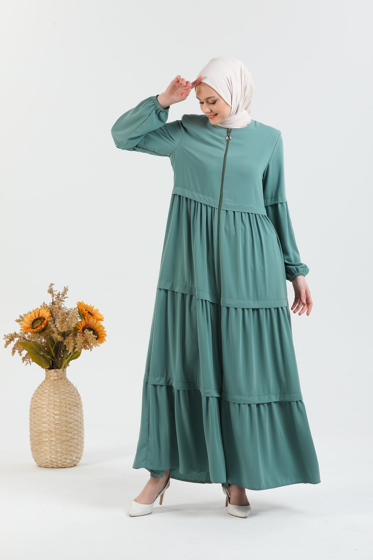 Caractéristiques du produit :un produit hijab abaya de nouvelle saison (sans doublure).le col ovale. Il y a un détail de pliage sur les manches du produit et 3 détails de pliage sur celui-ci. Les manches sont des manches droites. Les poignets sont élastiques. Hijab Abaya a une fermeture éclair sur le devant.Il y a une poche. La couleur du produit est exactement comme sur la photo.