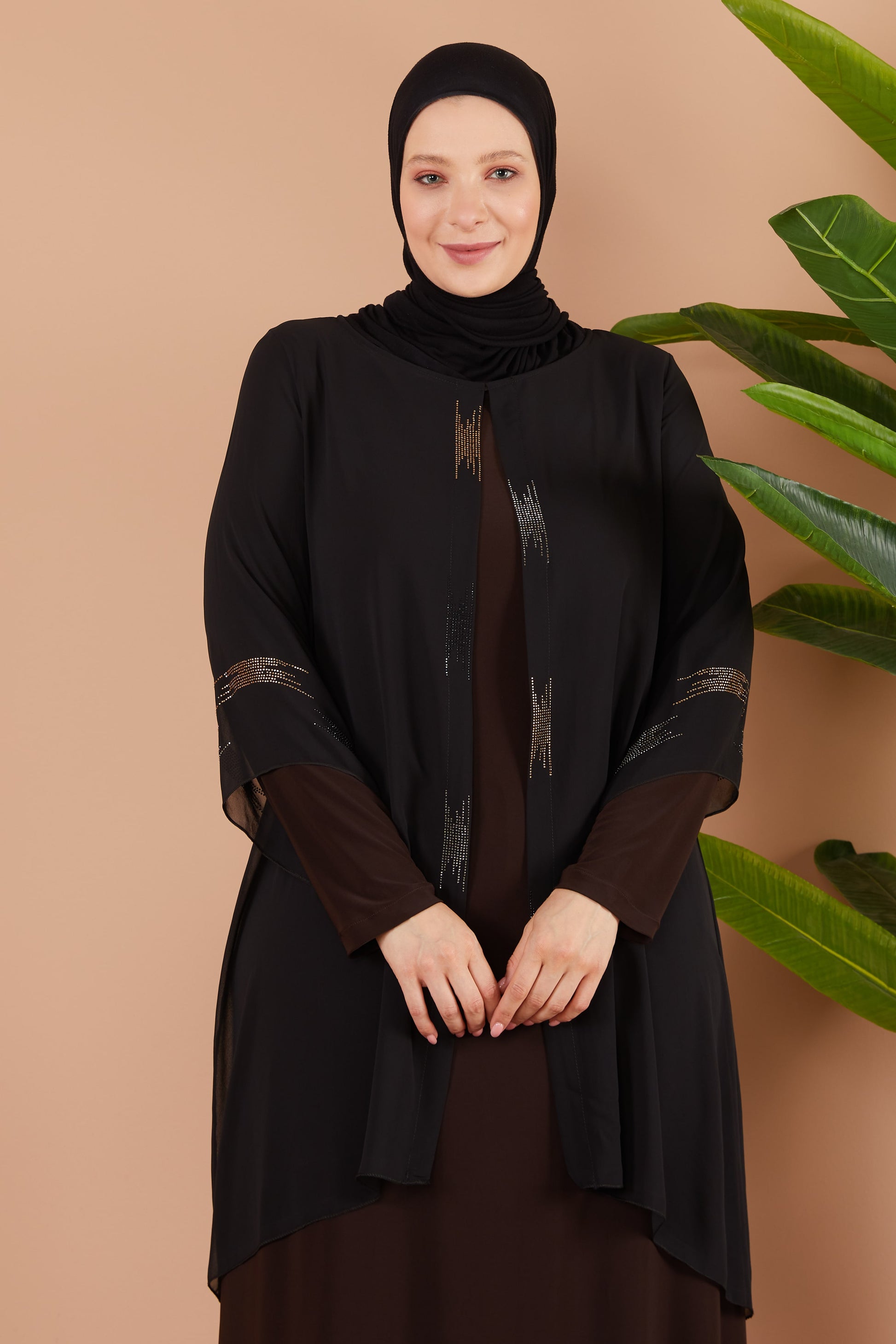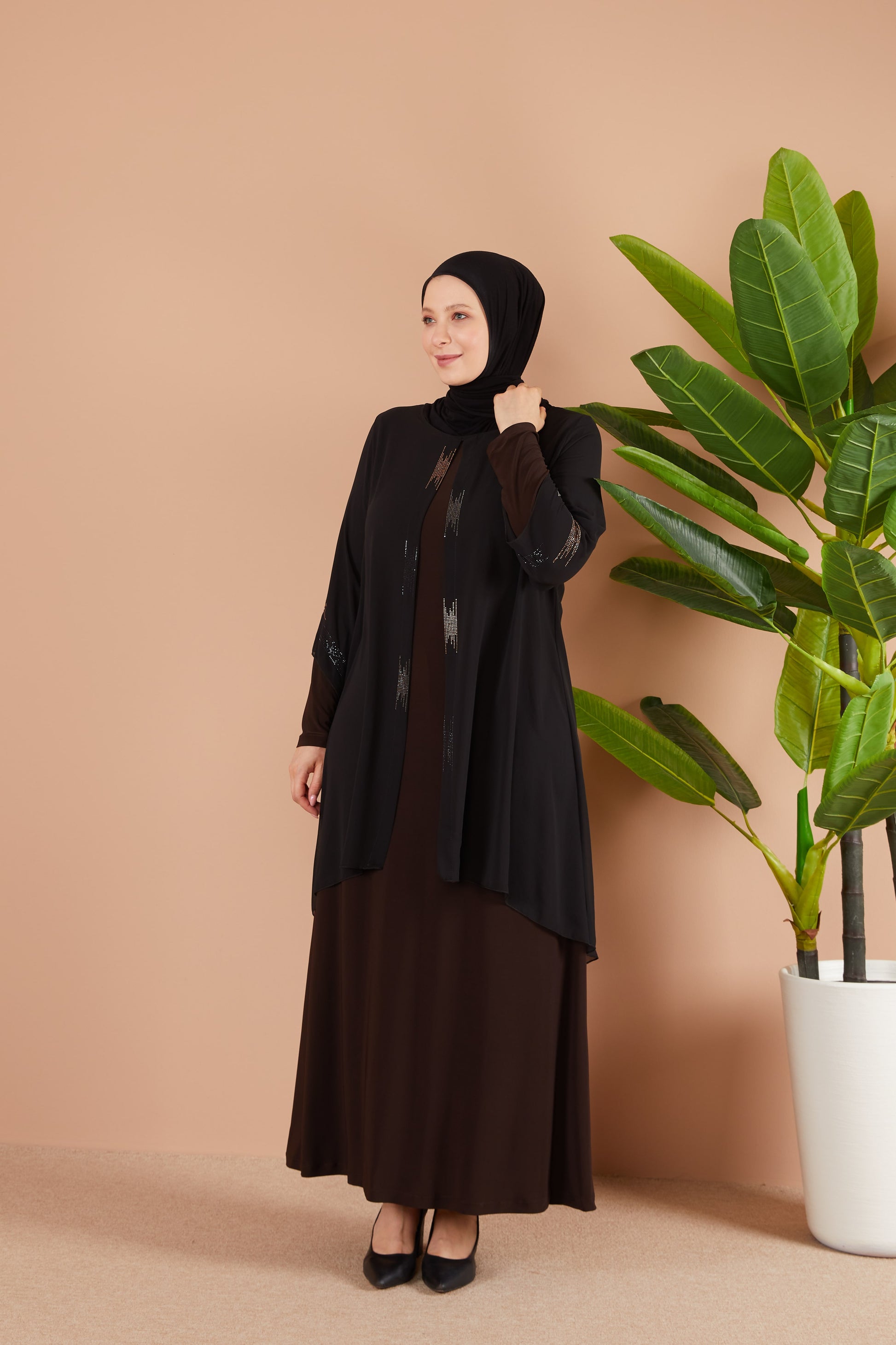 Robe en mousseline grande taille avec pierres marron | 8013-1-42