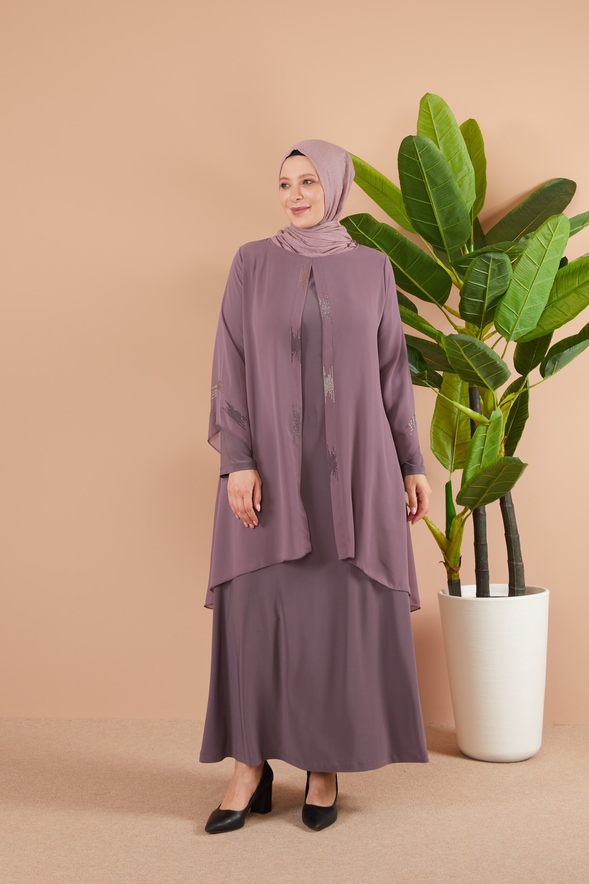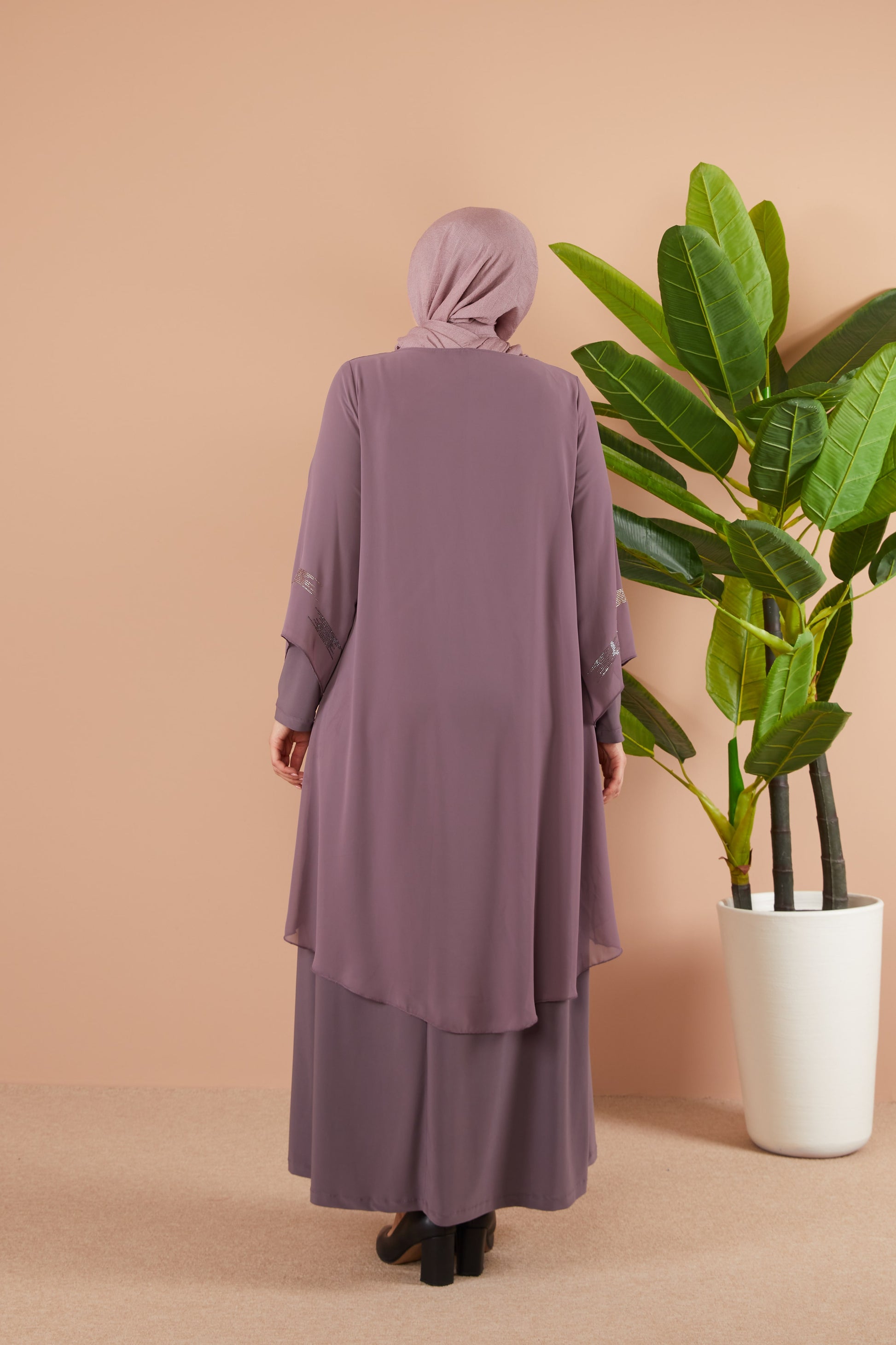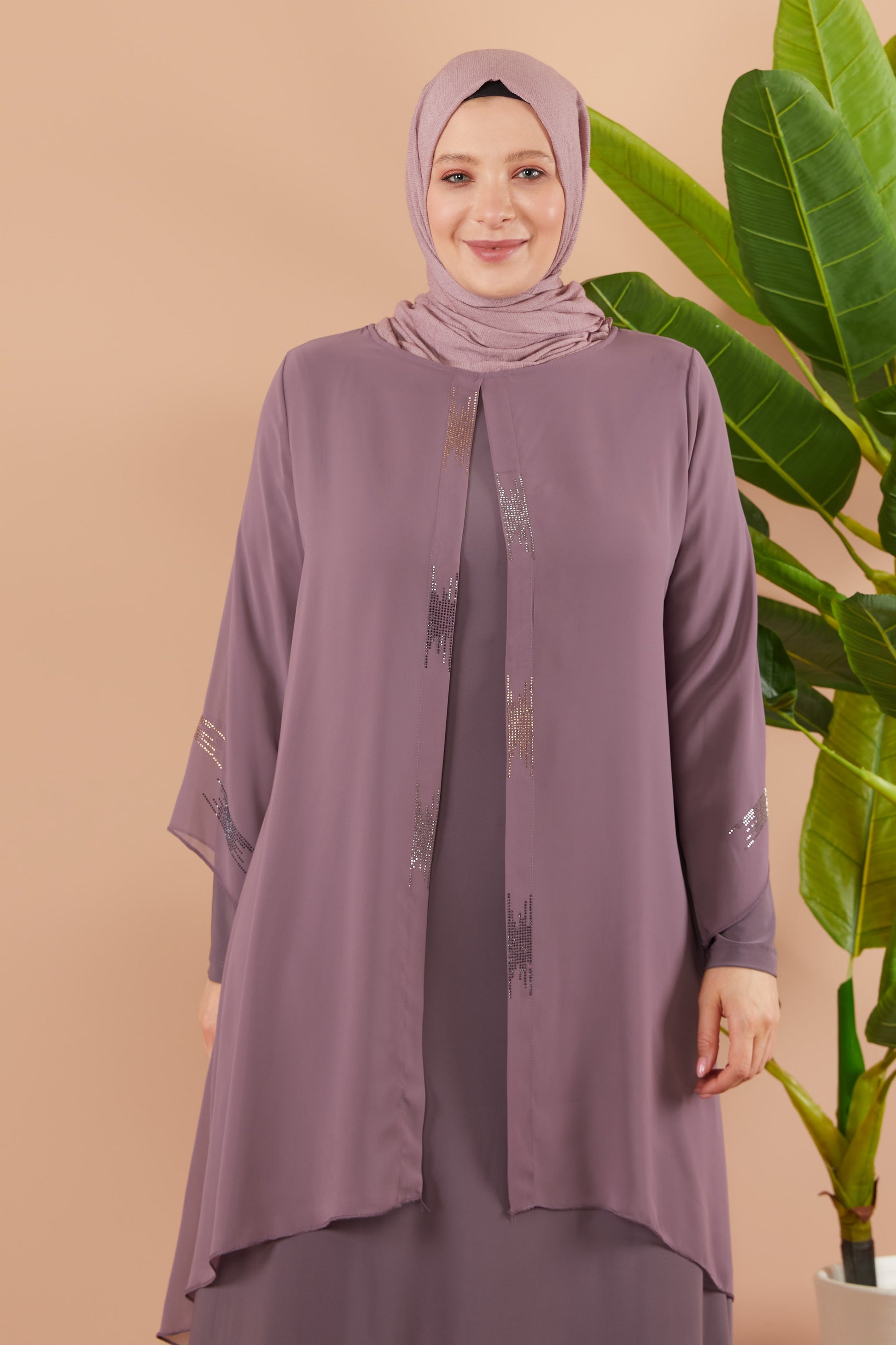 Caractéristique du produit : La robe voilée de la nouvelle saison. Il a un collier ovale. Les poignées du produit sont droites. Le dos et le devant sont en tissu mousseline. Il y a des détails en pierre sur le devant du tissu en mousseline et sur les poignets. Tissu mousseline jusqu'à la moitié du poignet. La couleur du produit est exactement comme sur la photo.