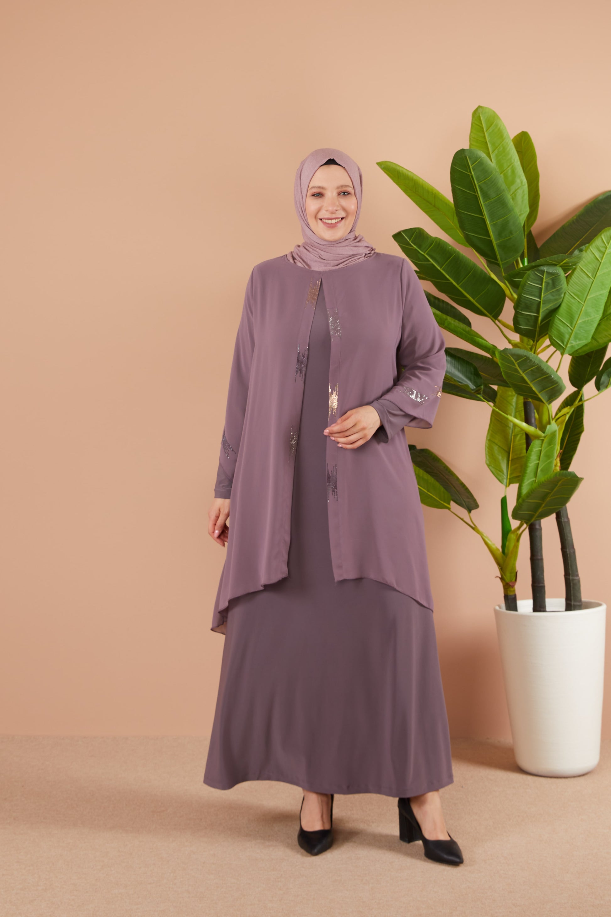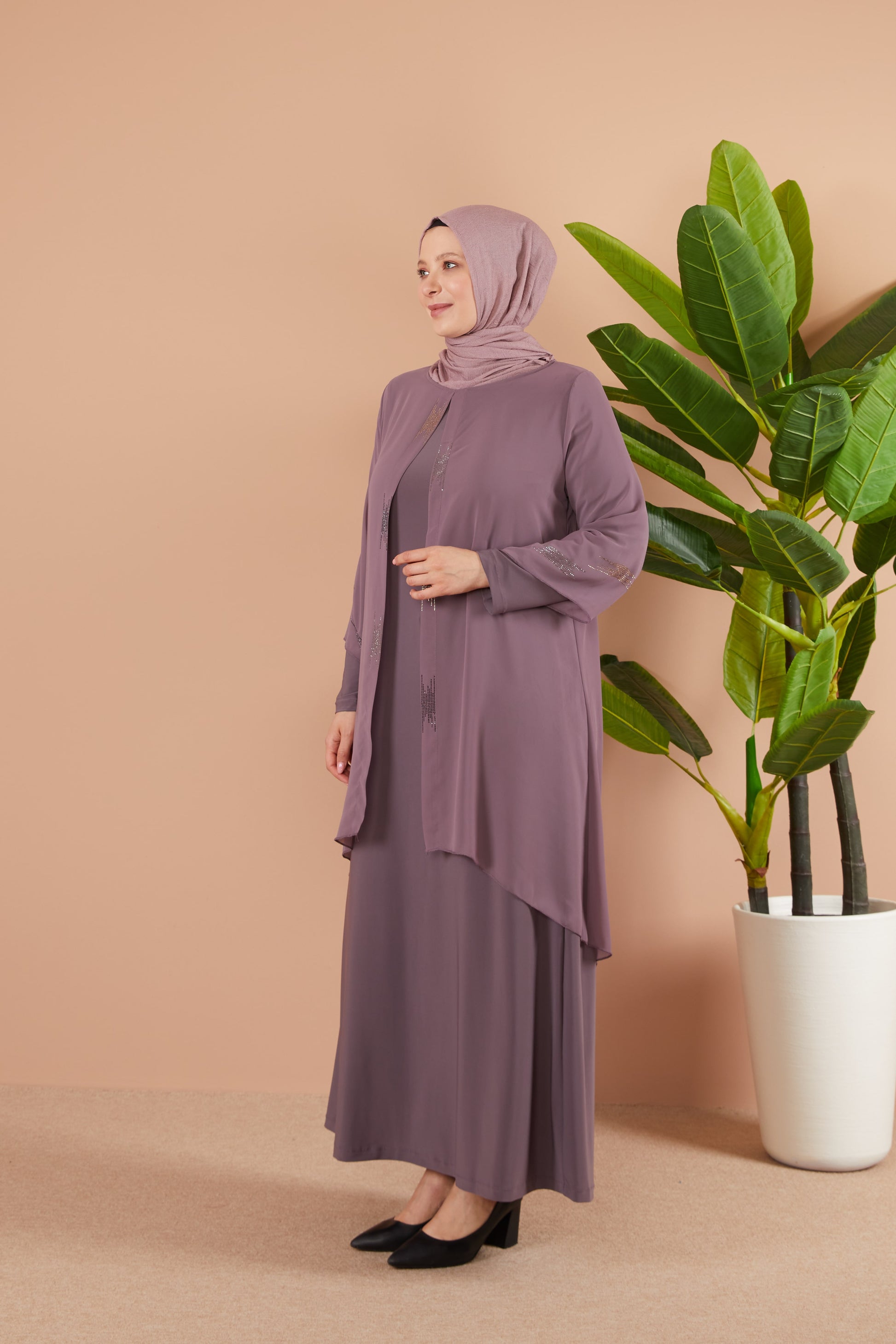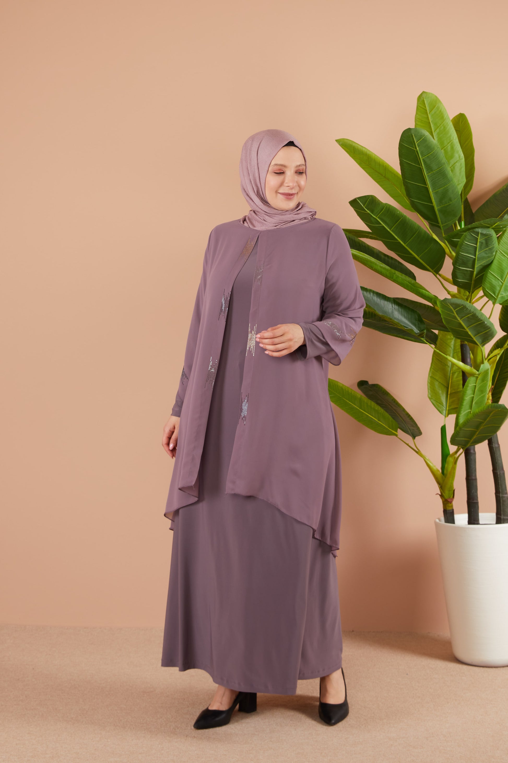 Caractéristique du produit : La robe voilée de la nouvelle saison. Il a un collier ovale. Les poignées du produit sont droites. Le dos et le devant sont en tissu mousseline. Il y a des détails en pierre sur le devant du tissu en mousseline et sur les poignets. Tissu mousseline jusqu'à la moitié du poignet. La couleur du produit est exactement comme sur la photo.