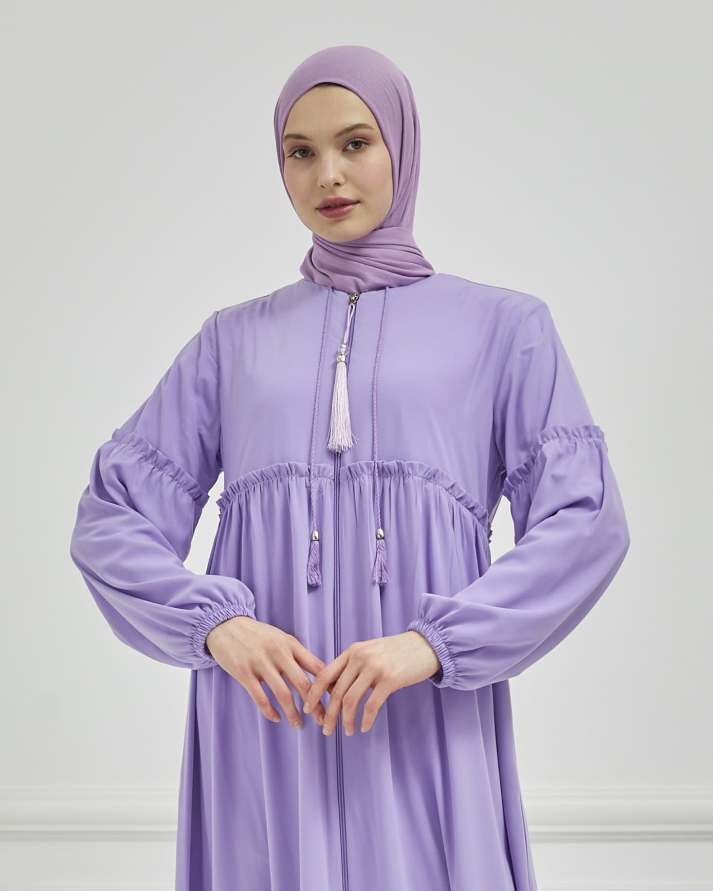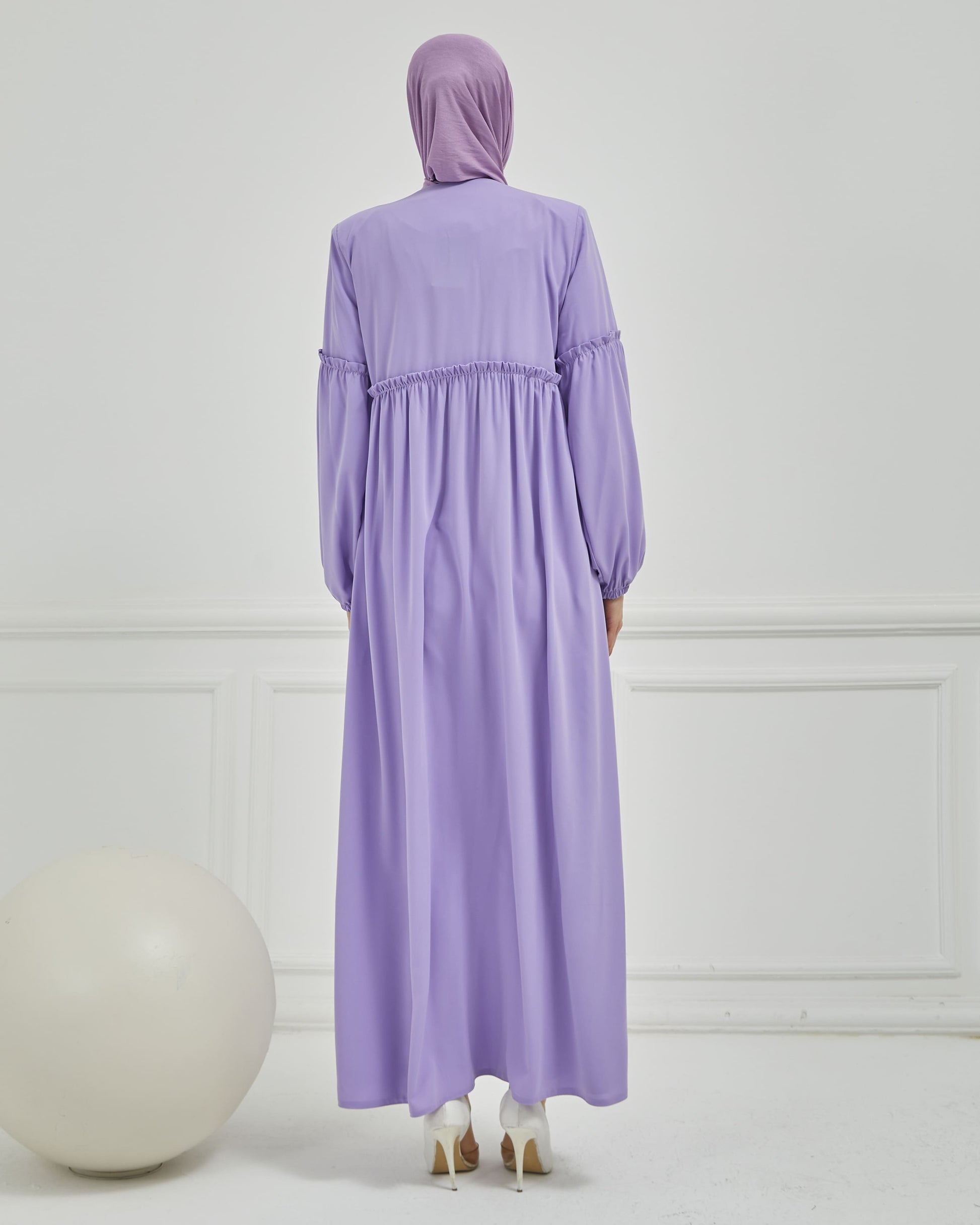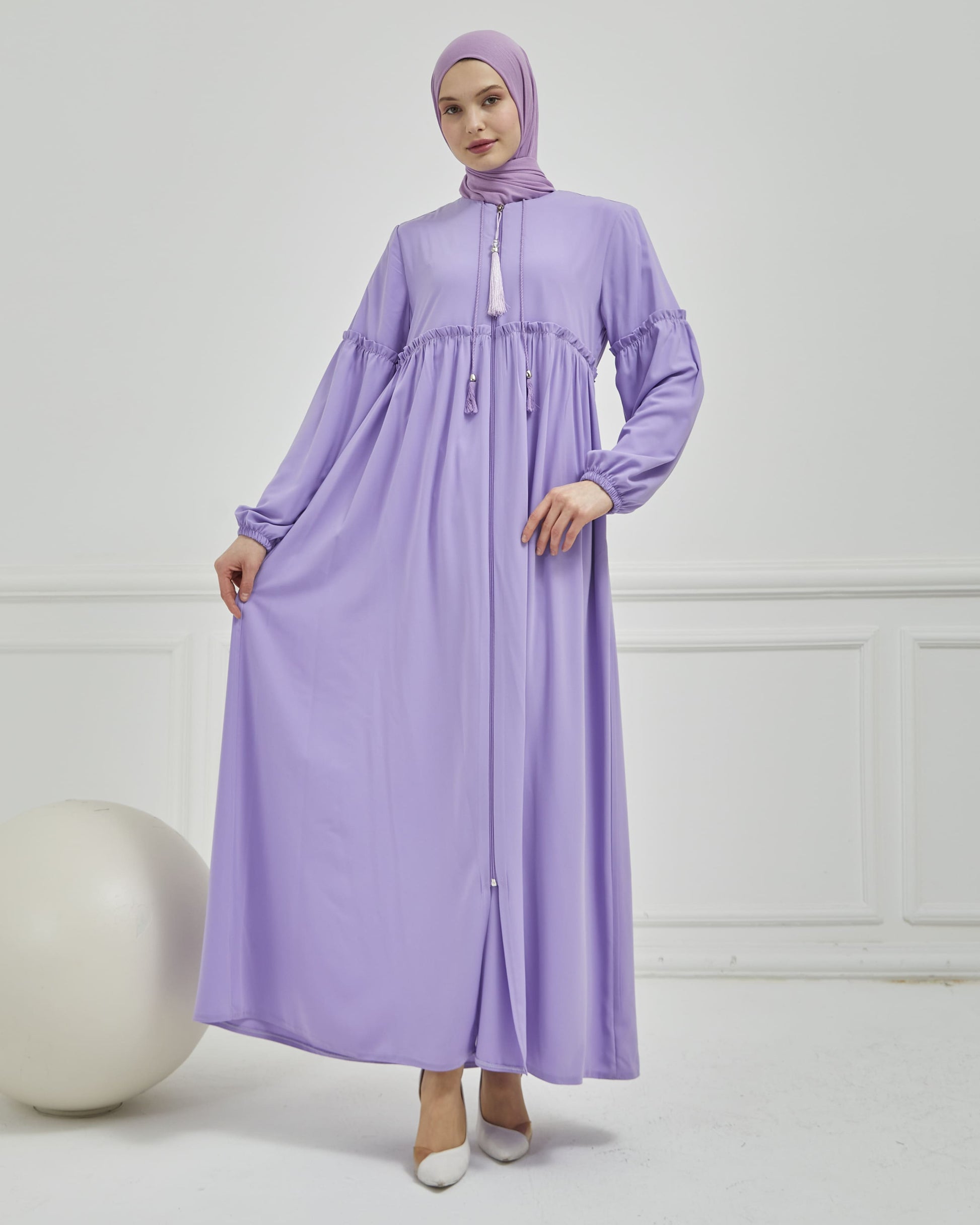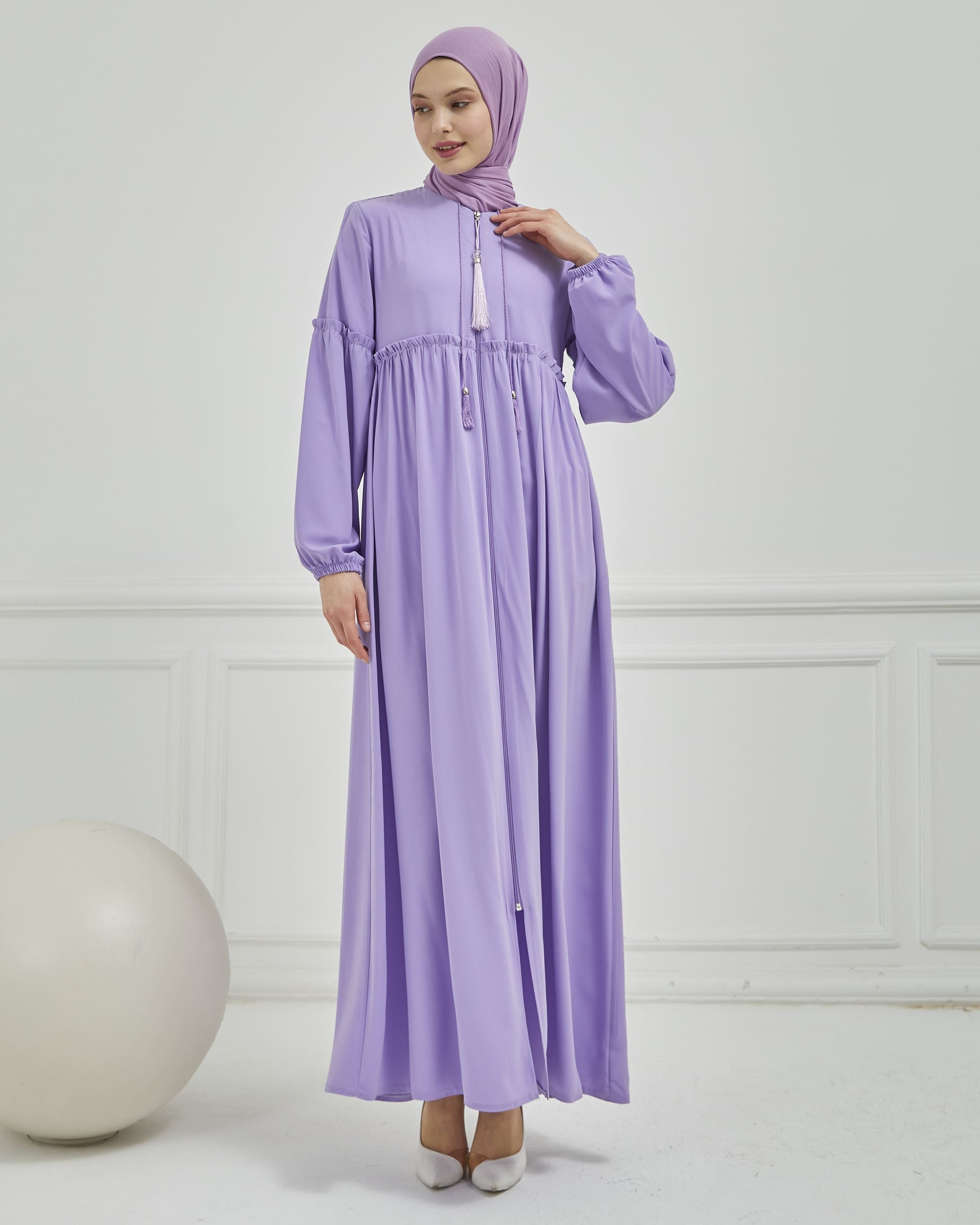 Abaya plissée large et manches élastiques, couleur grise | 2061-24