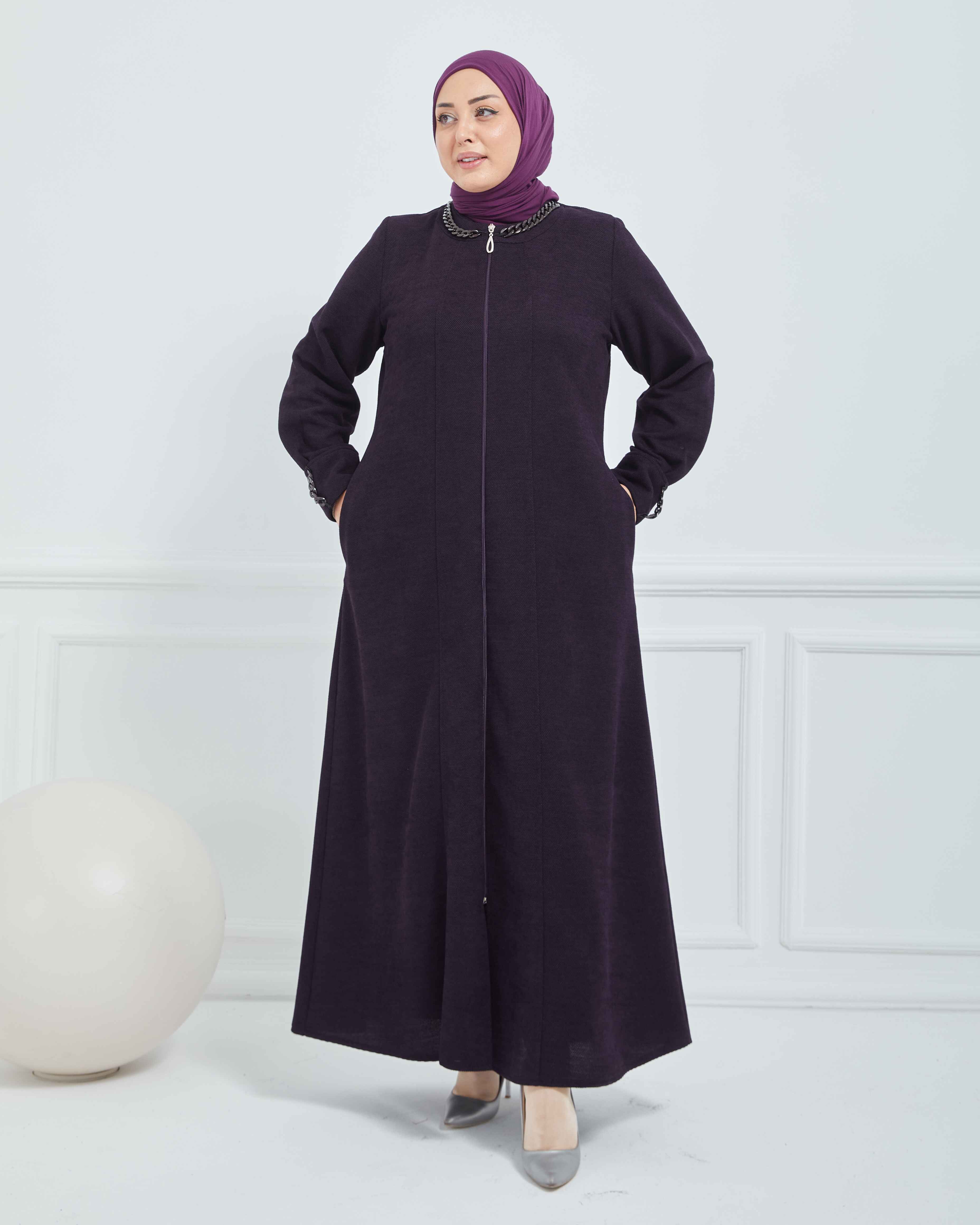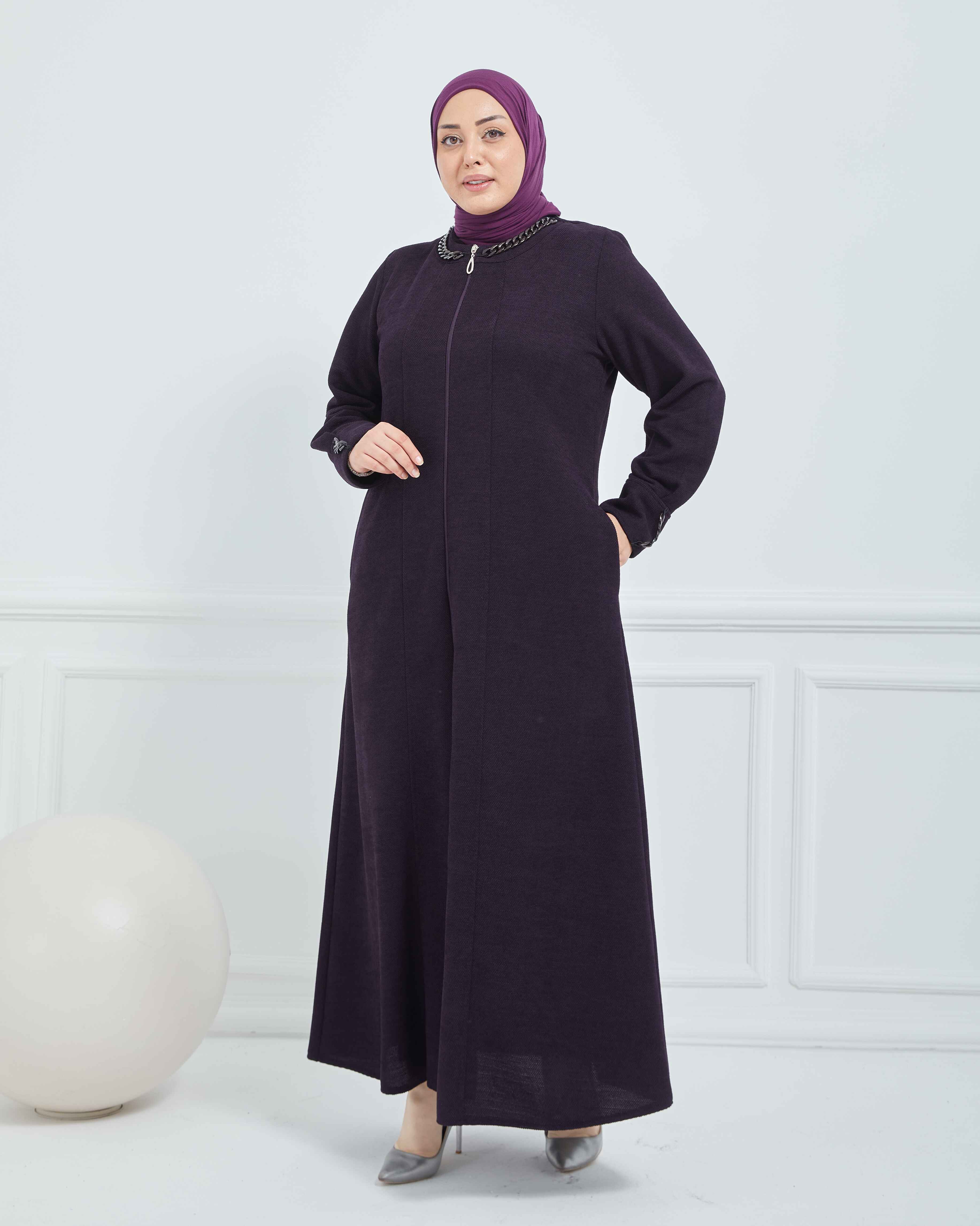 Büyük Beden Kışlık Ferace Mürdüm | K21008