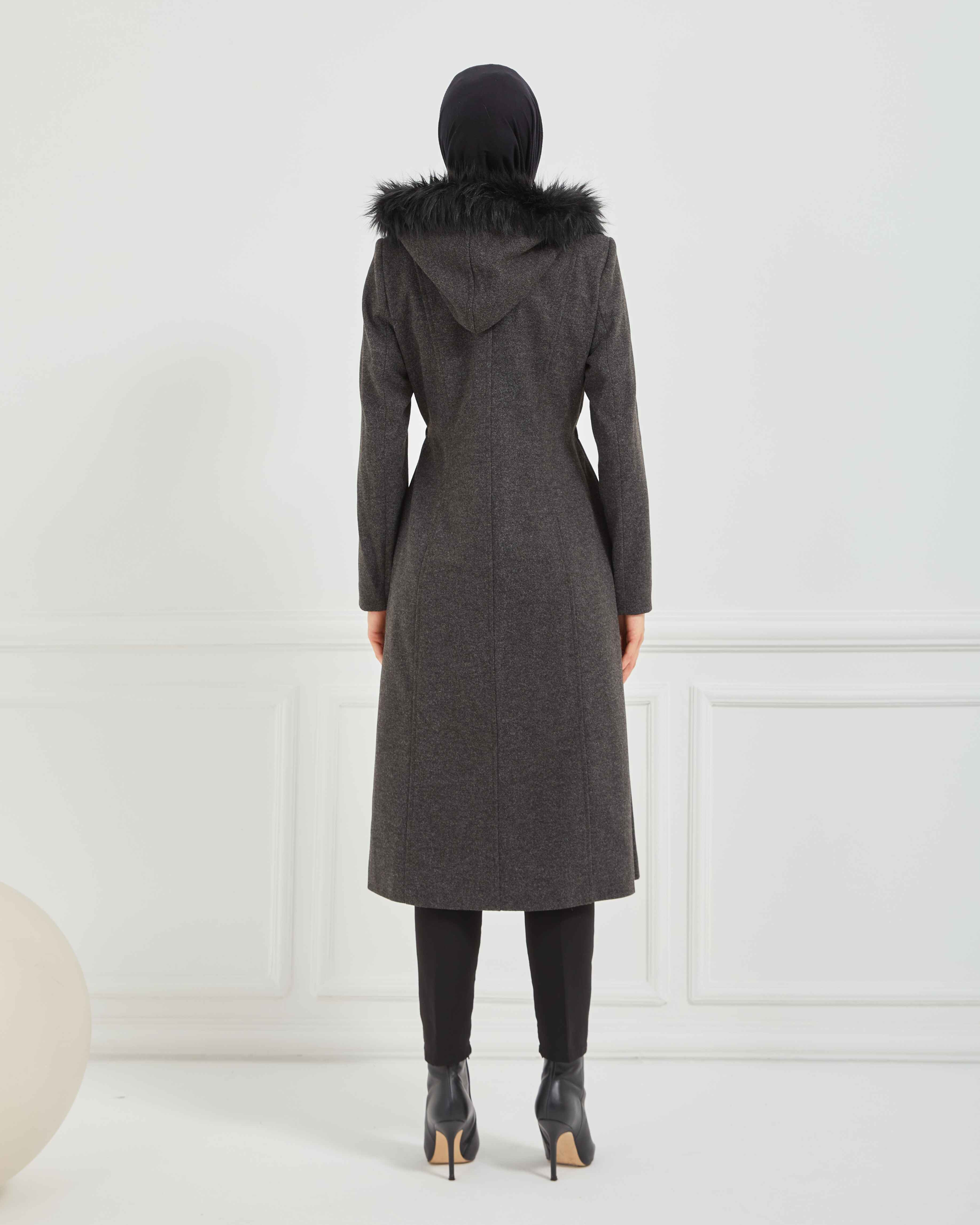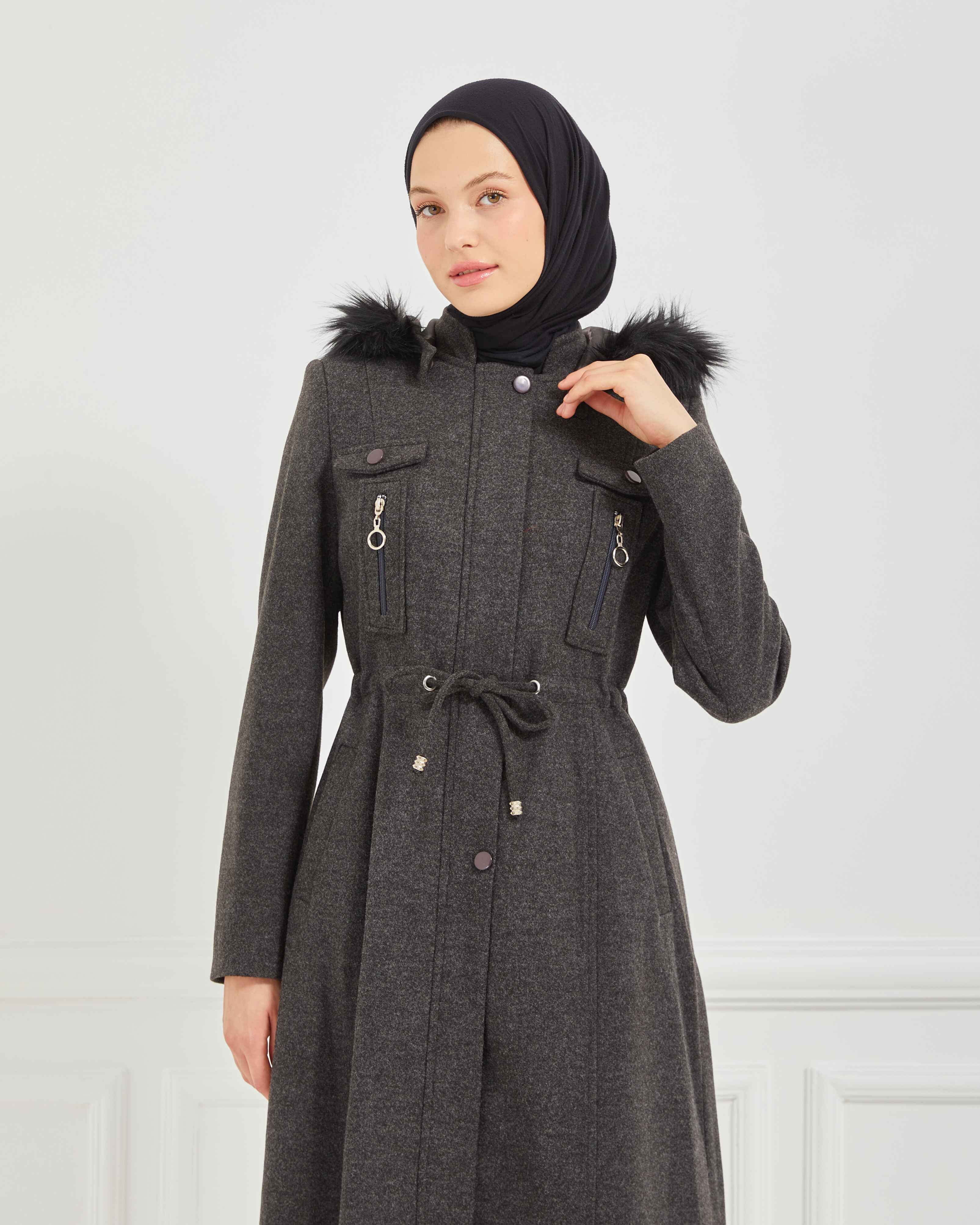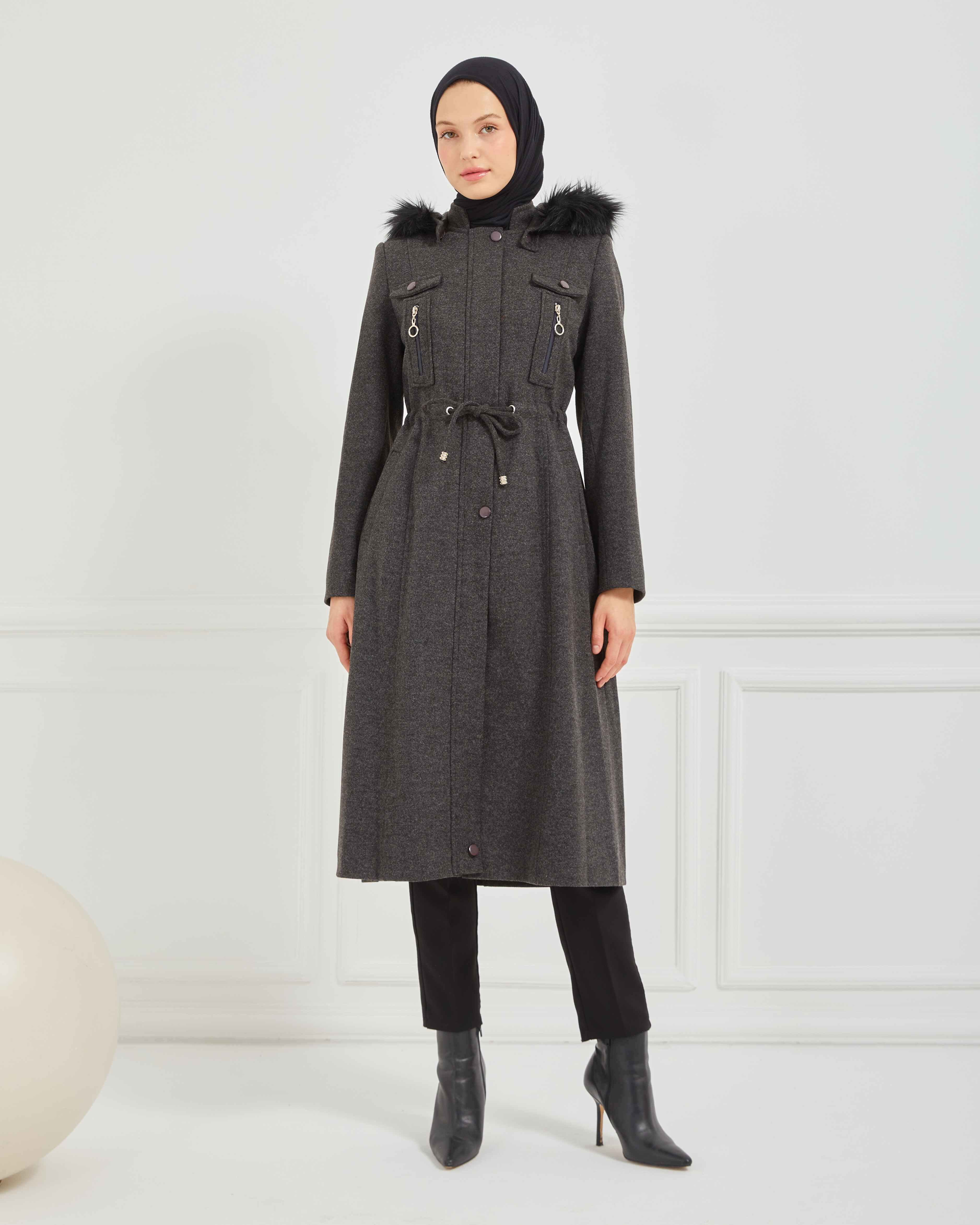 Dizaltı Kapşonlu Kaşe Mont Füme | 17001K41