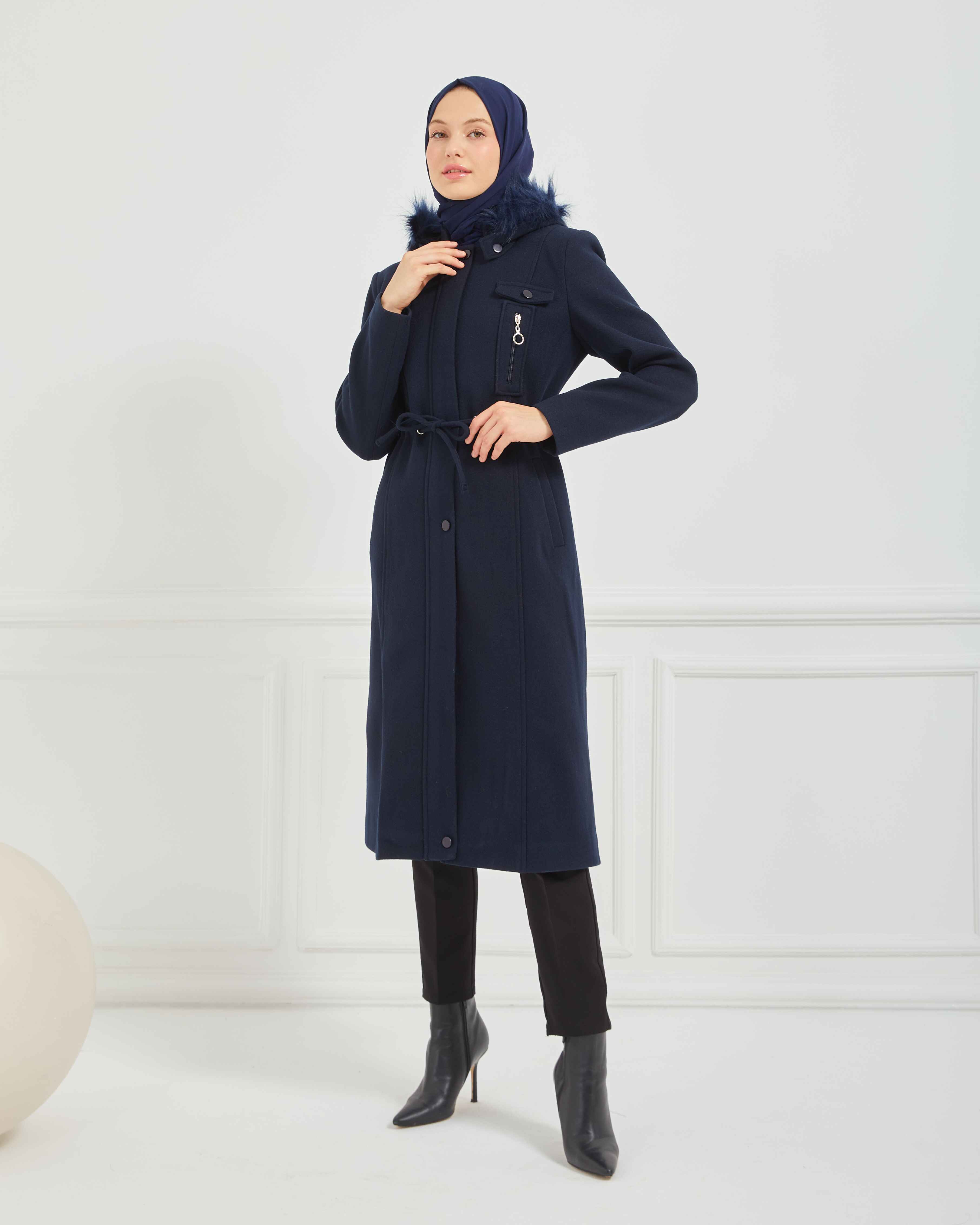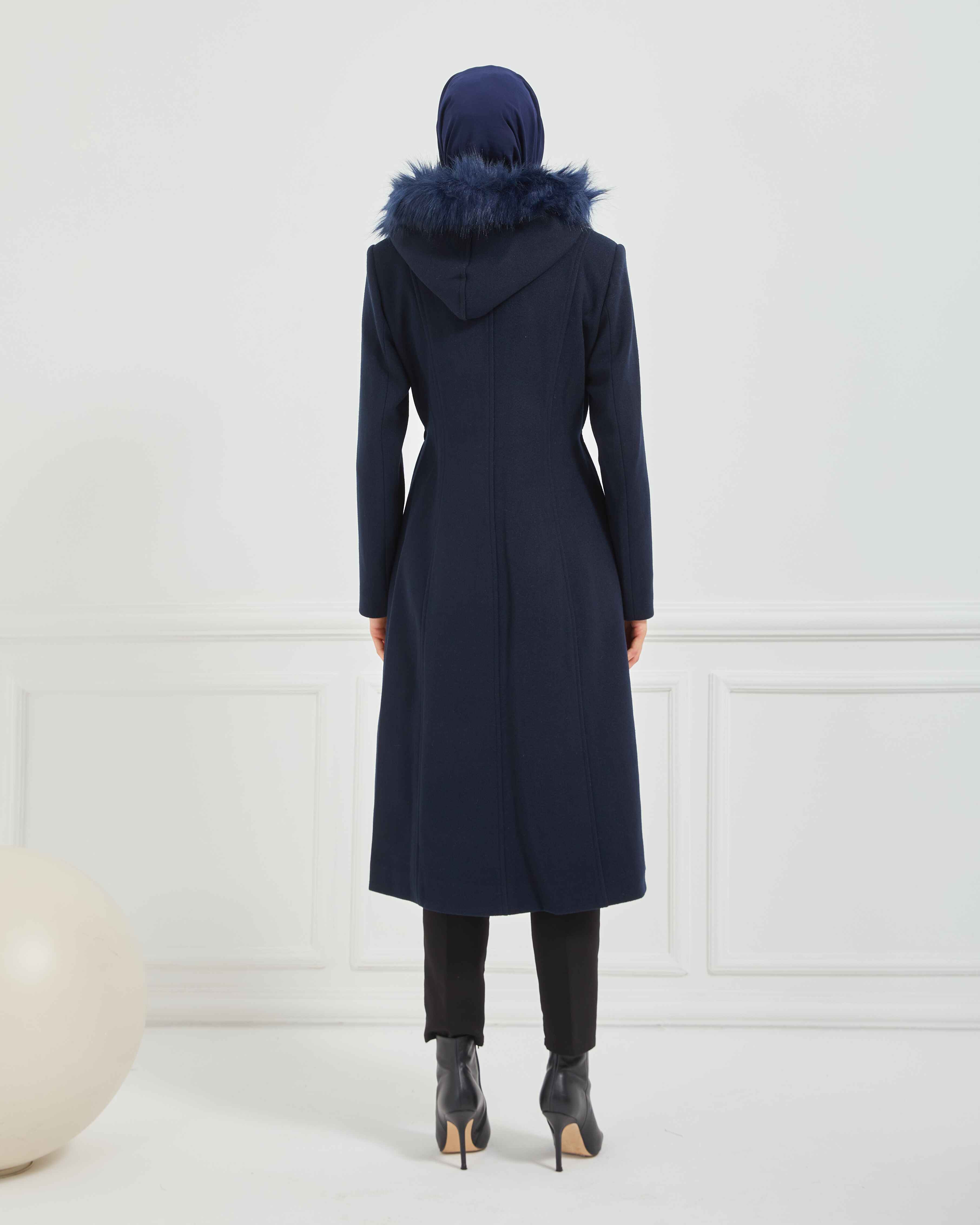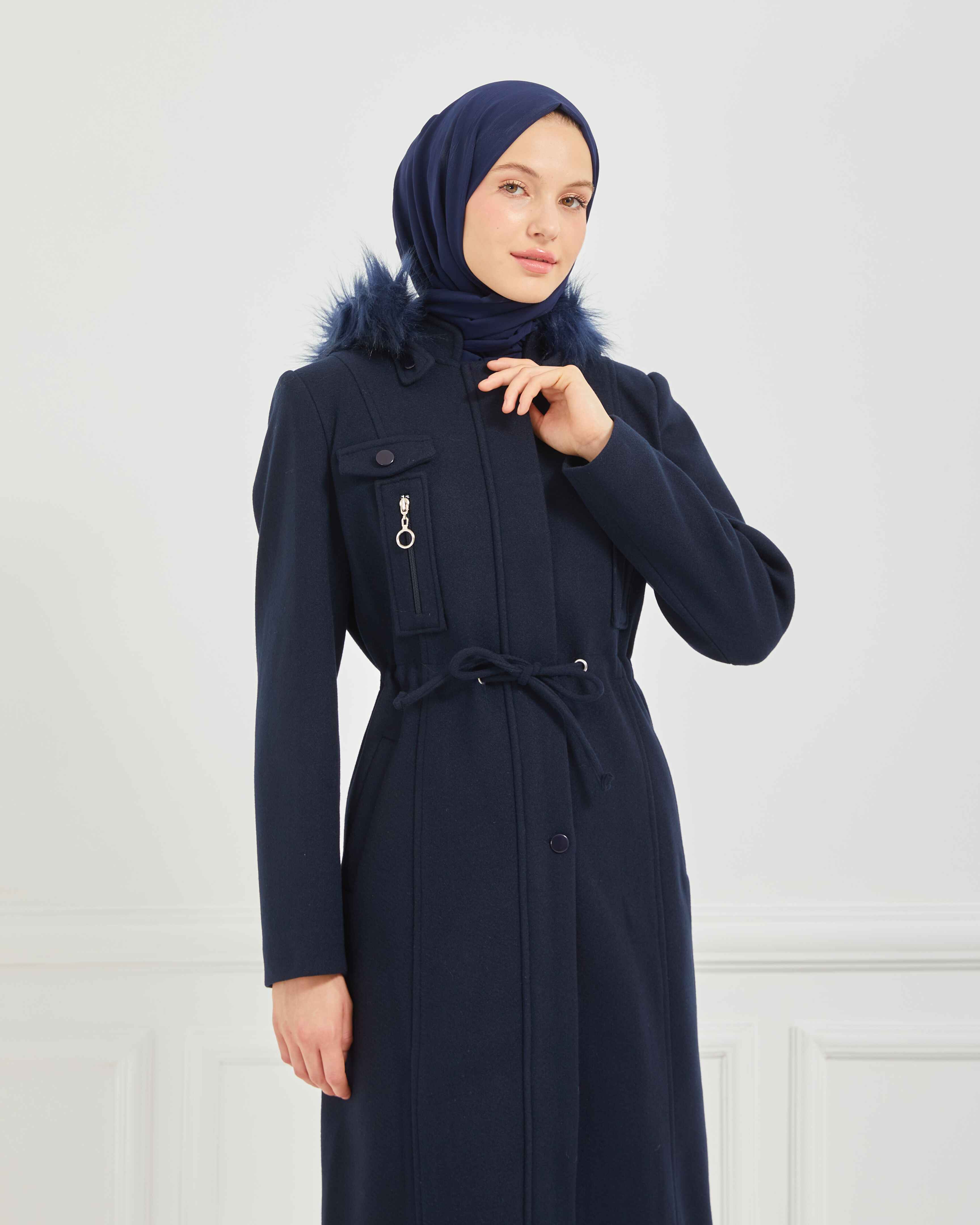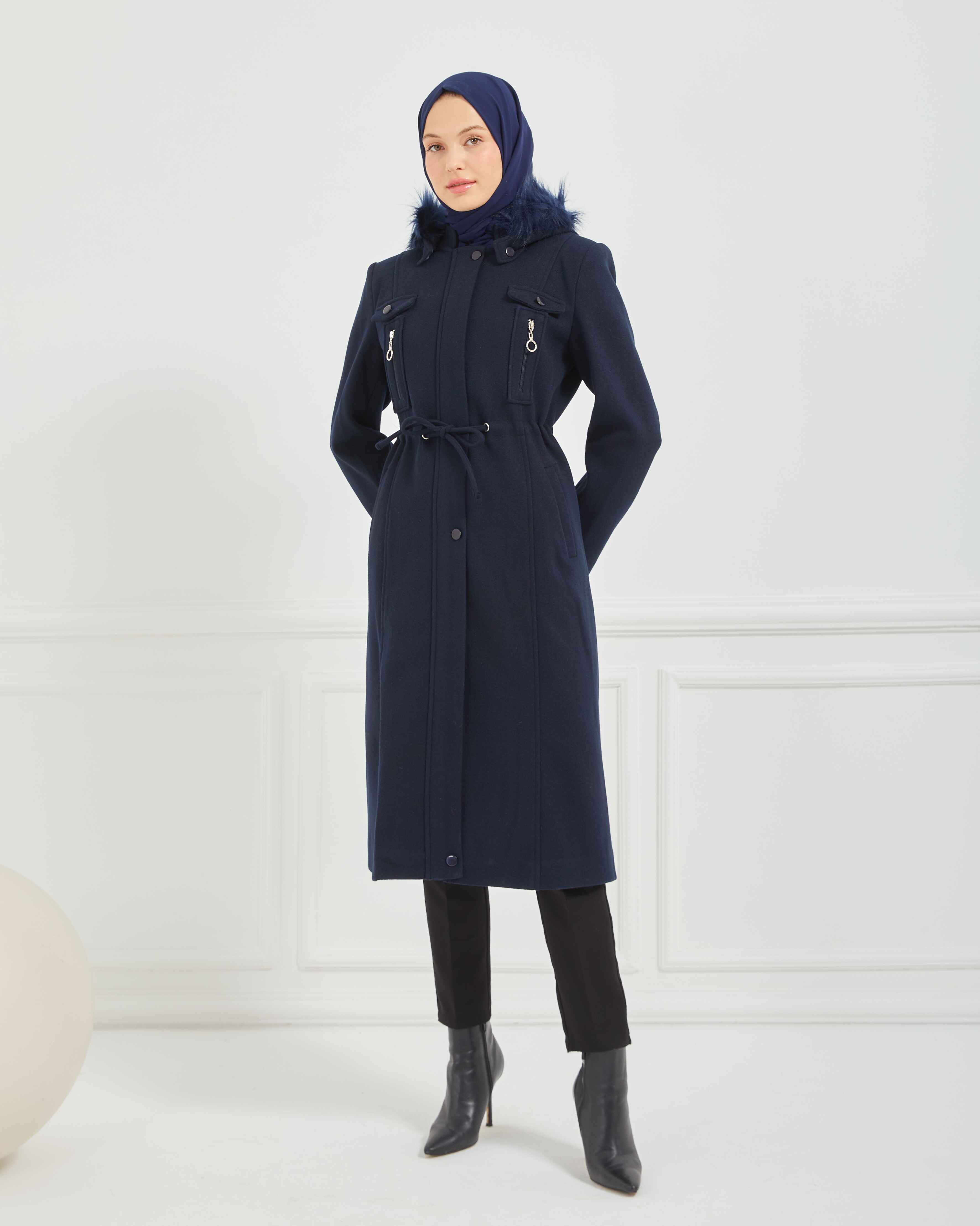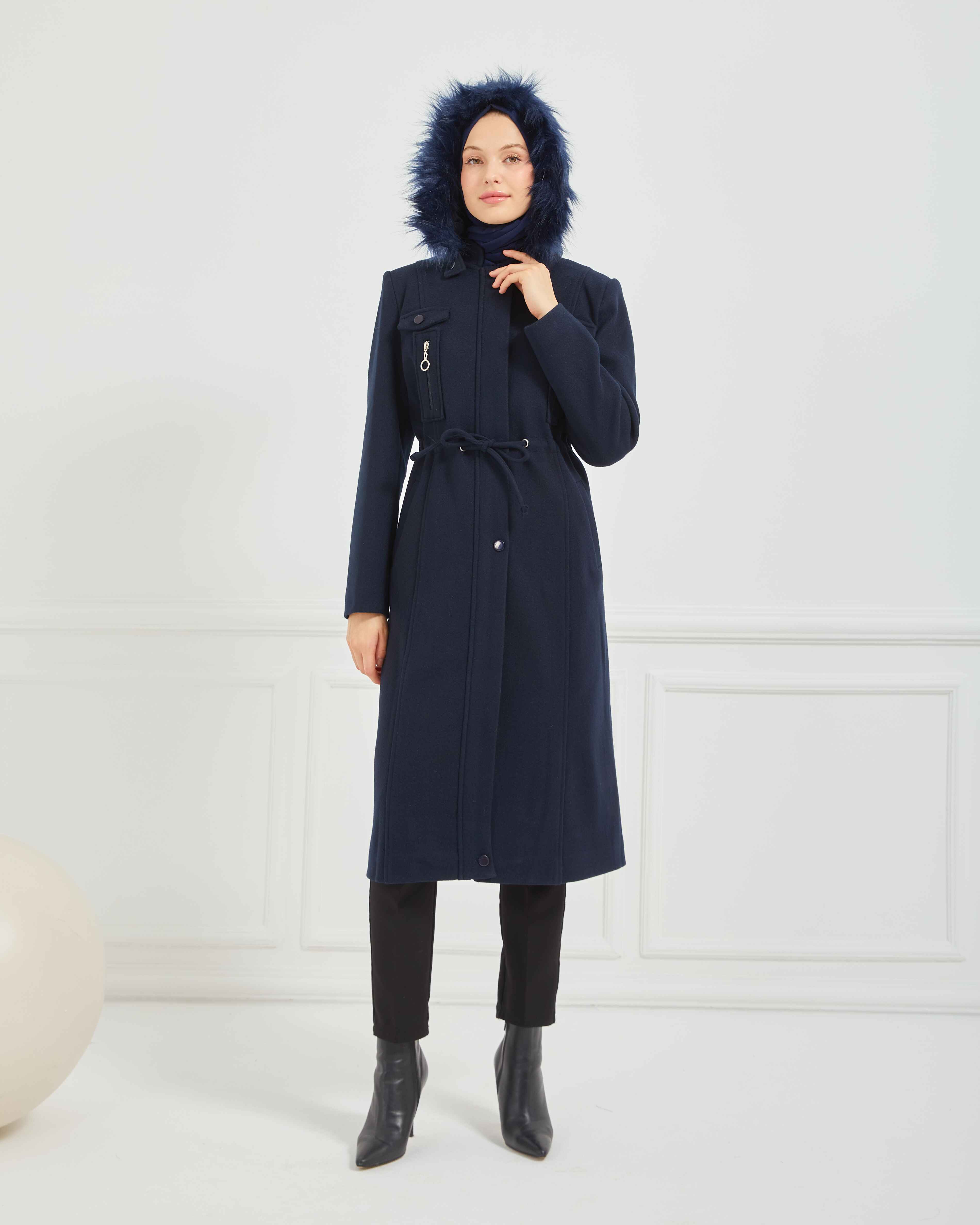 Dizaltı Kapşonlu Kaşe Mont Lacivert | 17001K5