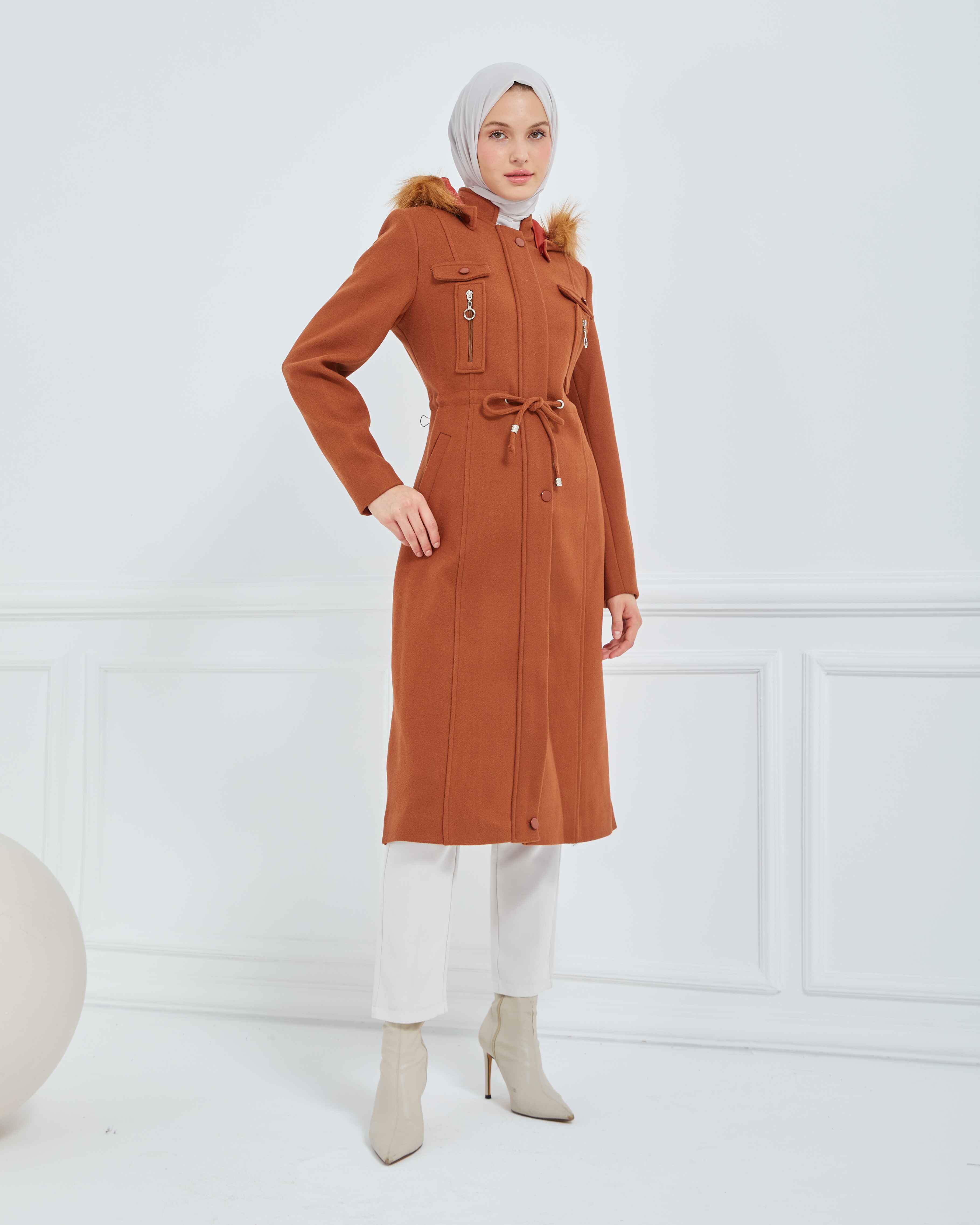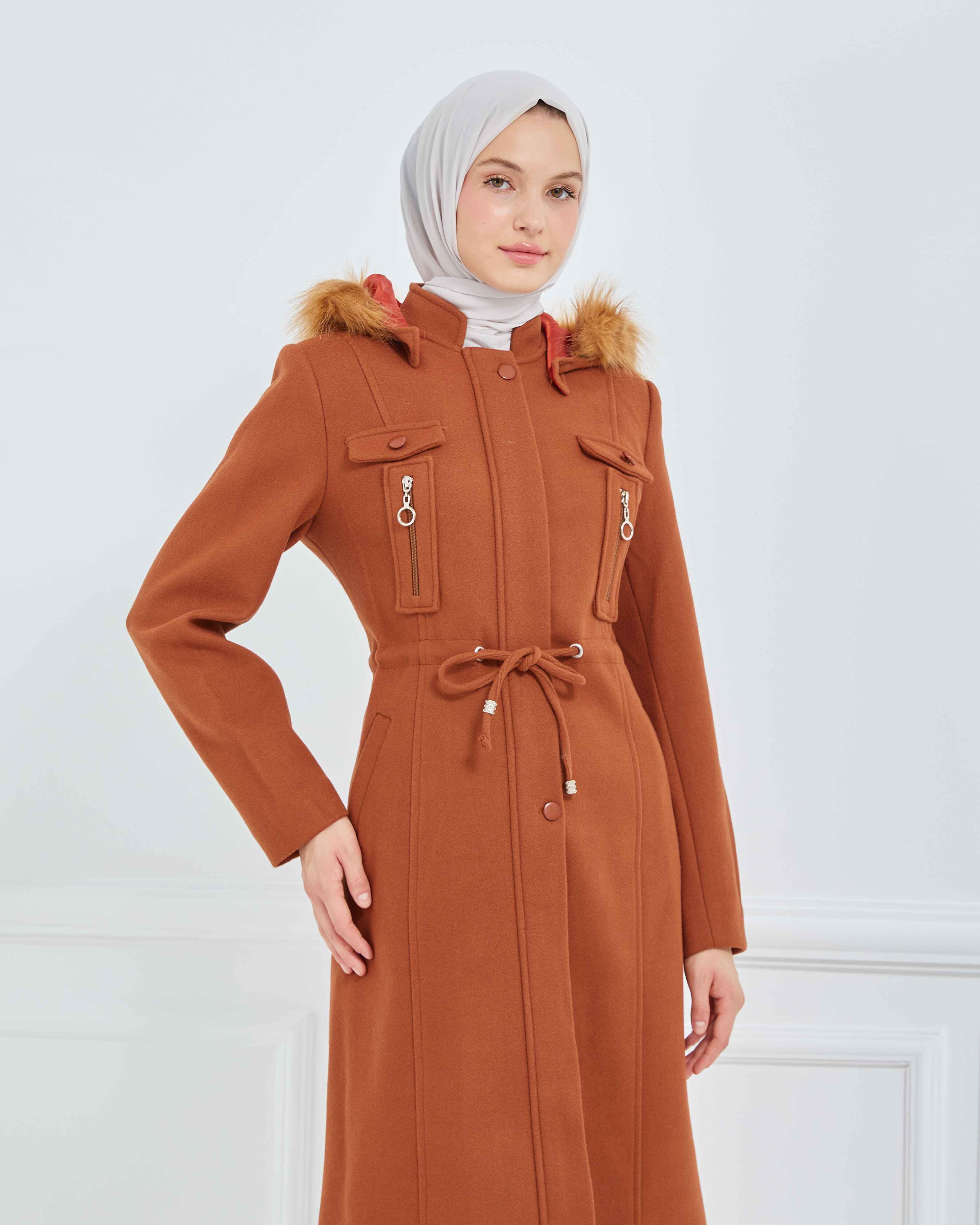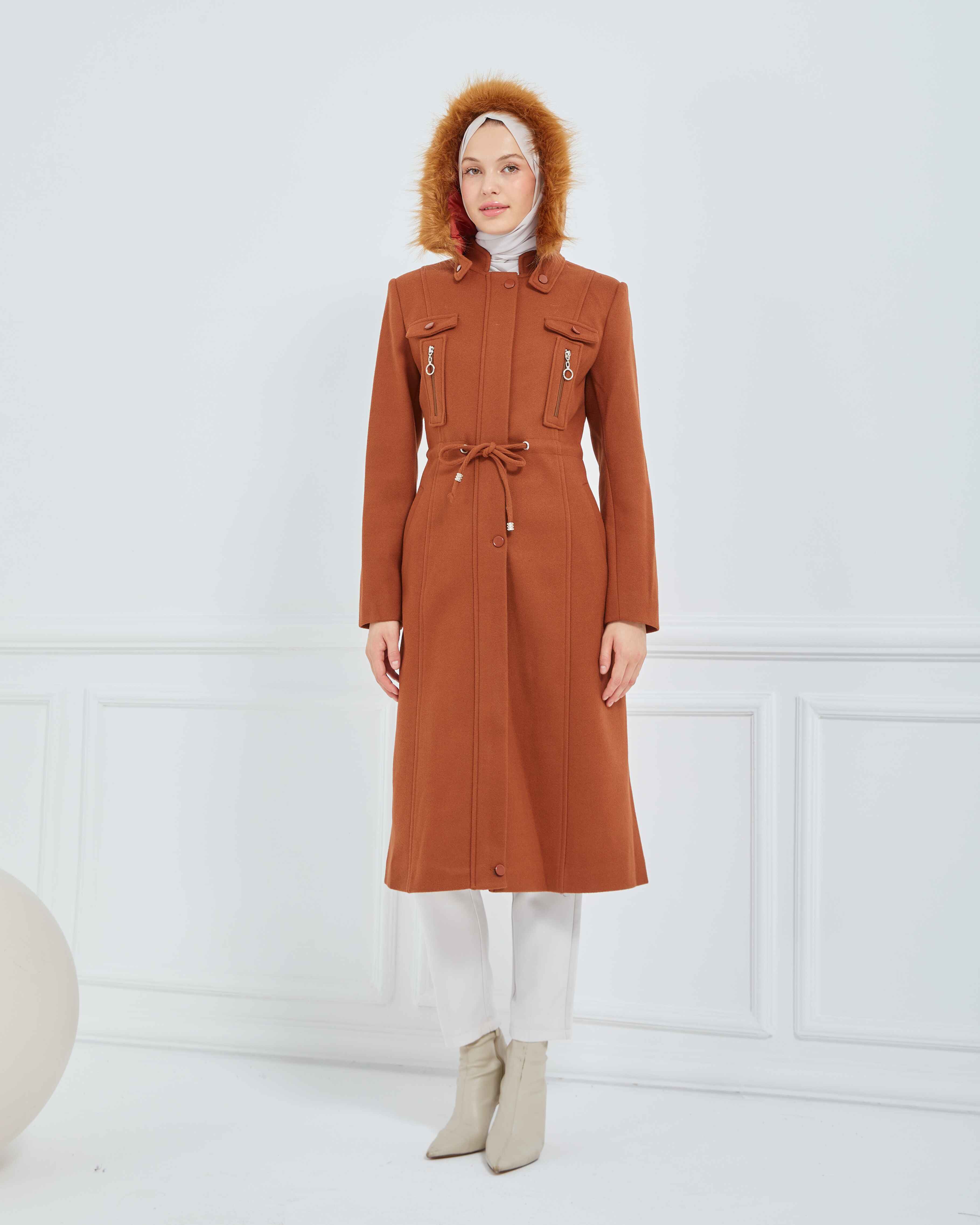 Dizaltı Kapşonlu Kaşe Mont Taba | 17001K37