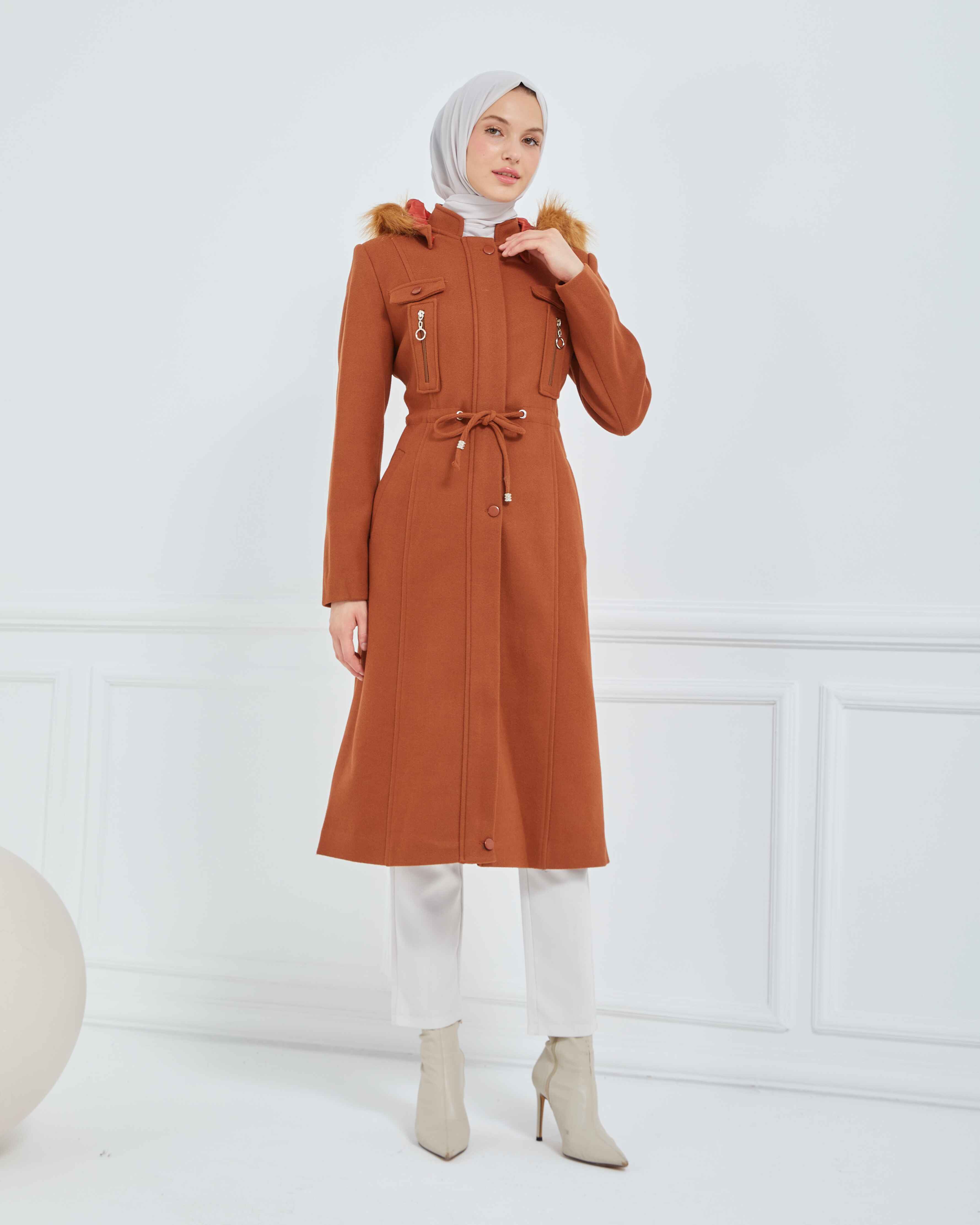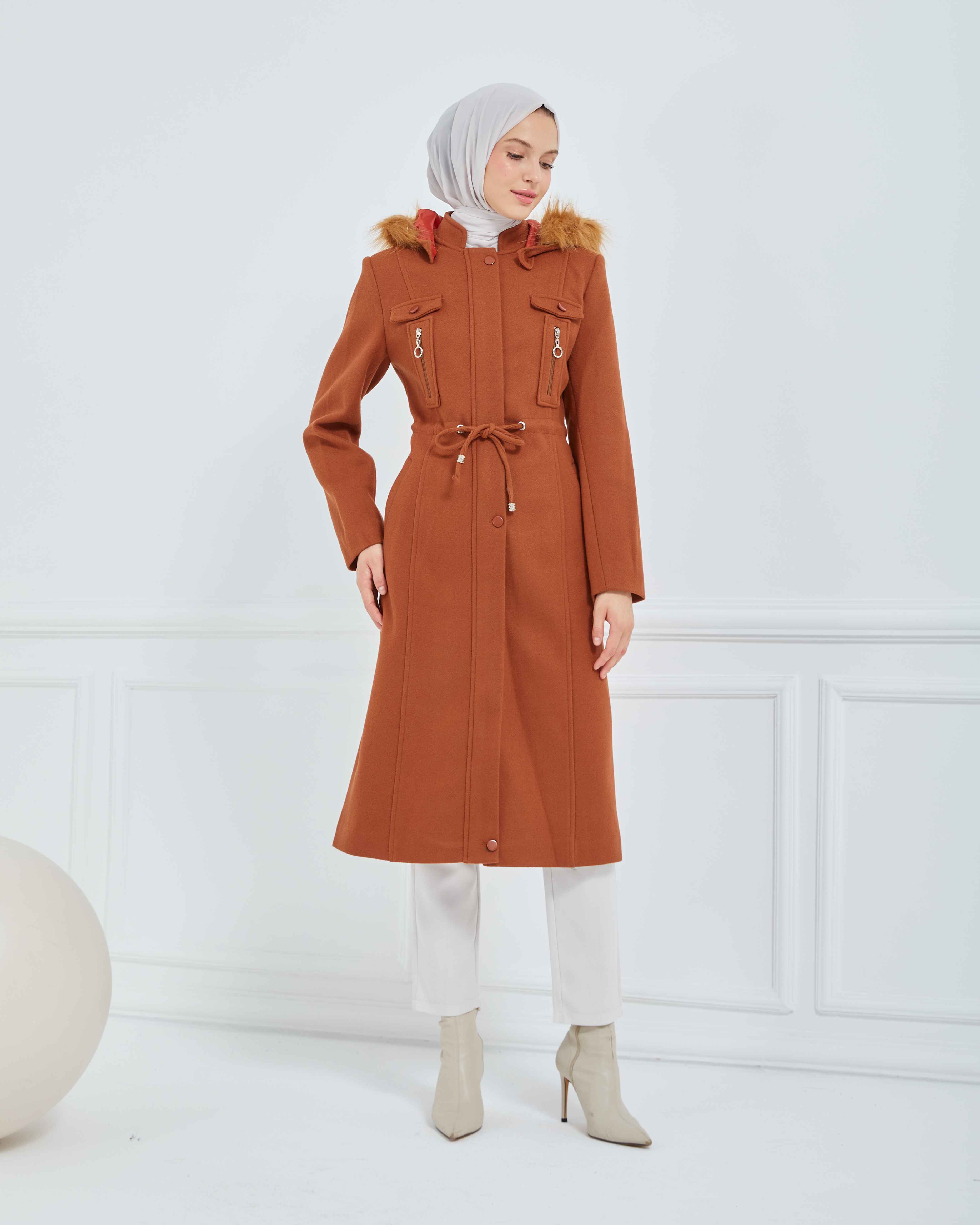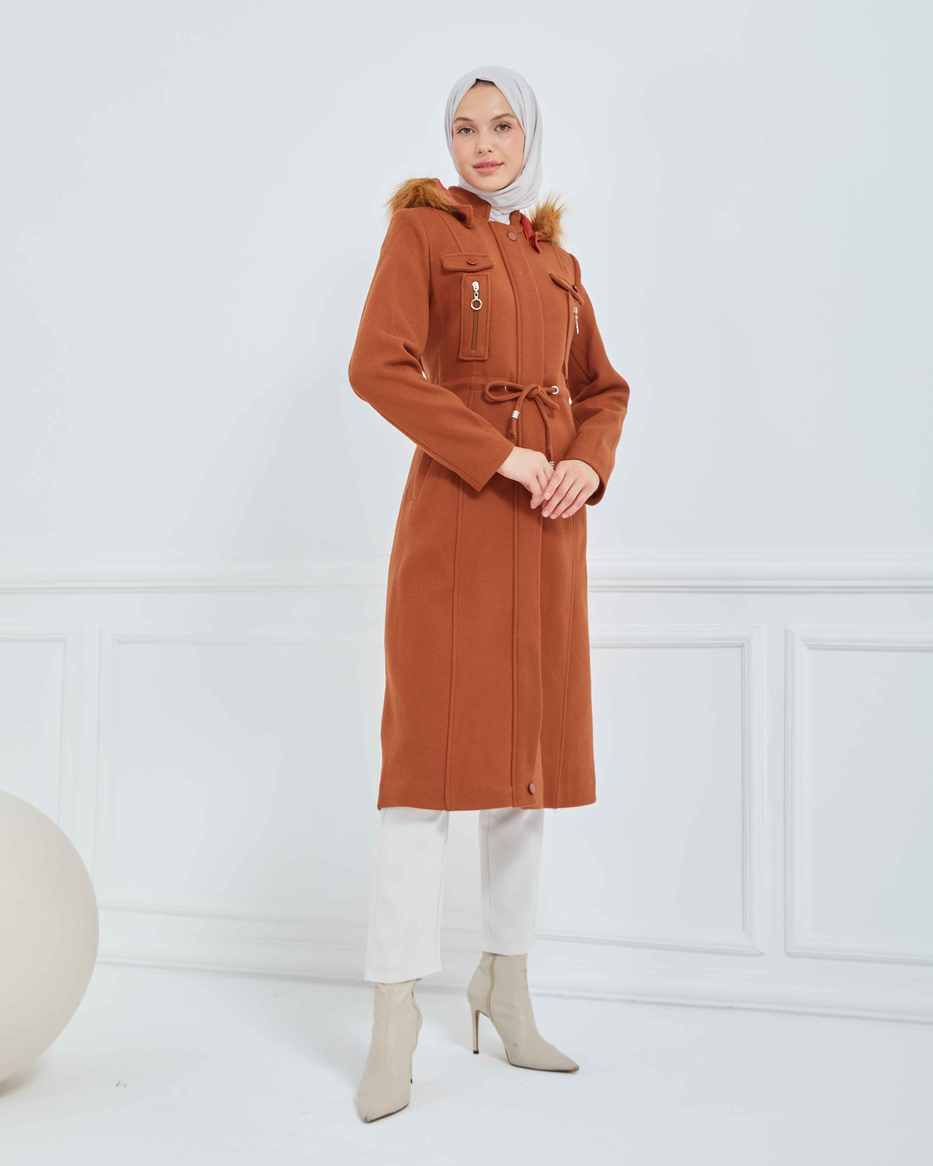 Dizaltı Kapşonlu Kaşe Mont Taba | 17001K37