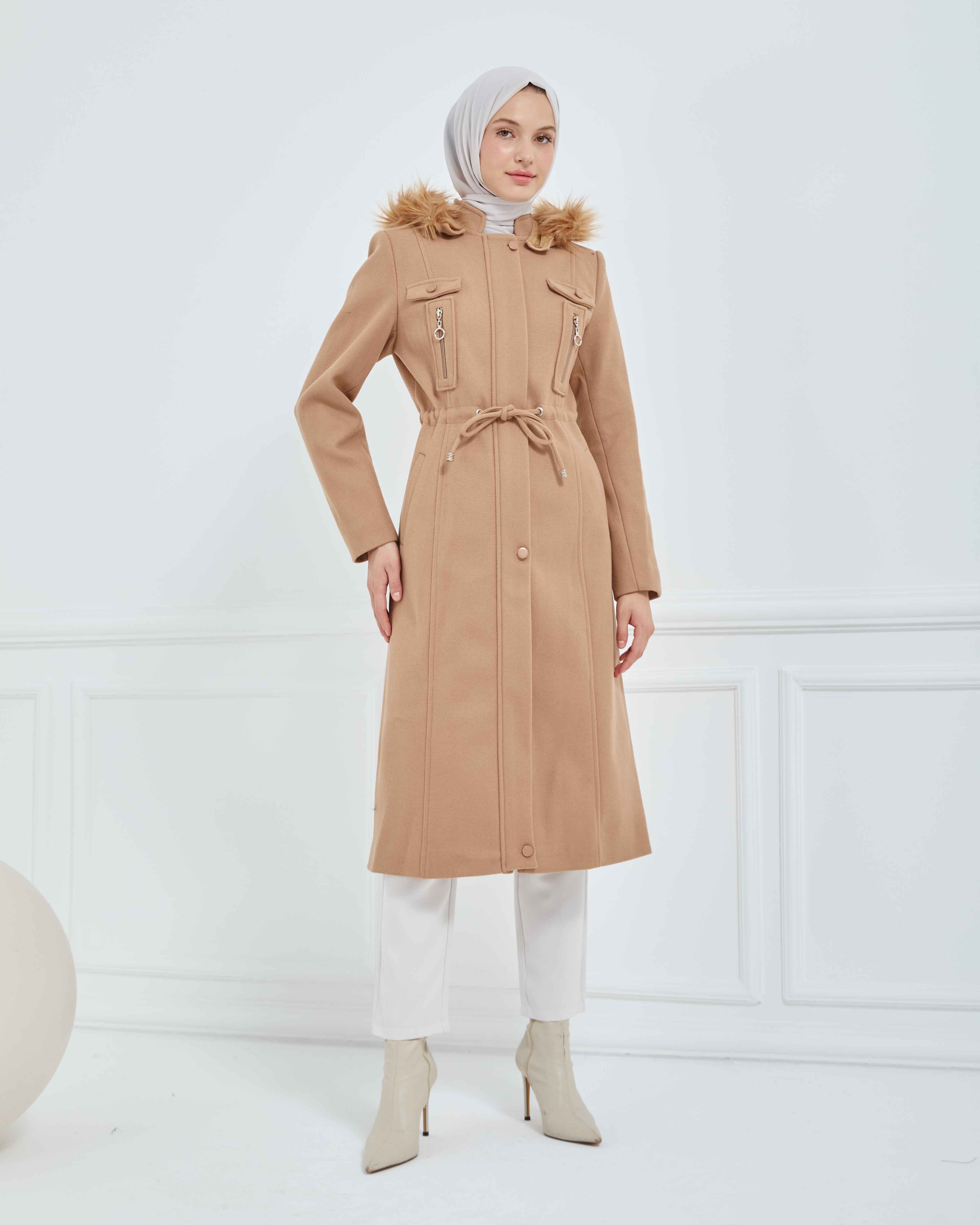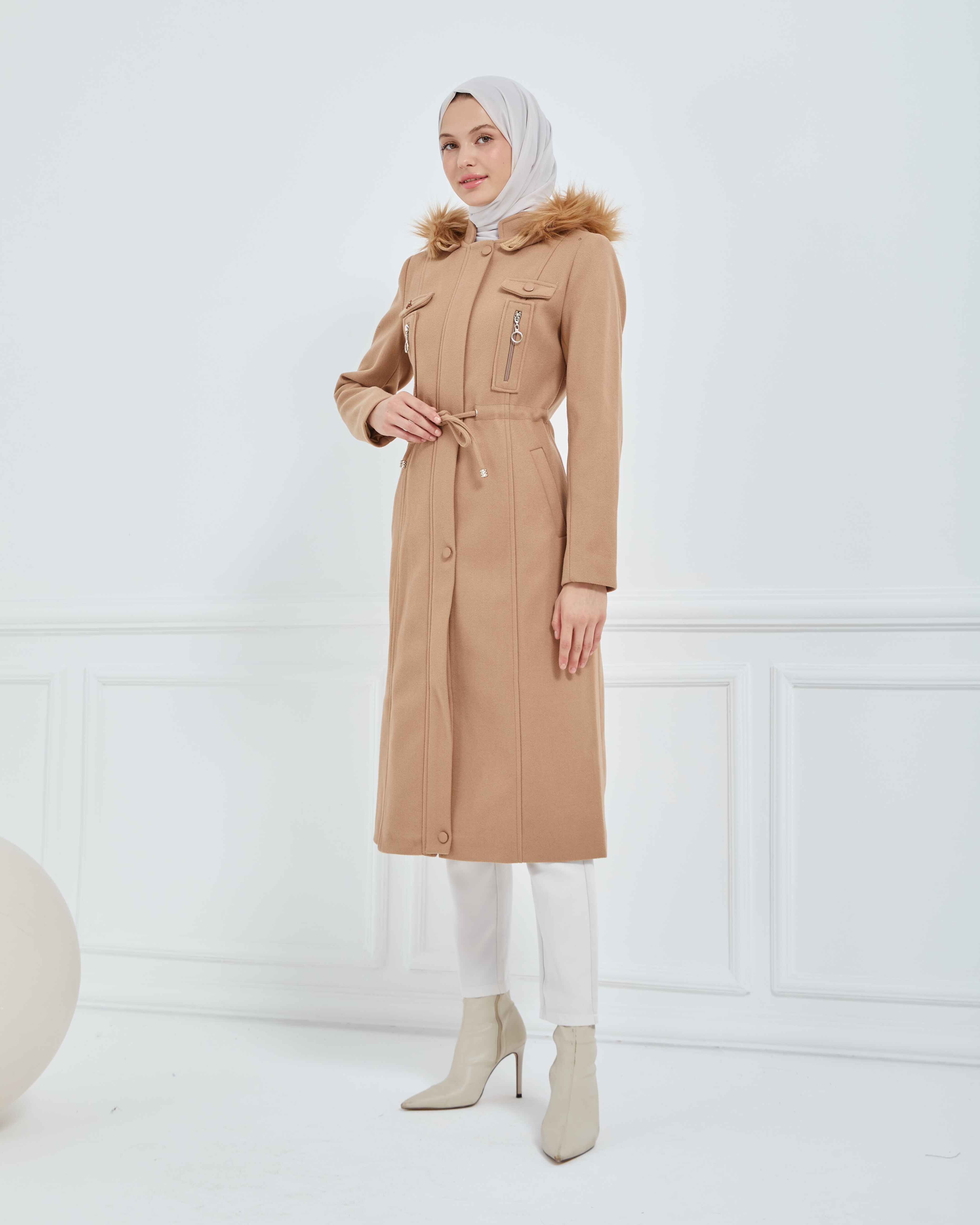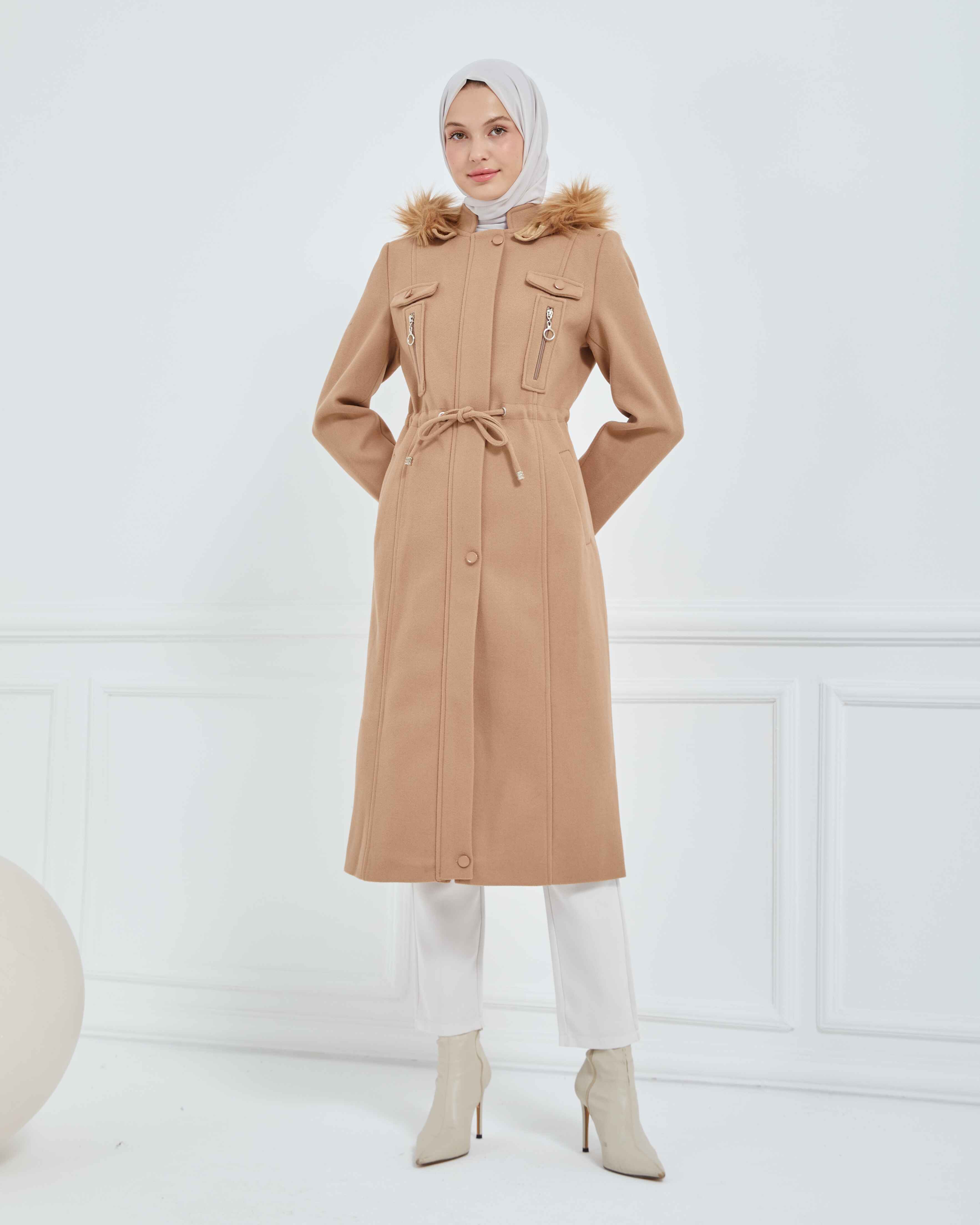 Dizaltı Kapşonlu Kaşe Mont Vizon | 17001K23