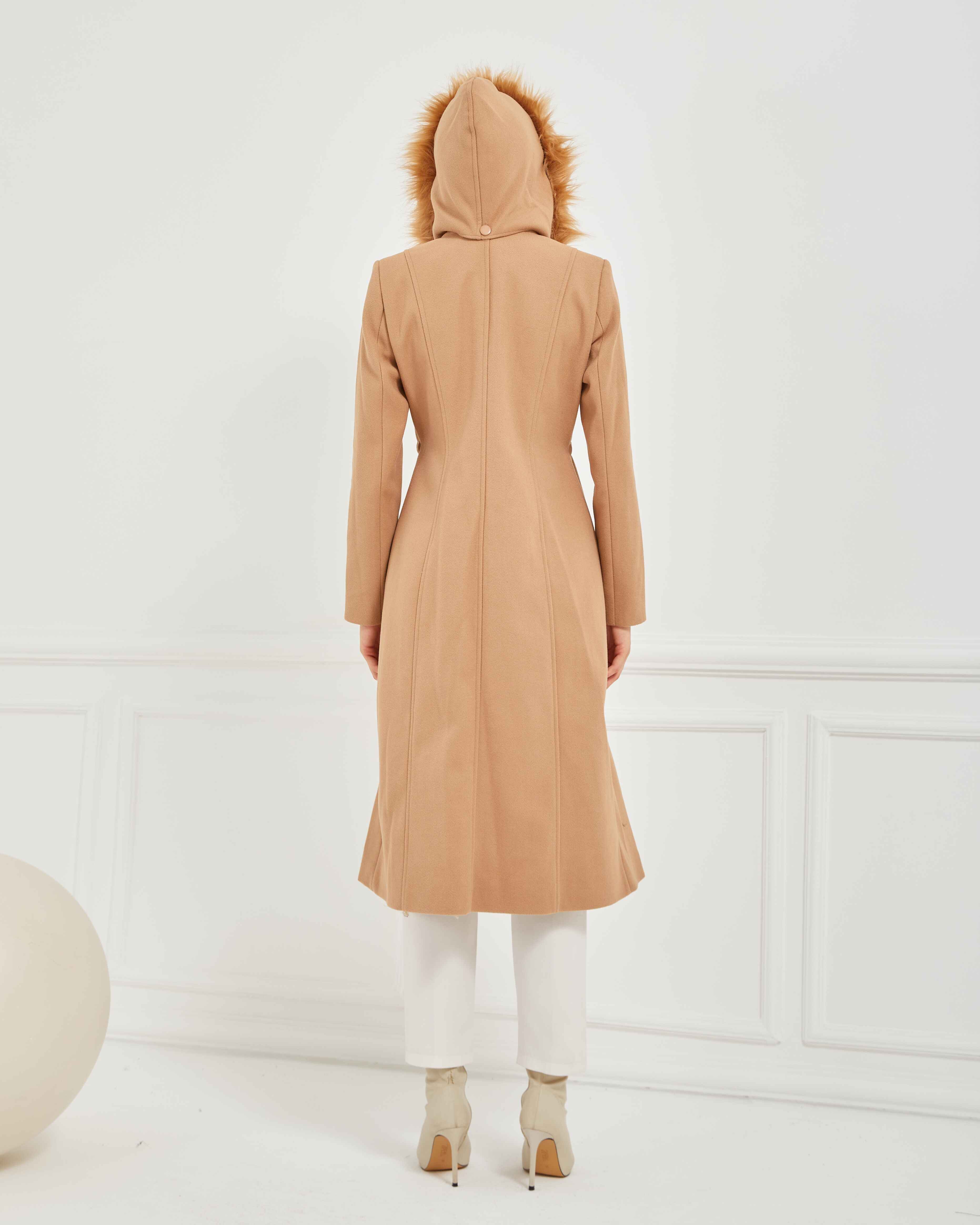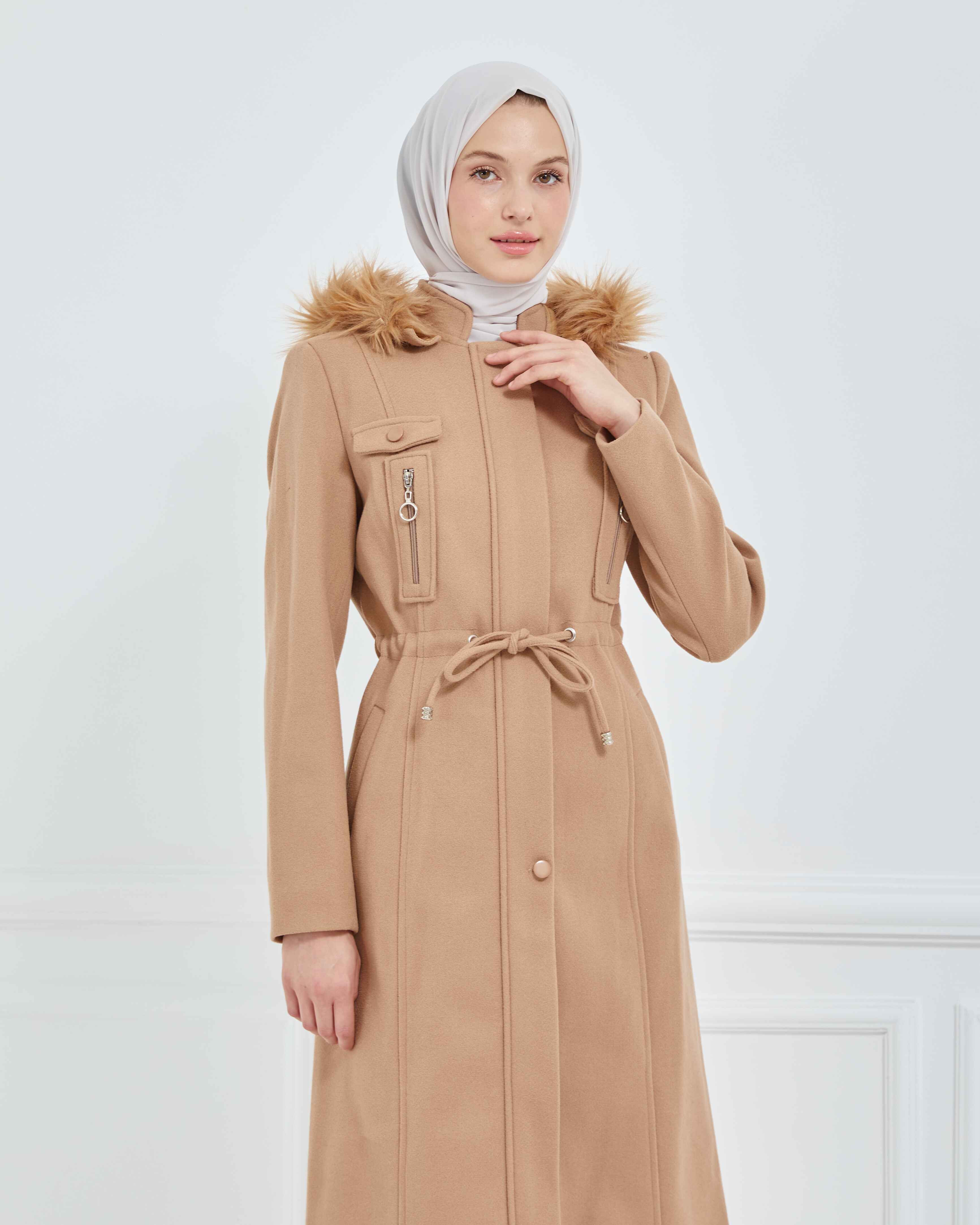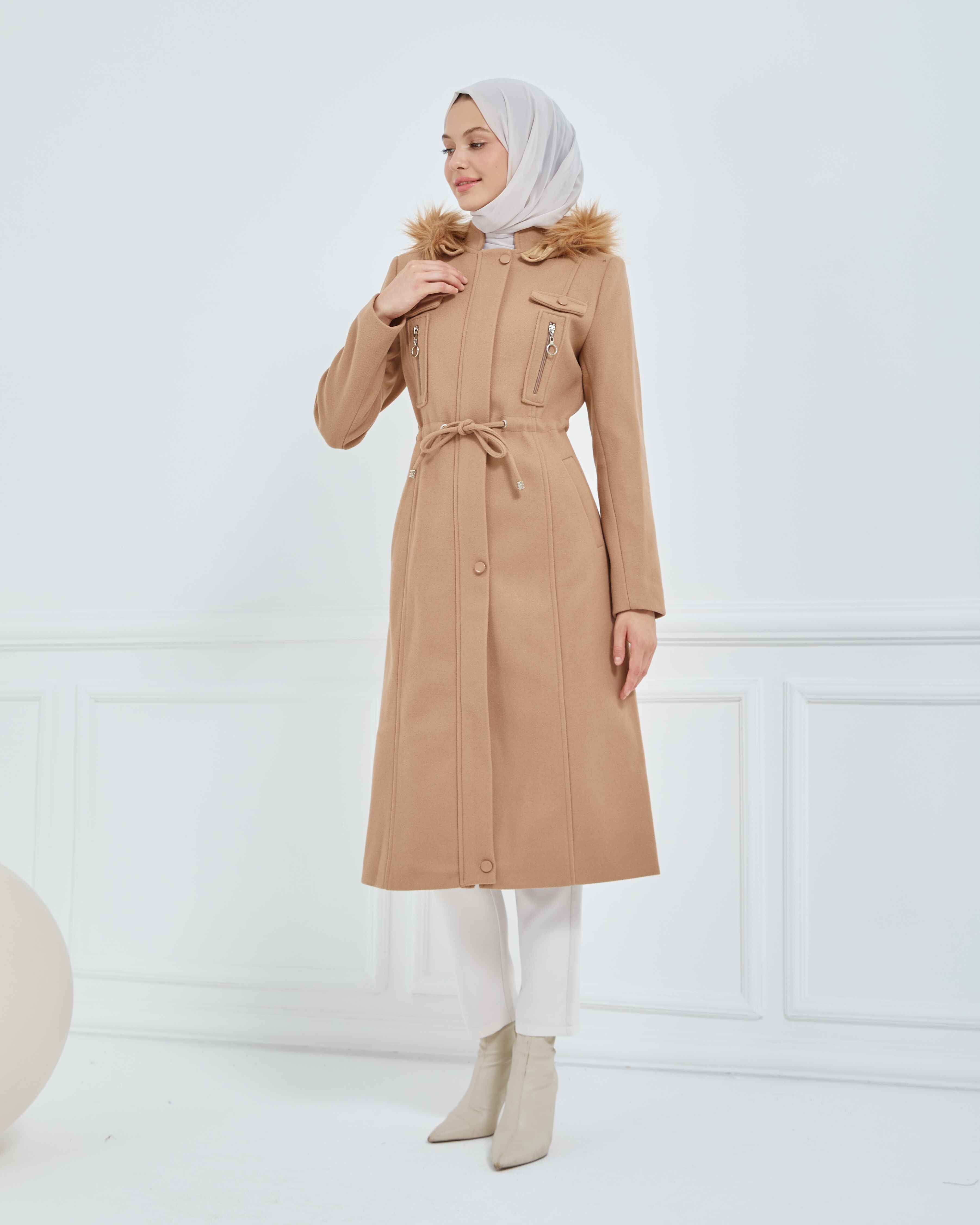 Dizaltı Kapşonlu Kaşe Mont Vizon | 17001K23