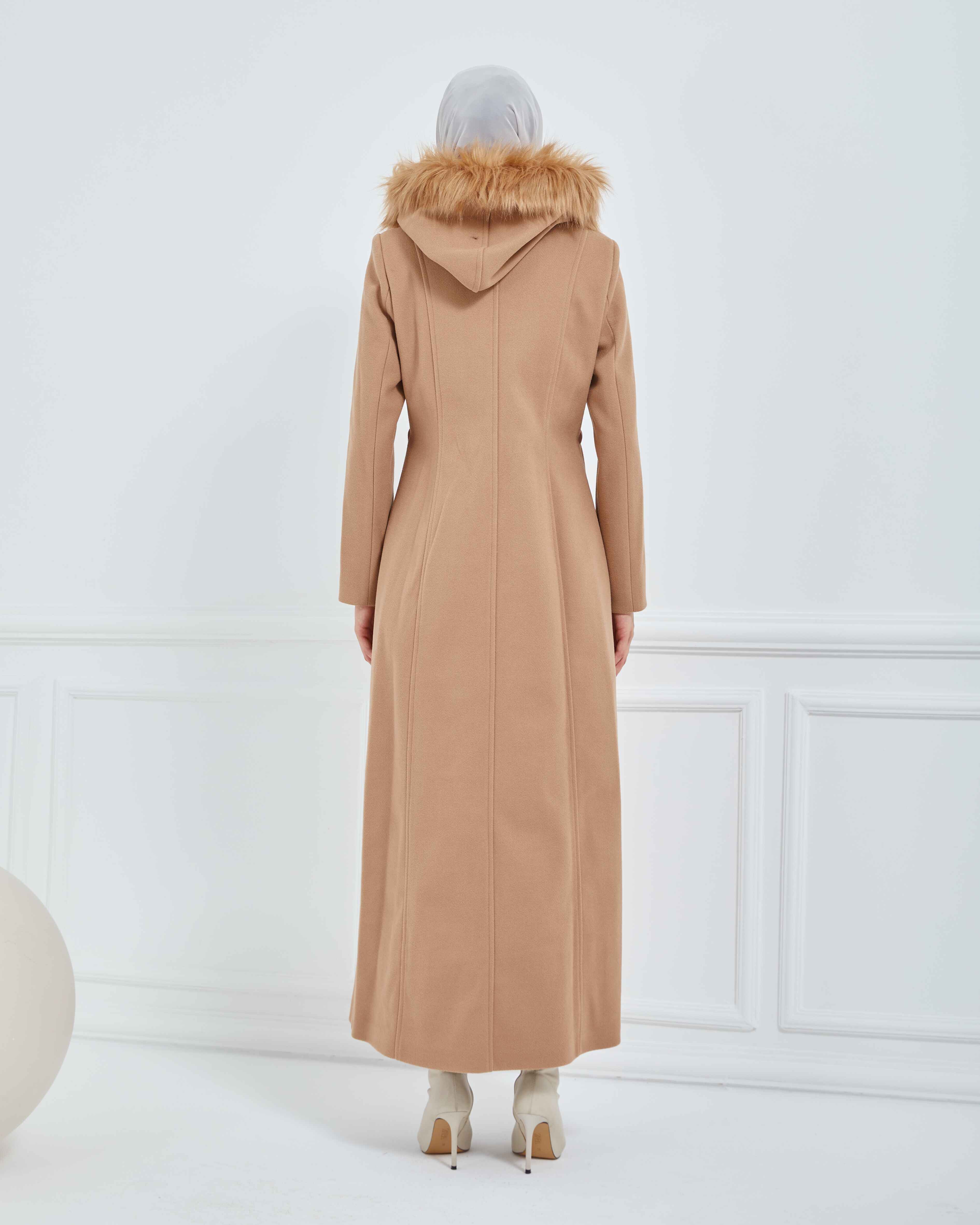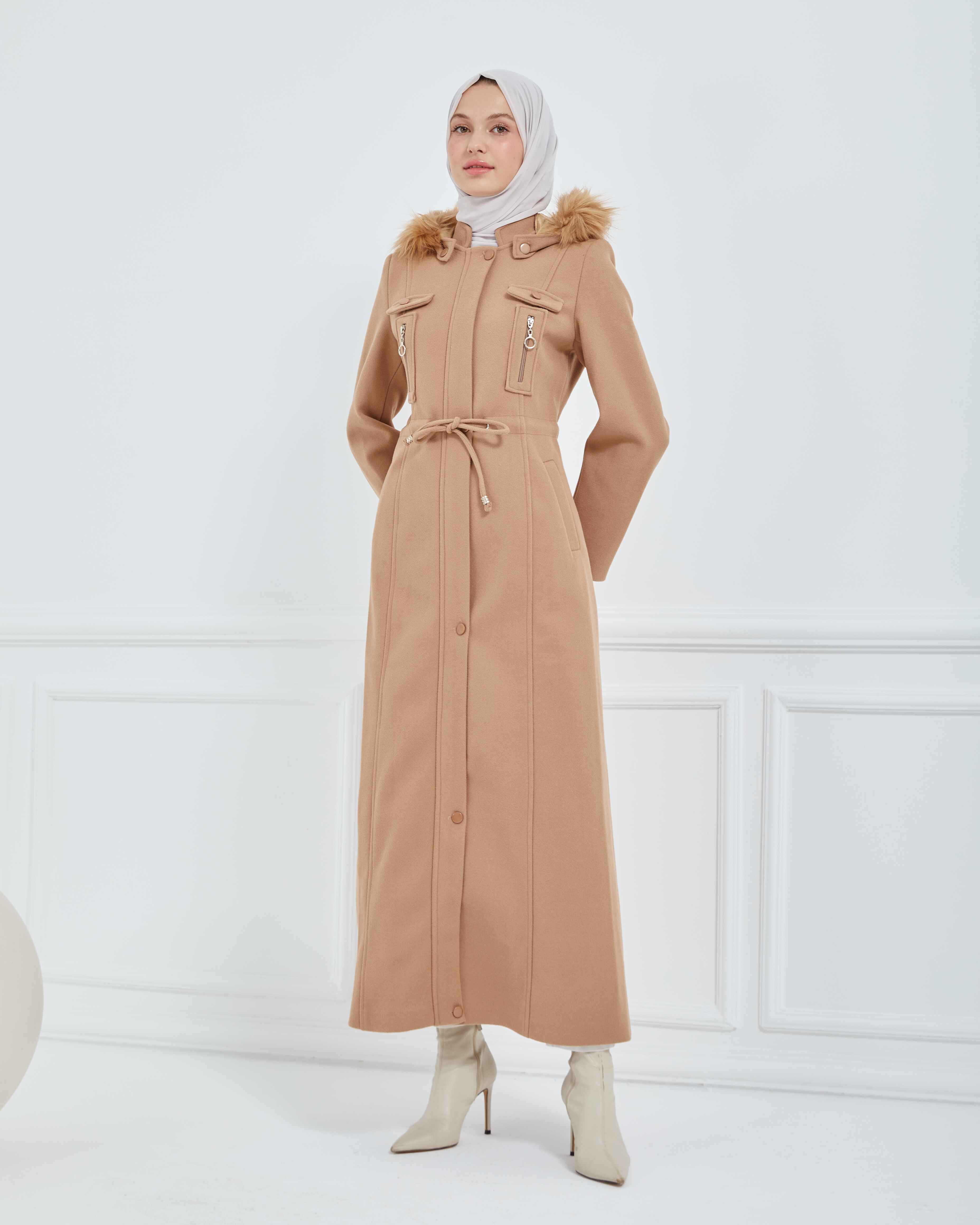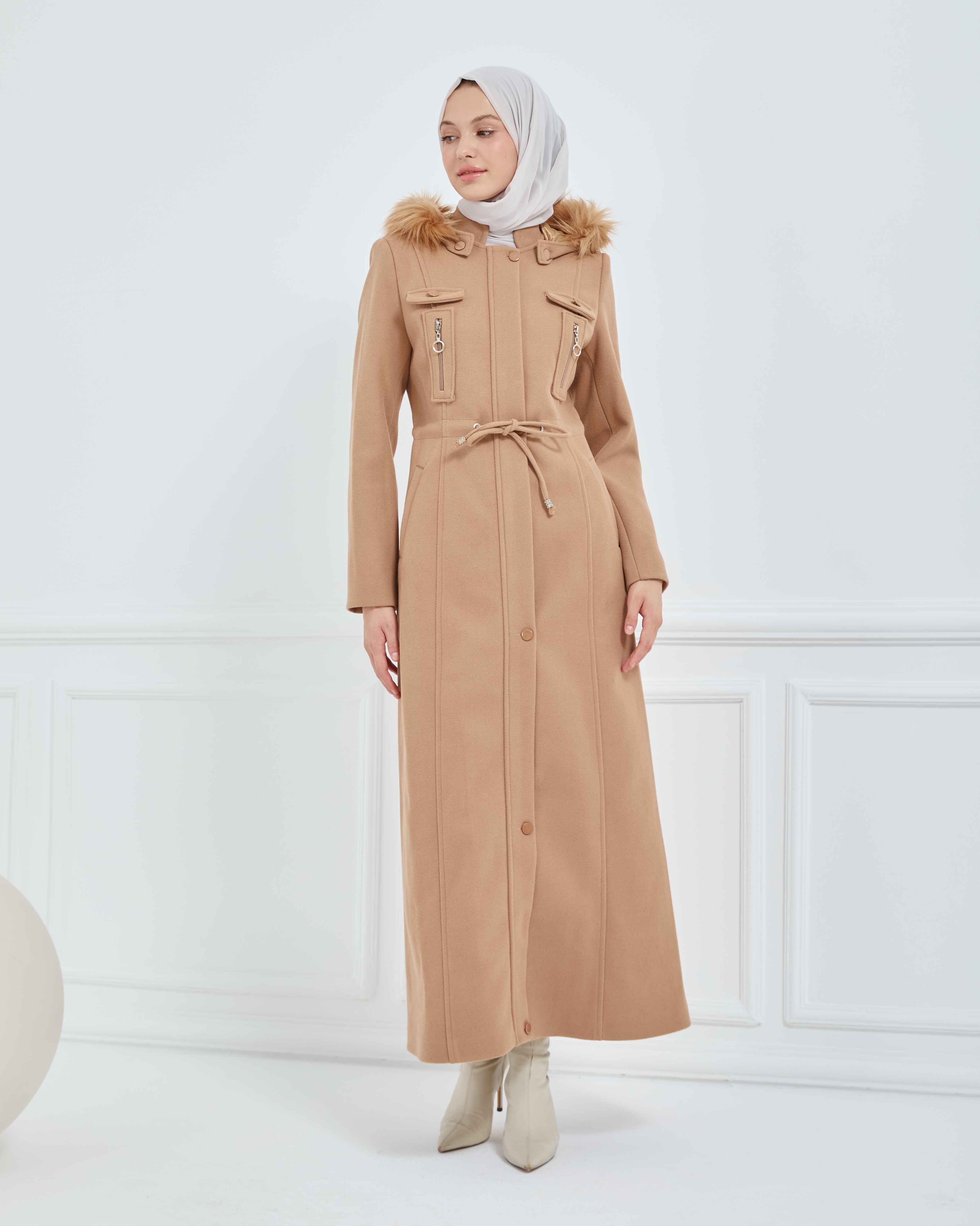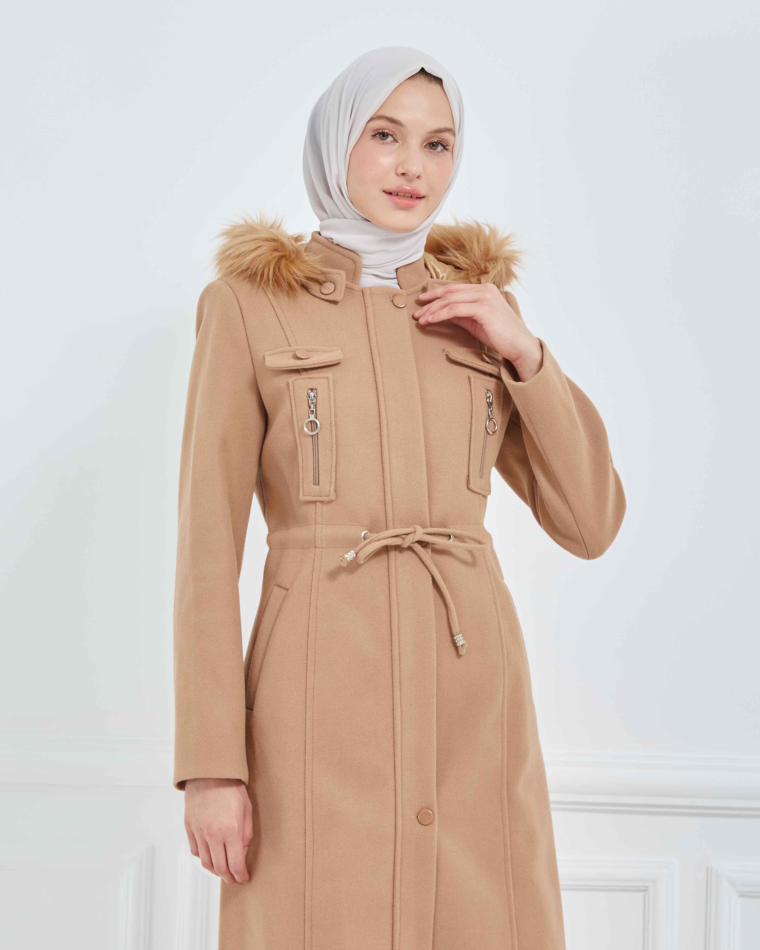 Kapşonlu Kaşe Mont Vizon | 1700123