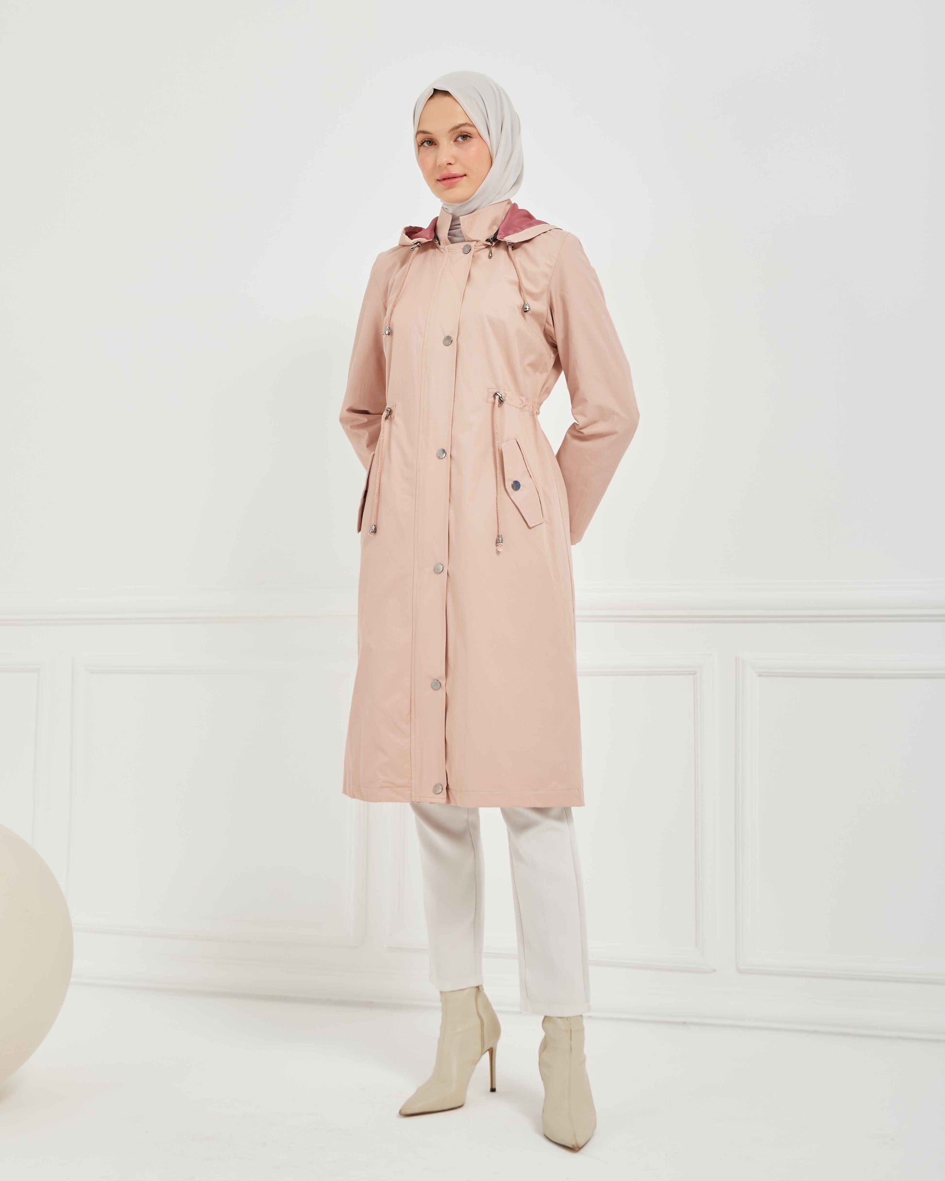 Kapşonlu Trençkot Pembe | 160053