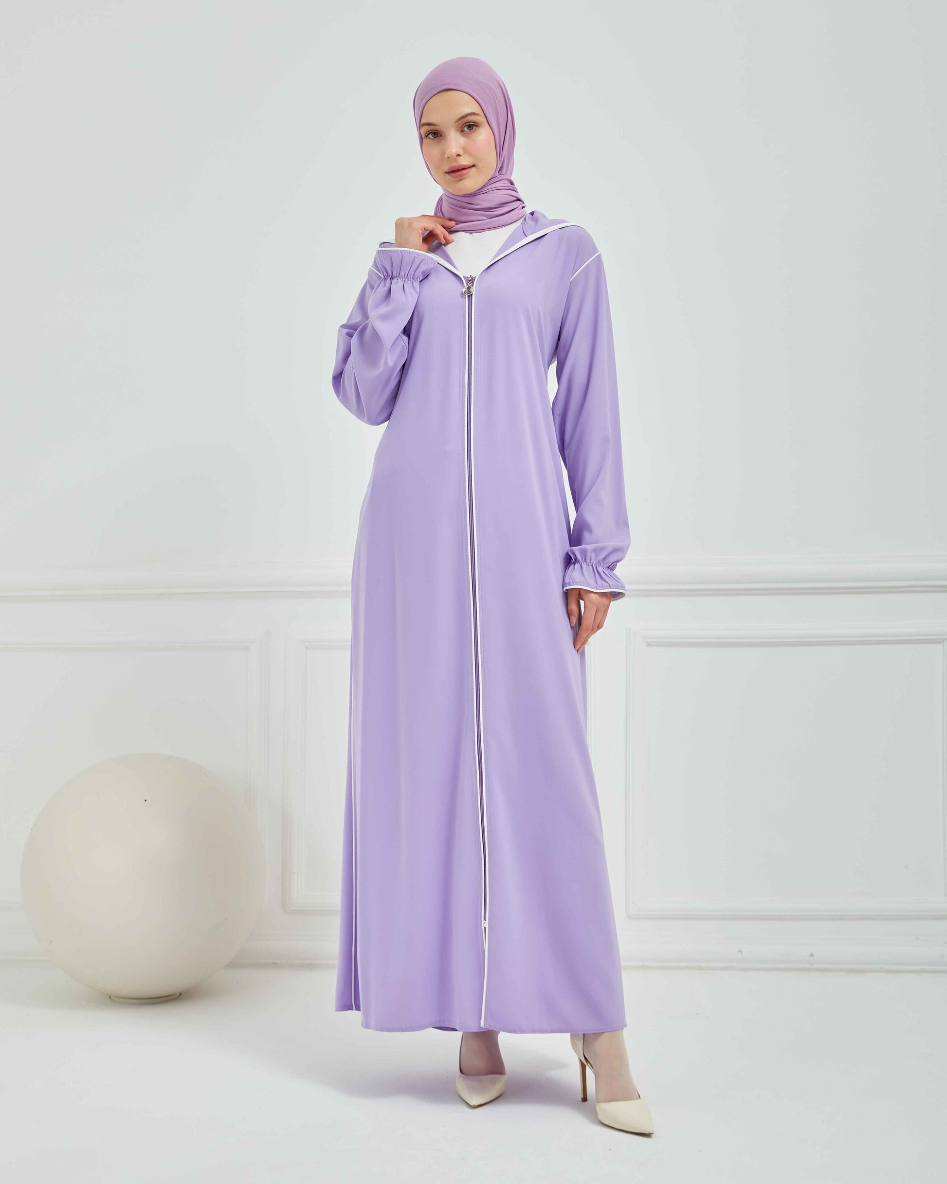 Kapşonlu ve Biyeli Ferace Lila | 209539