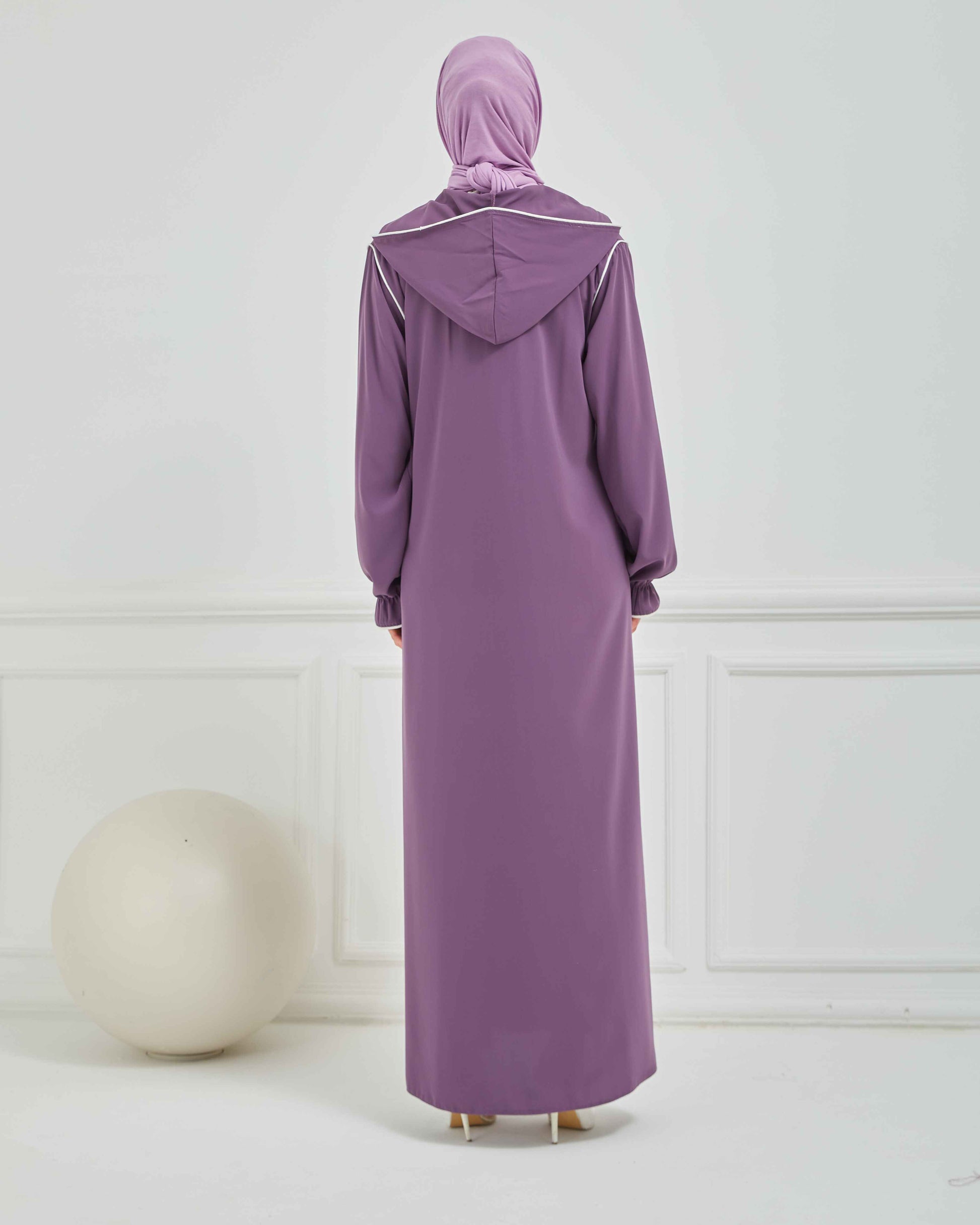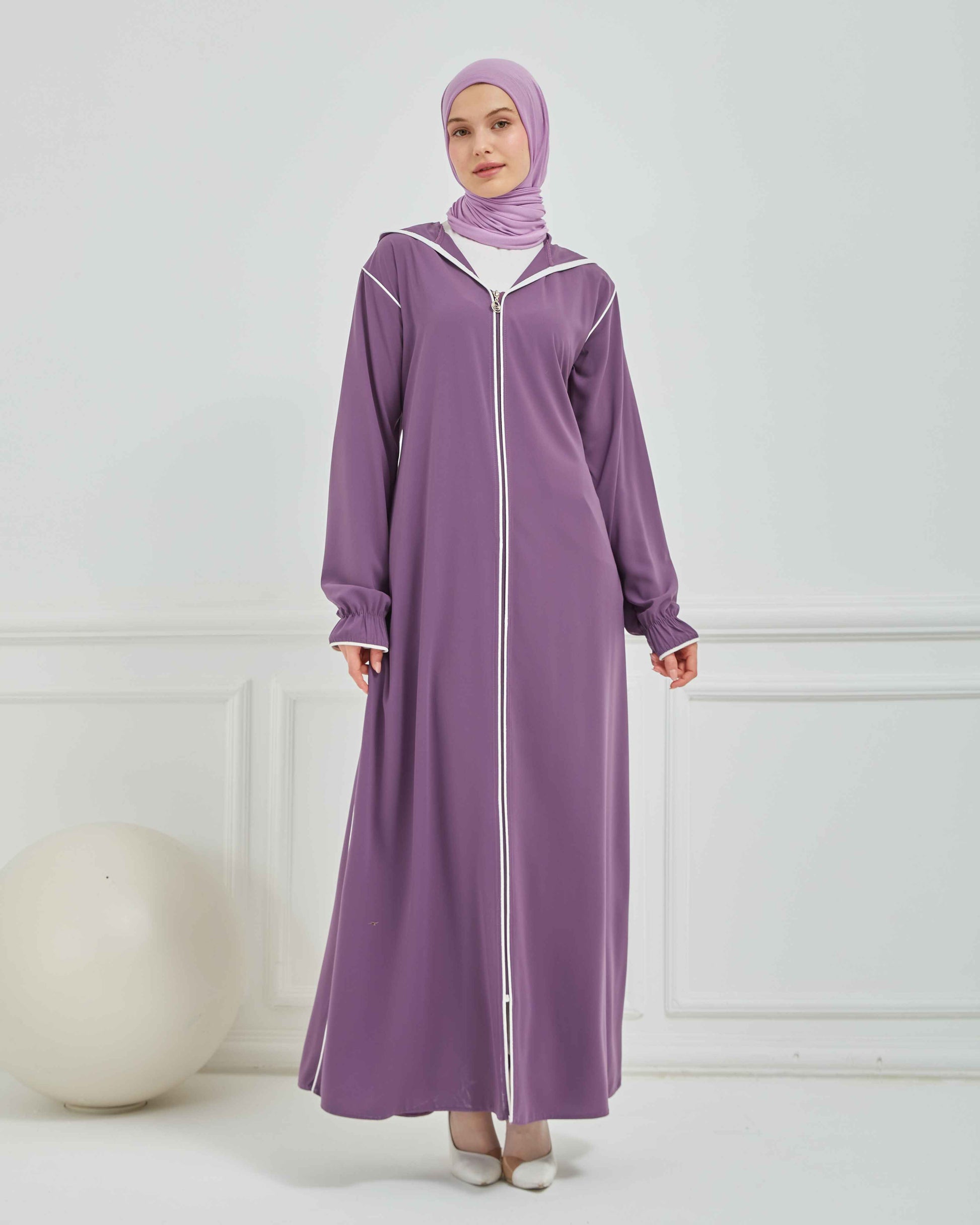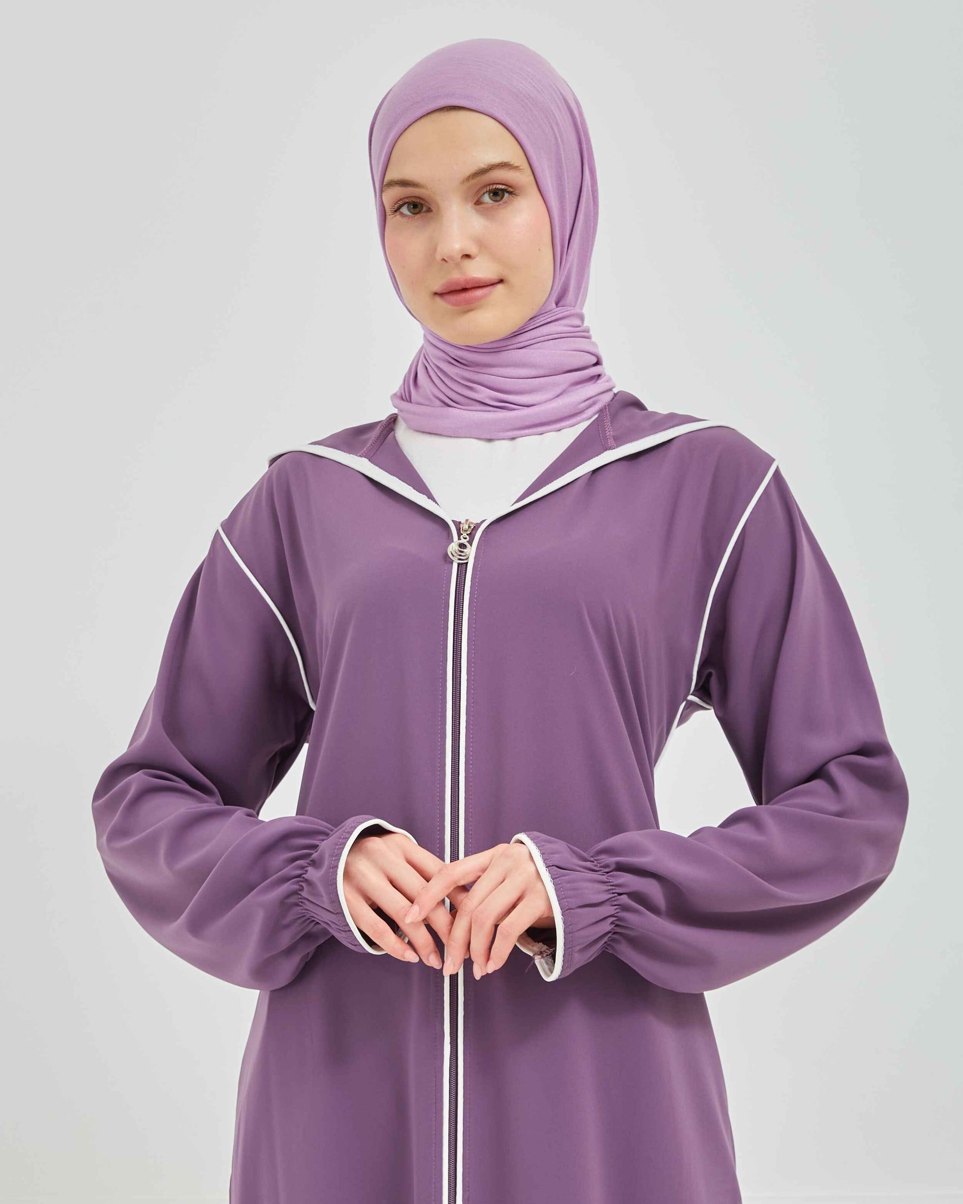 Kapşonlu ve Biyeli Ferace Mor | 209512