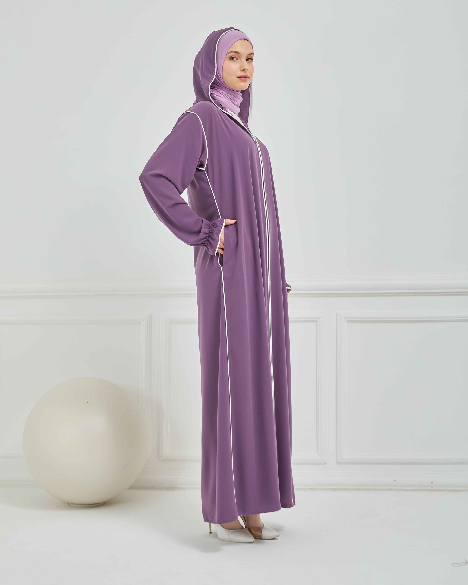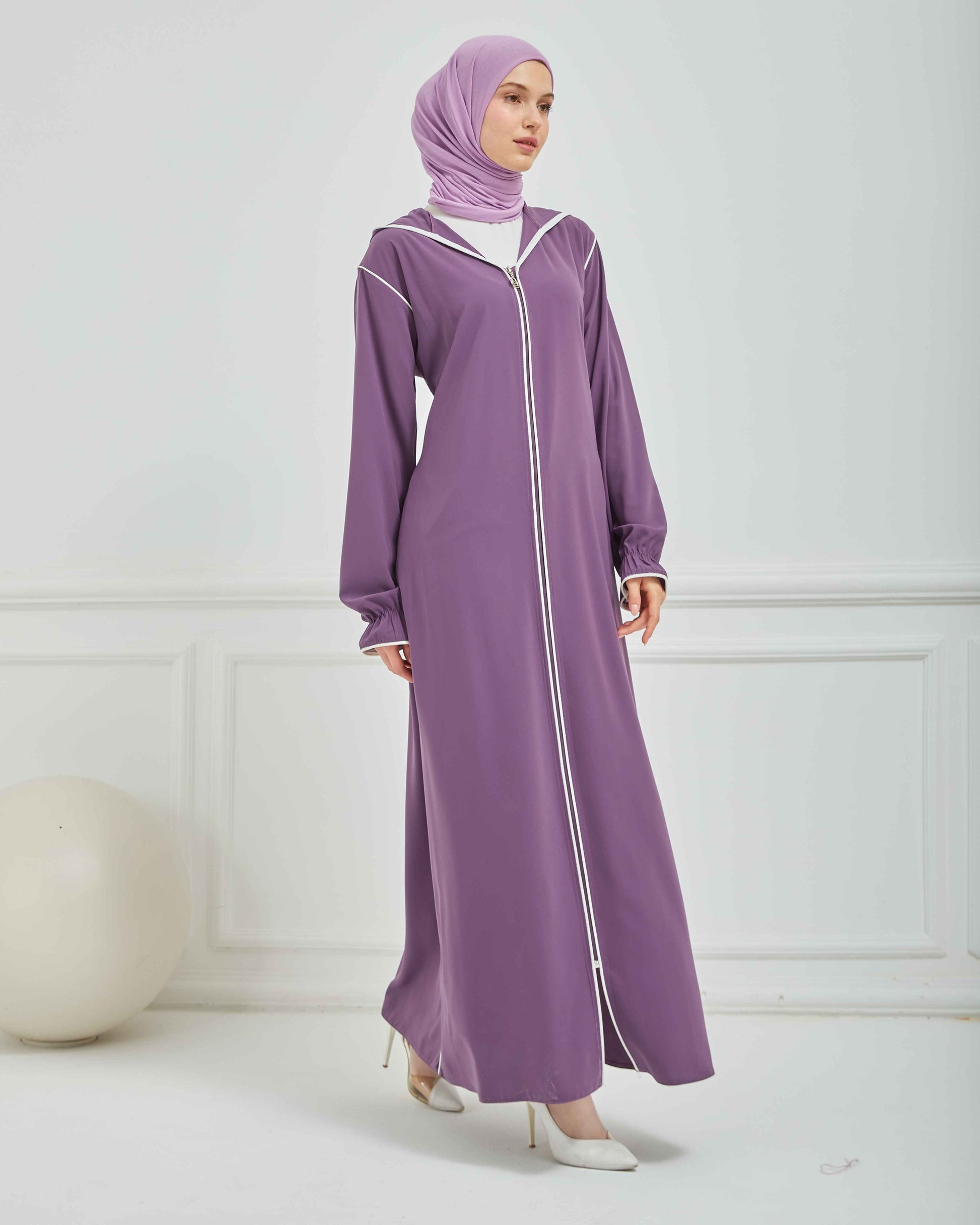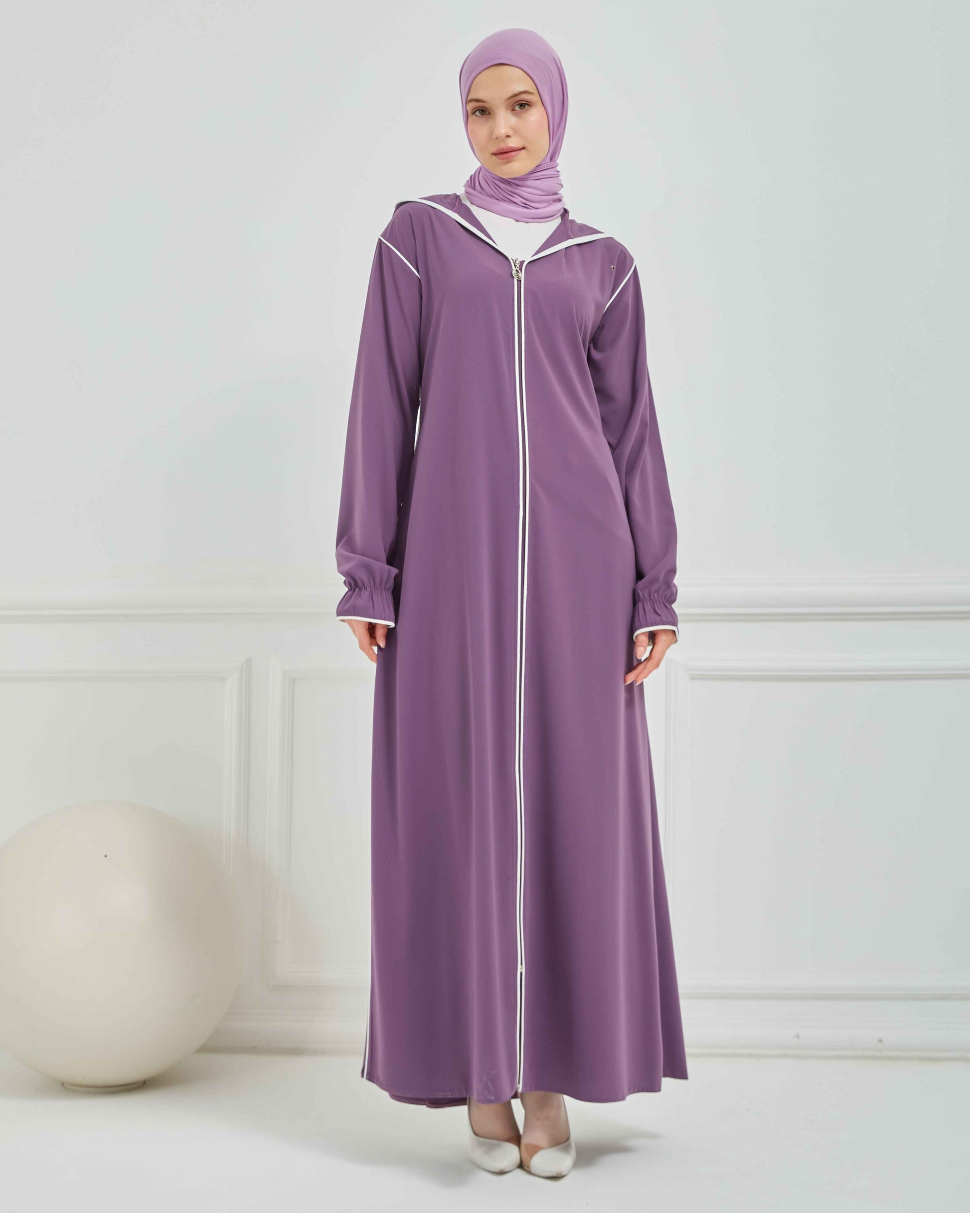 Kapşonlu ve Biyeli Ferace Mor | 209512