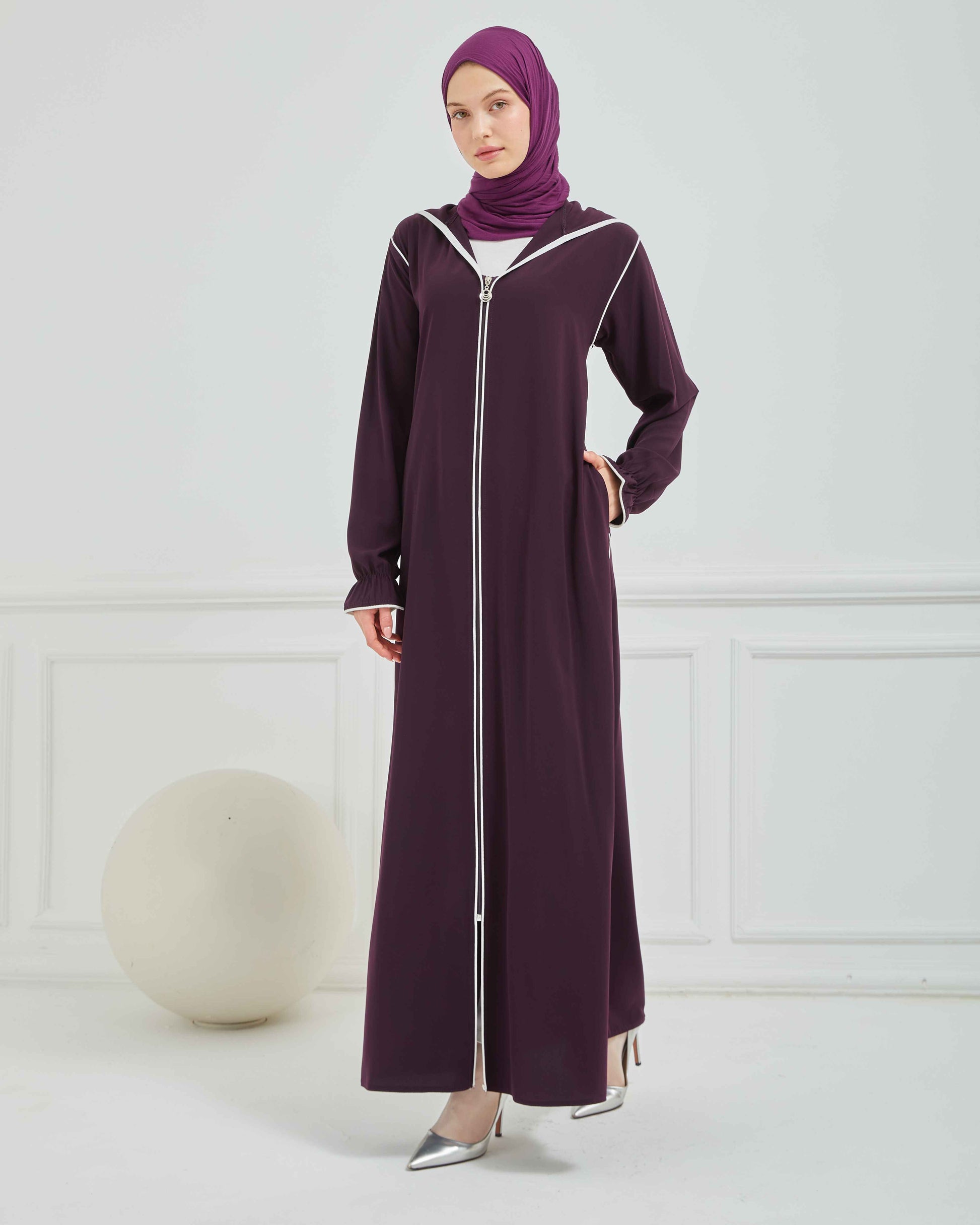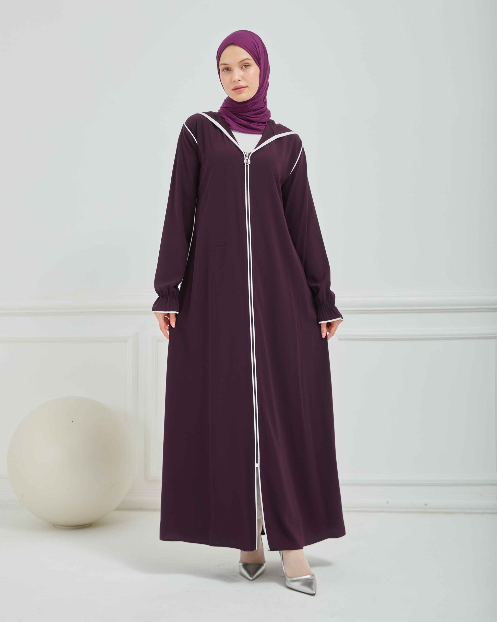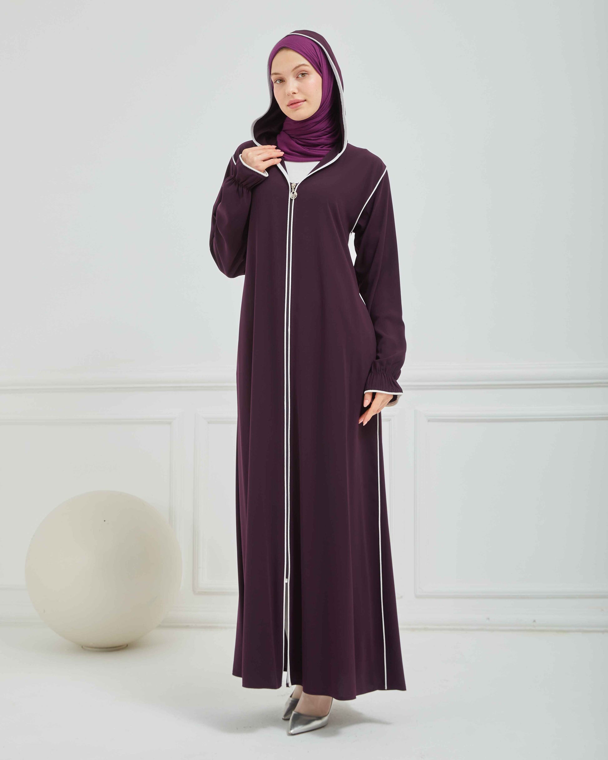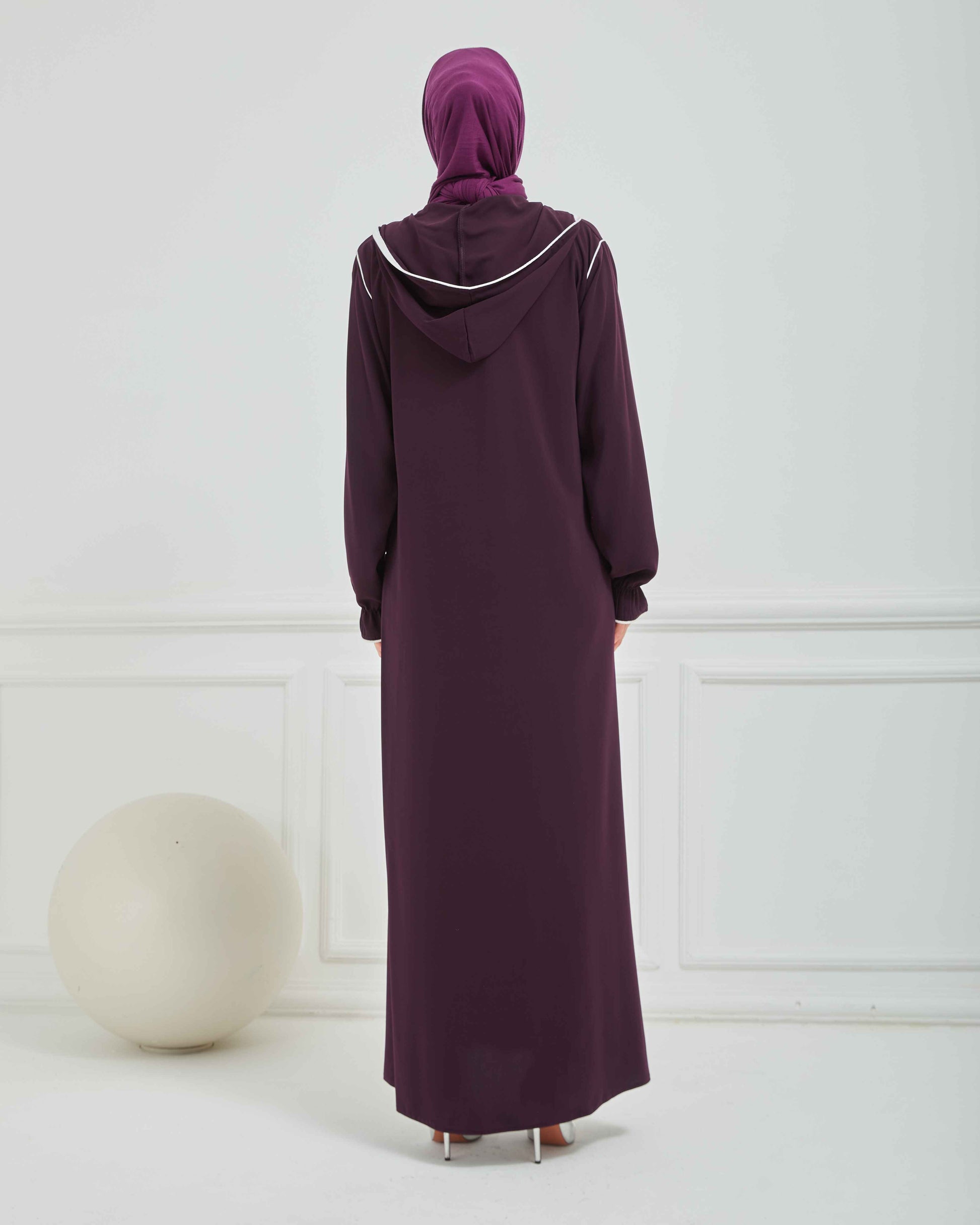 Kapşonlu ve Biyeli Ferace Mürdüm | 20958
