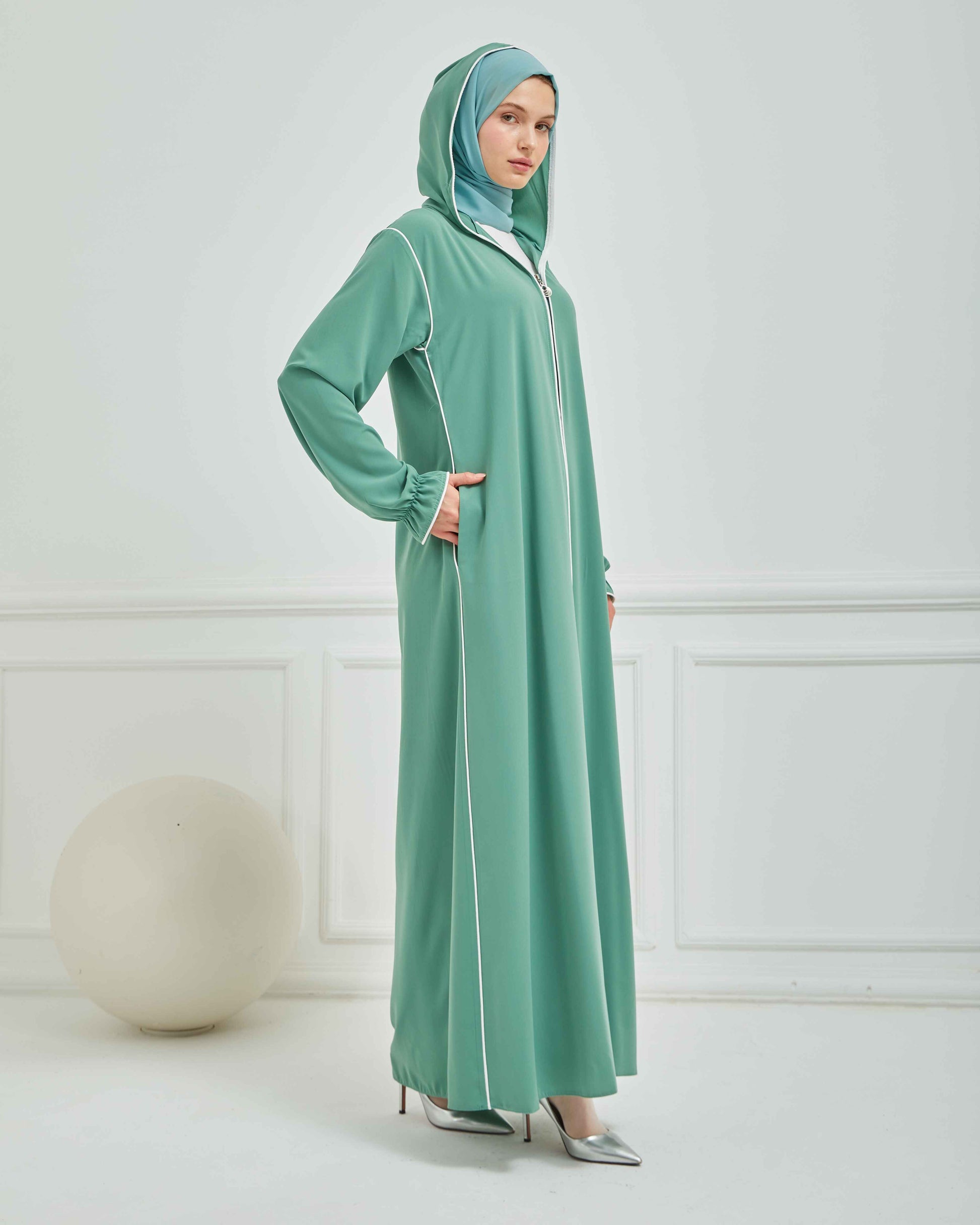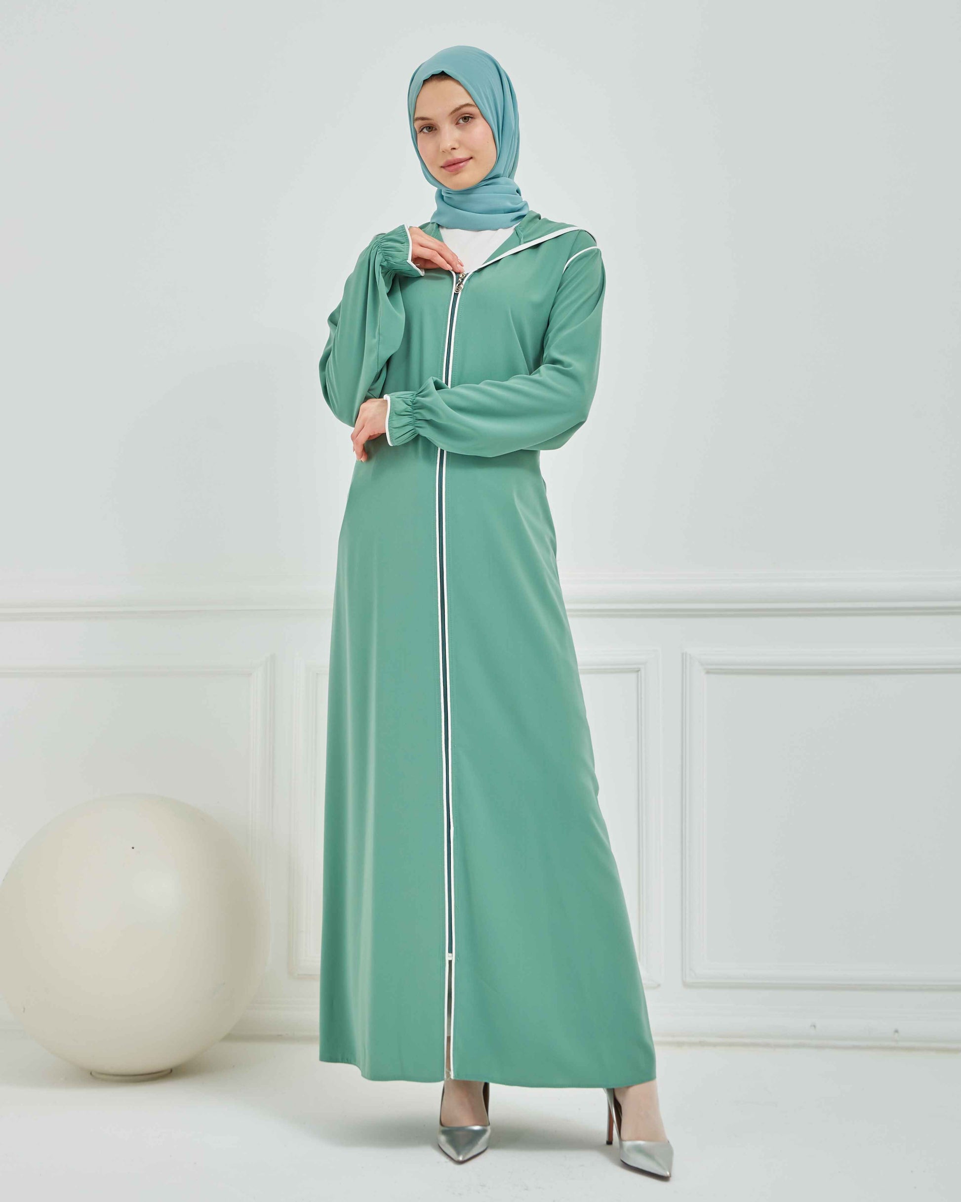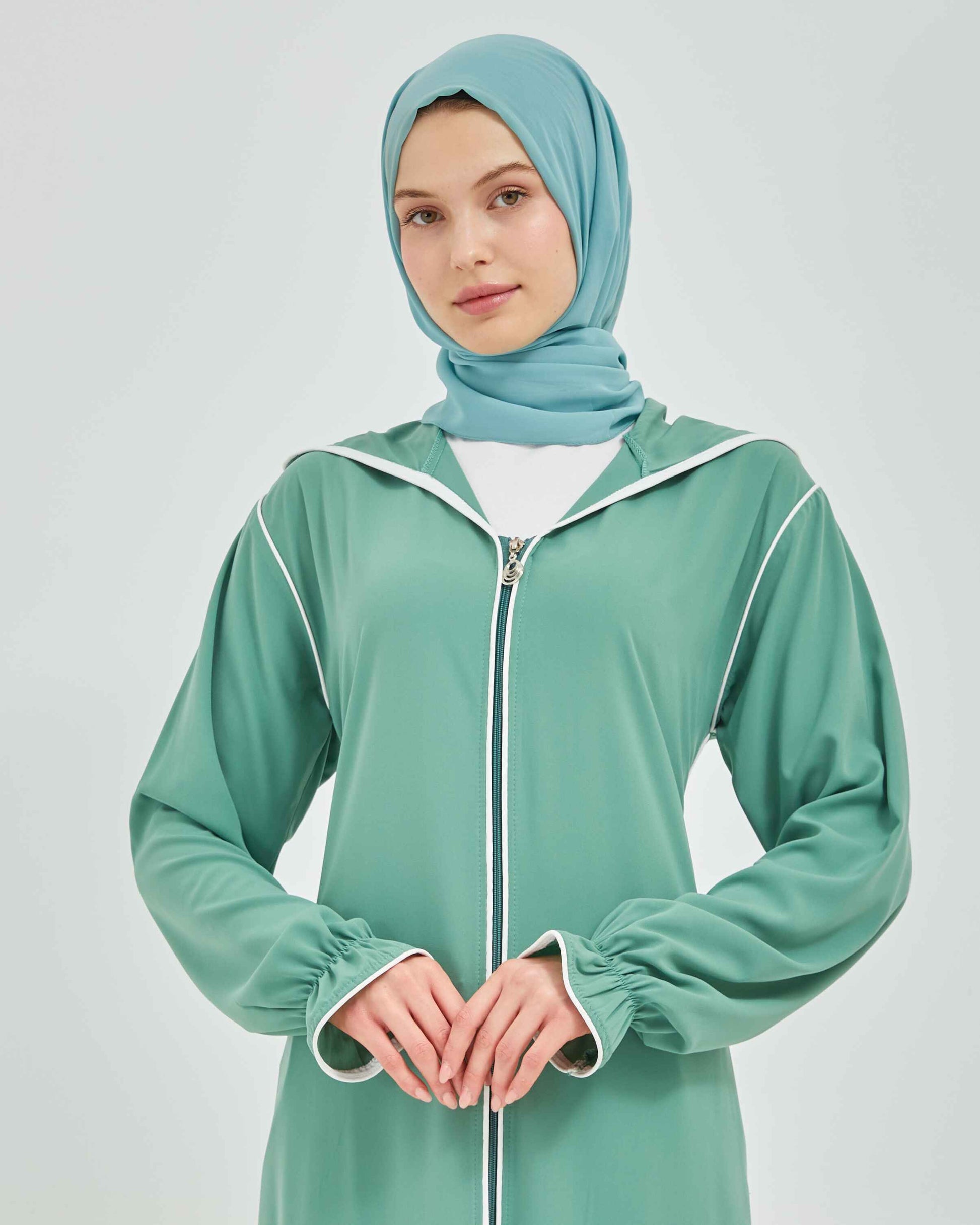Kapşonlu ve Biyeli Ferace Su Yeşili | 209515