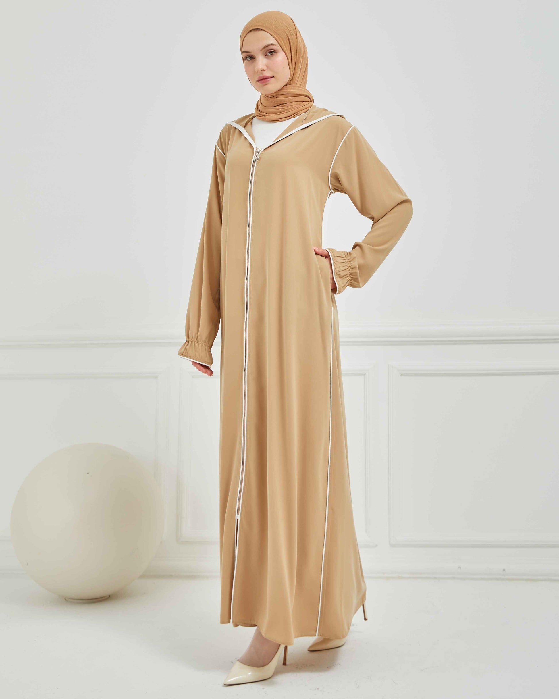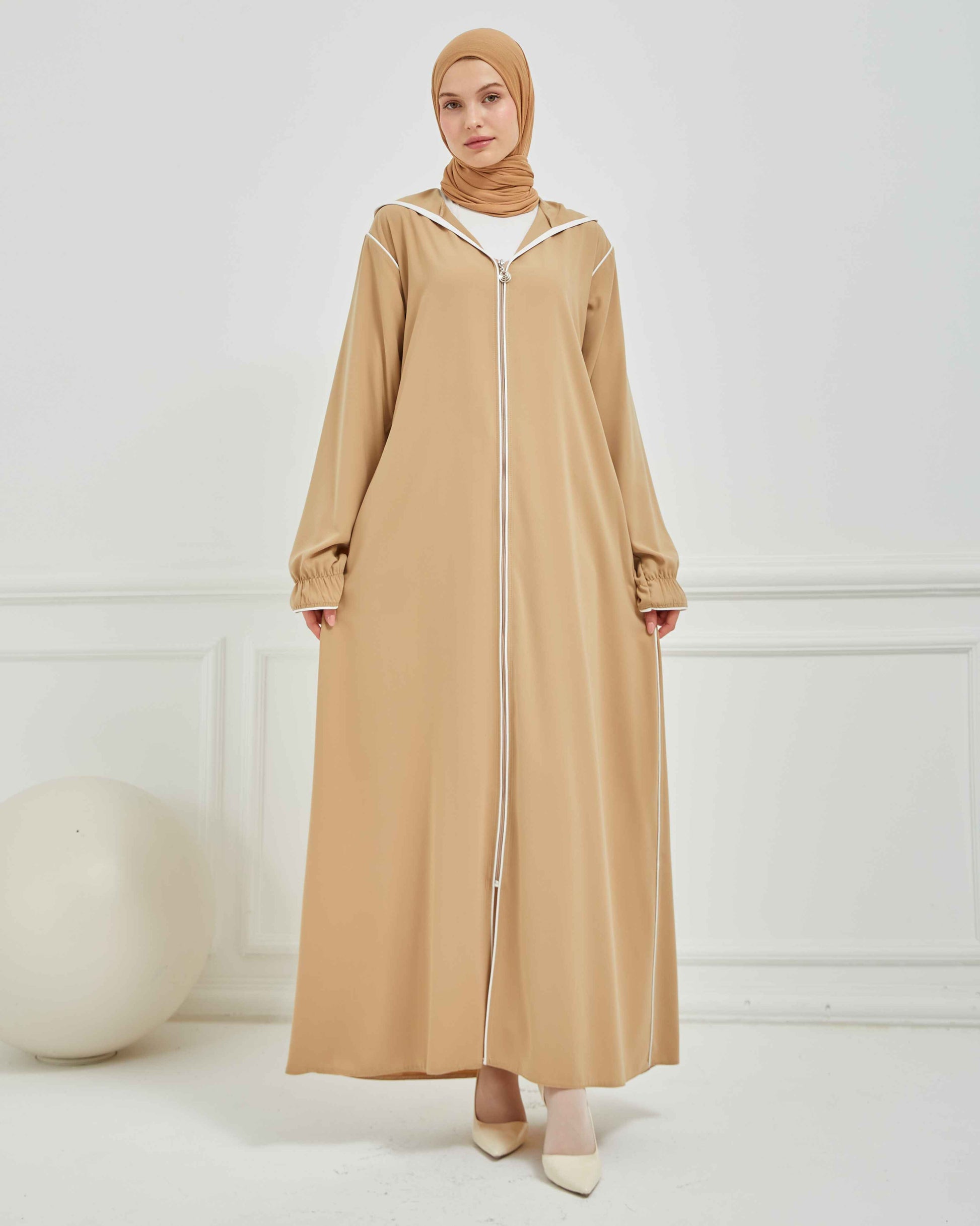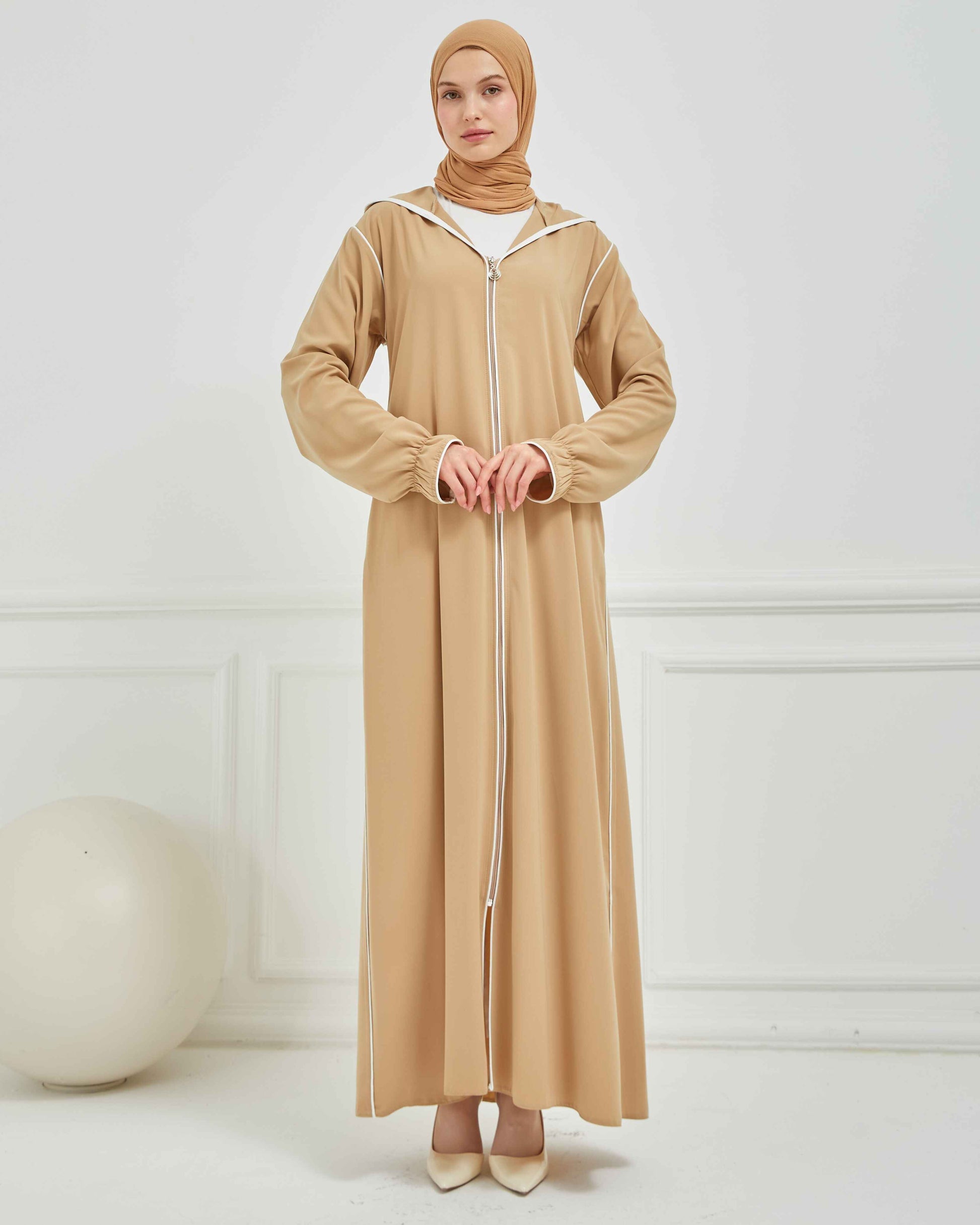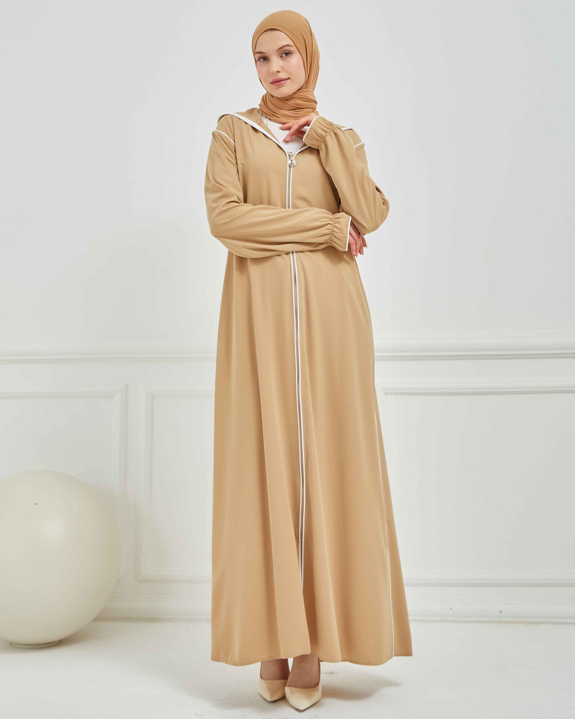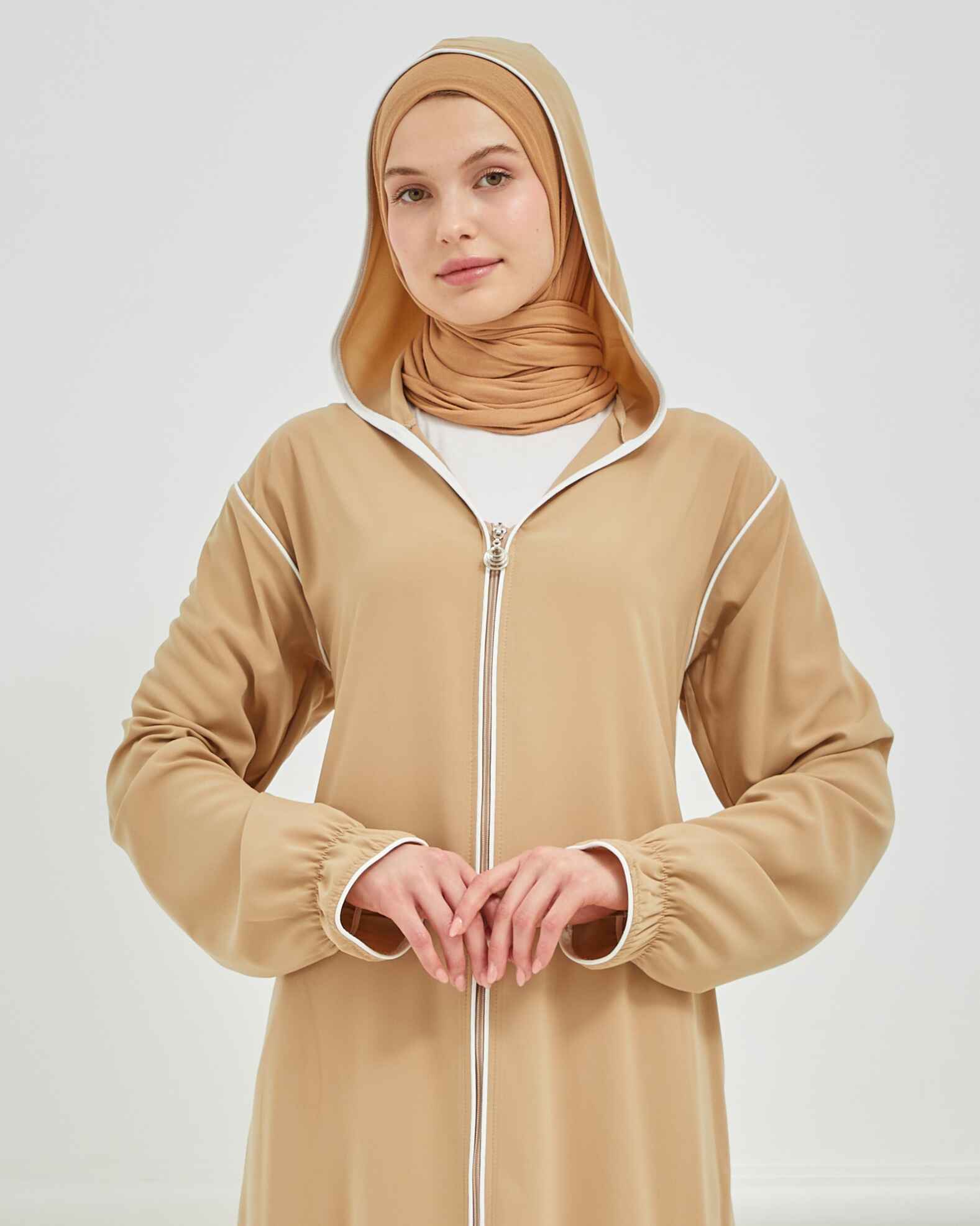 Kapşonlu ve Biyeli Ferace Vizon | 209523