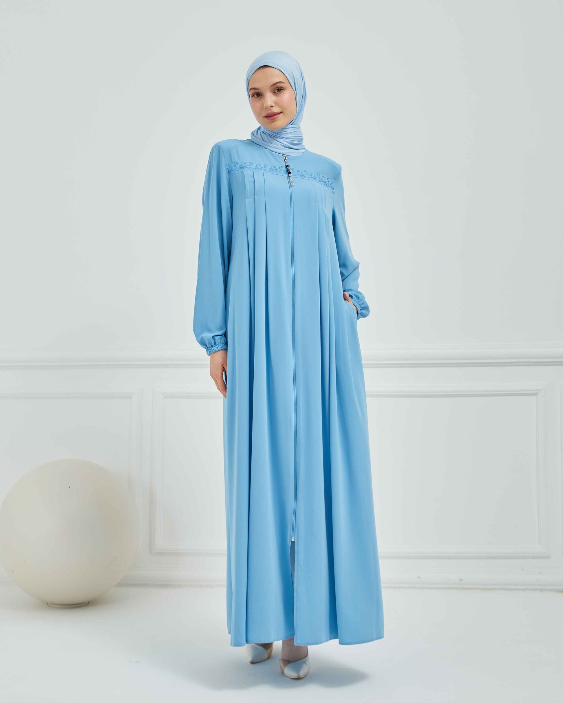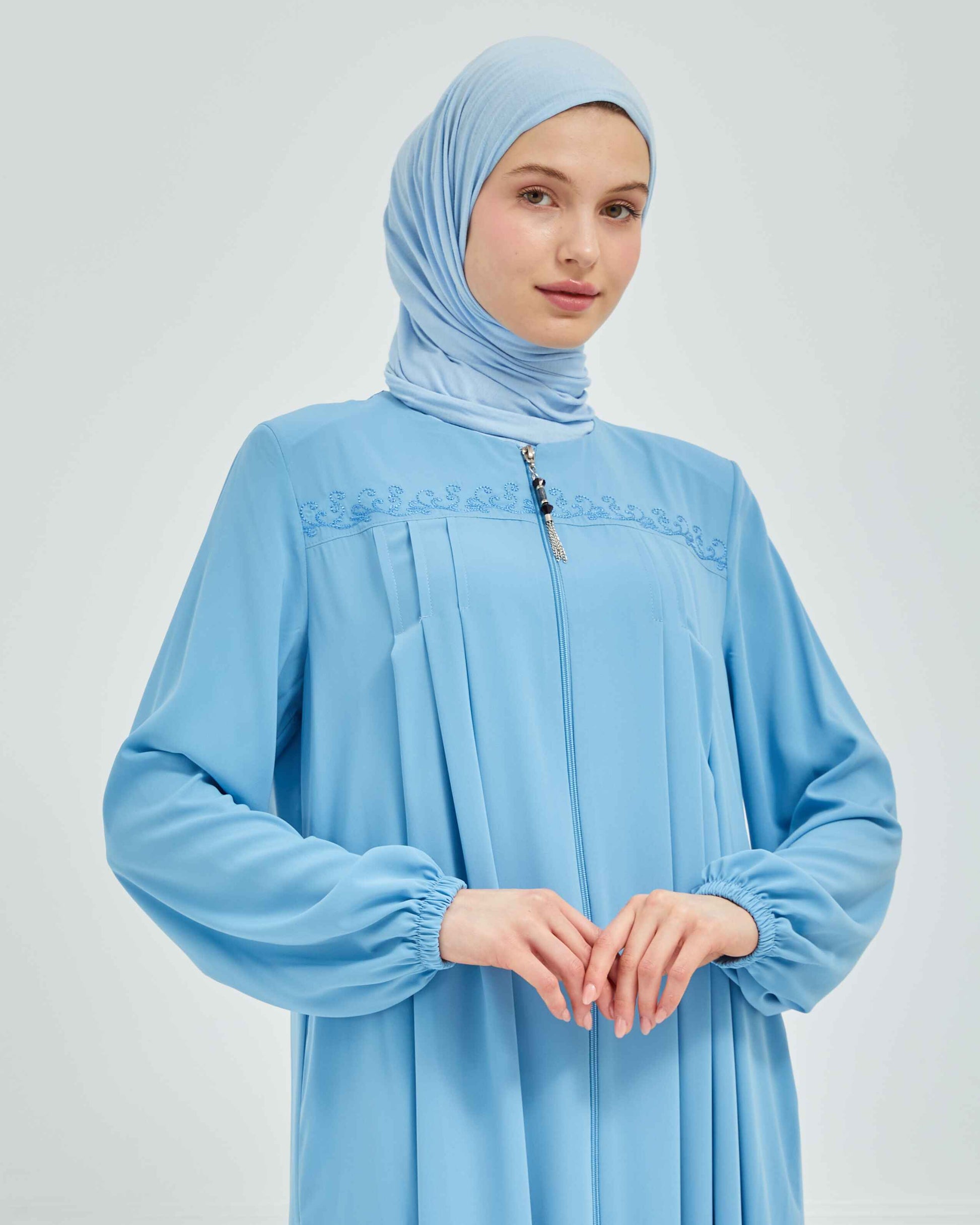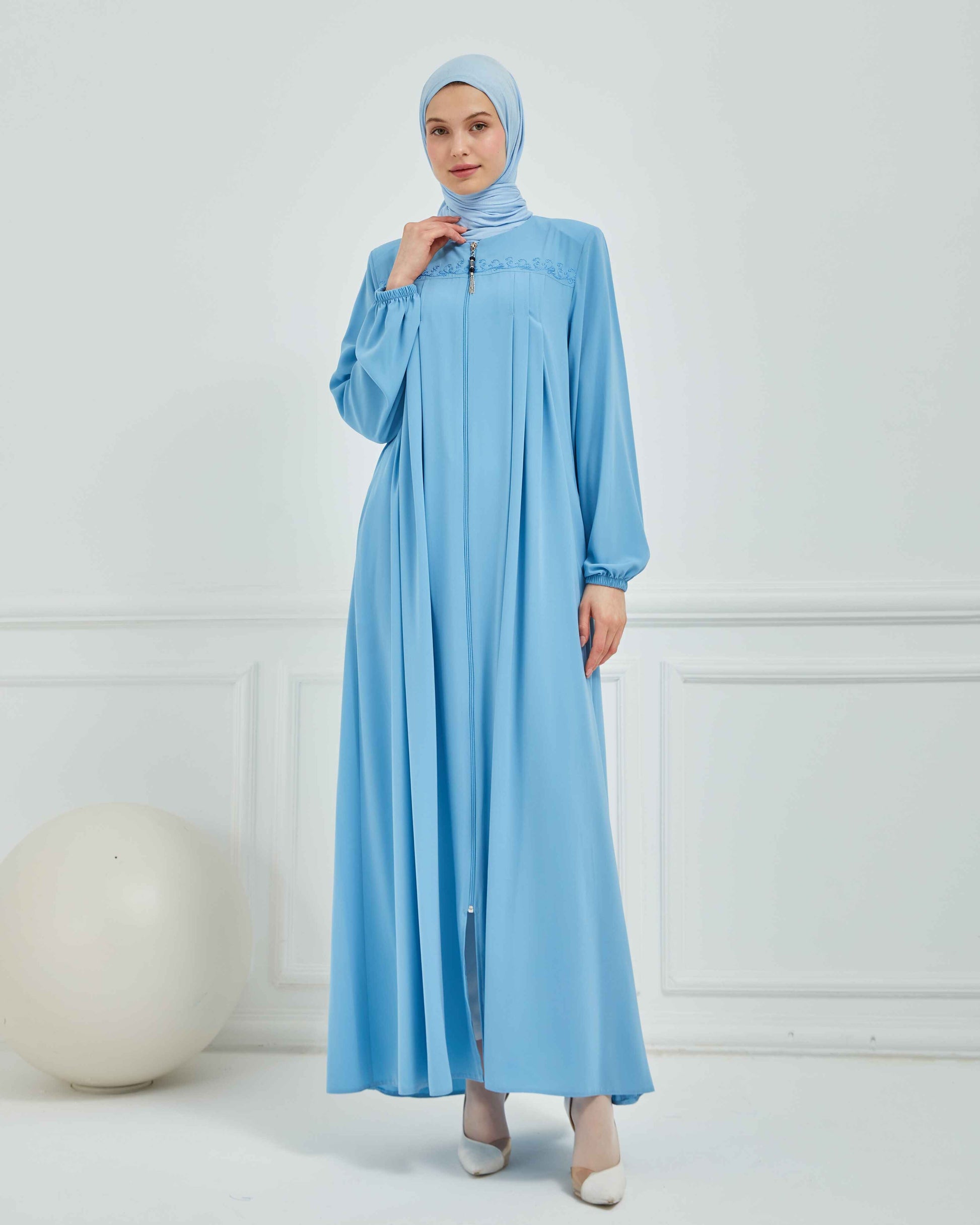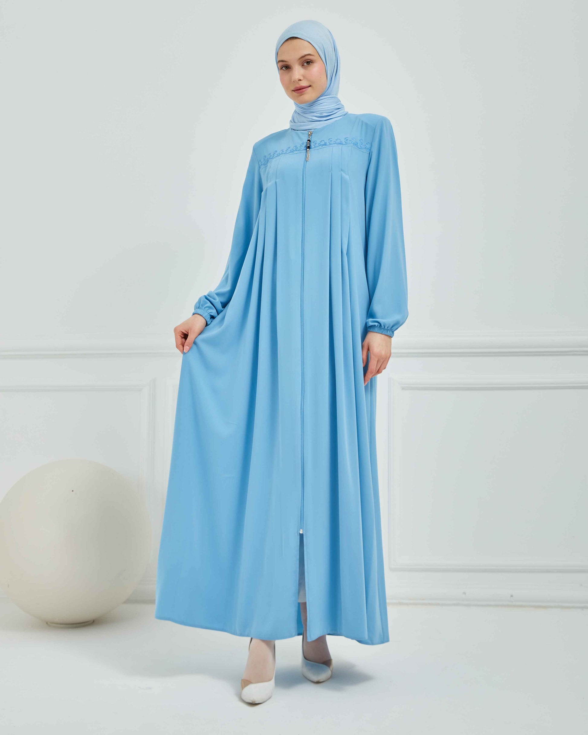 Nakışlı Pileli Ferace Bebe Mavisi | 210531