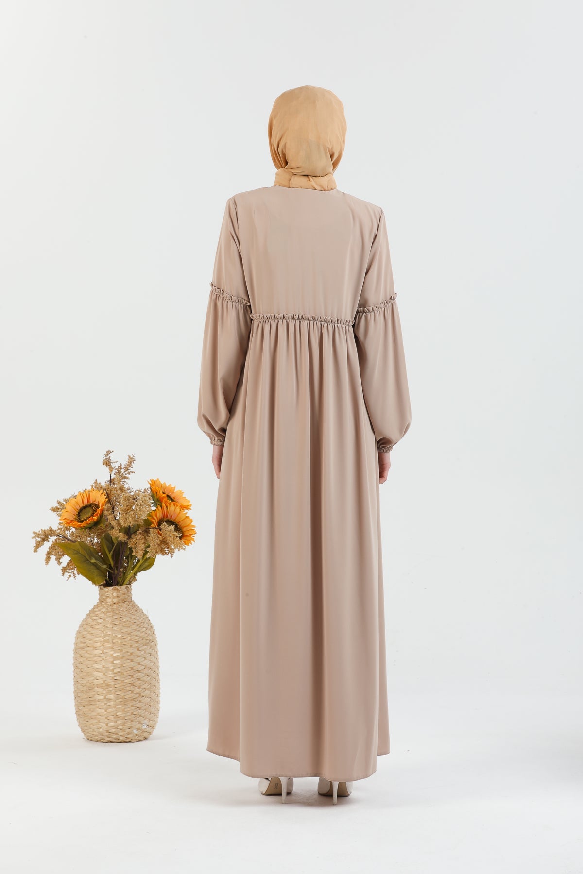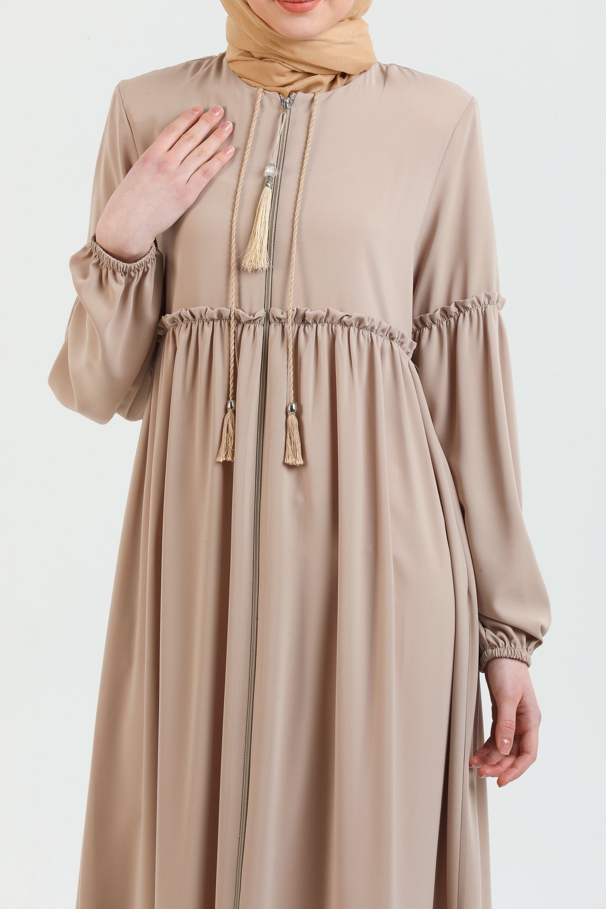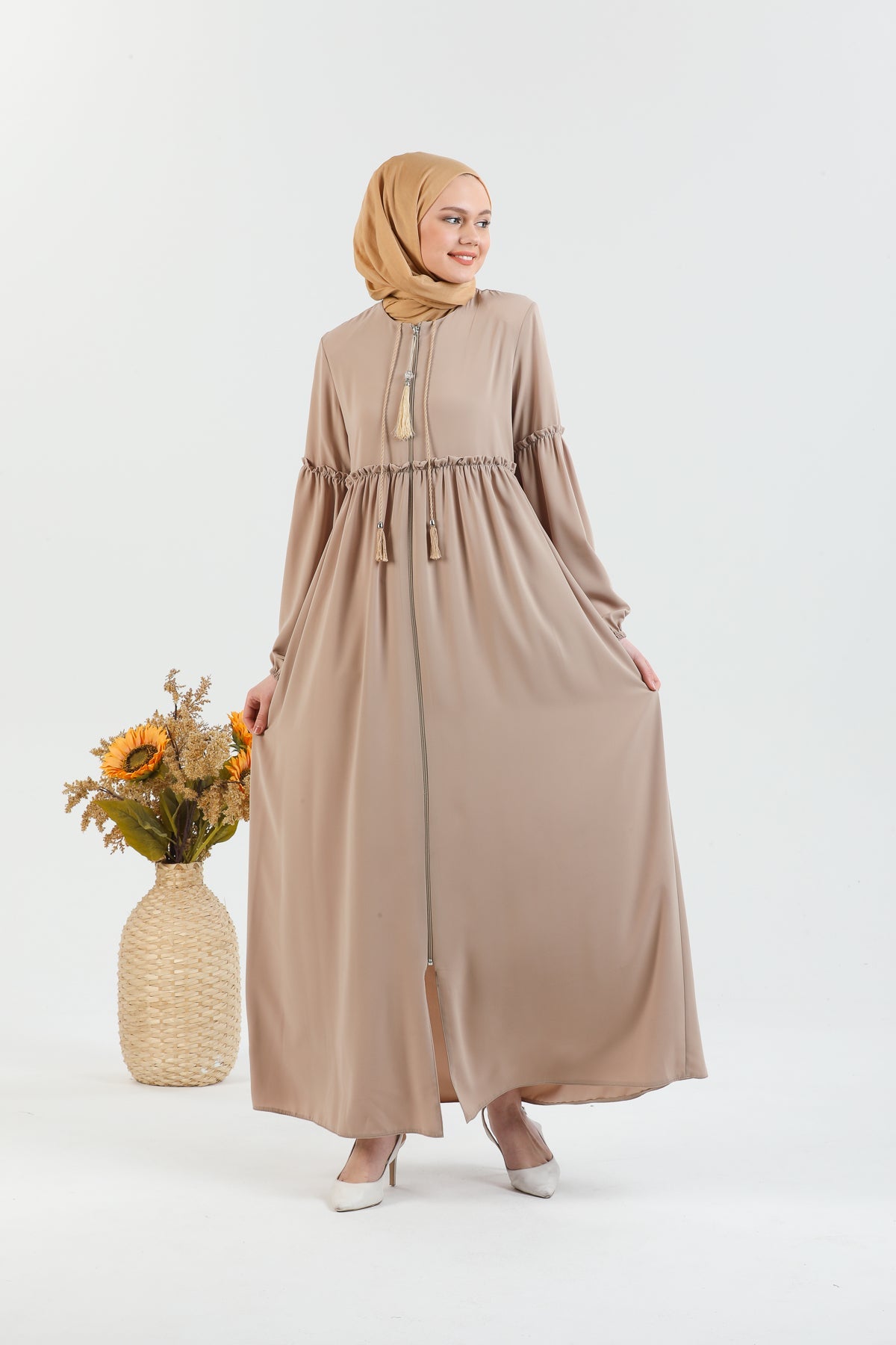 Önü ve Kolu Büzgülü Bileği Lastikli Geniş Kol Ferace Vizon | 206123
