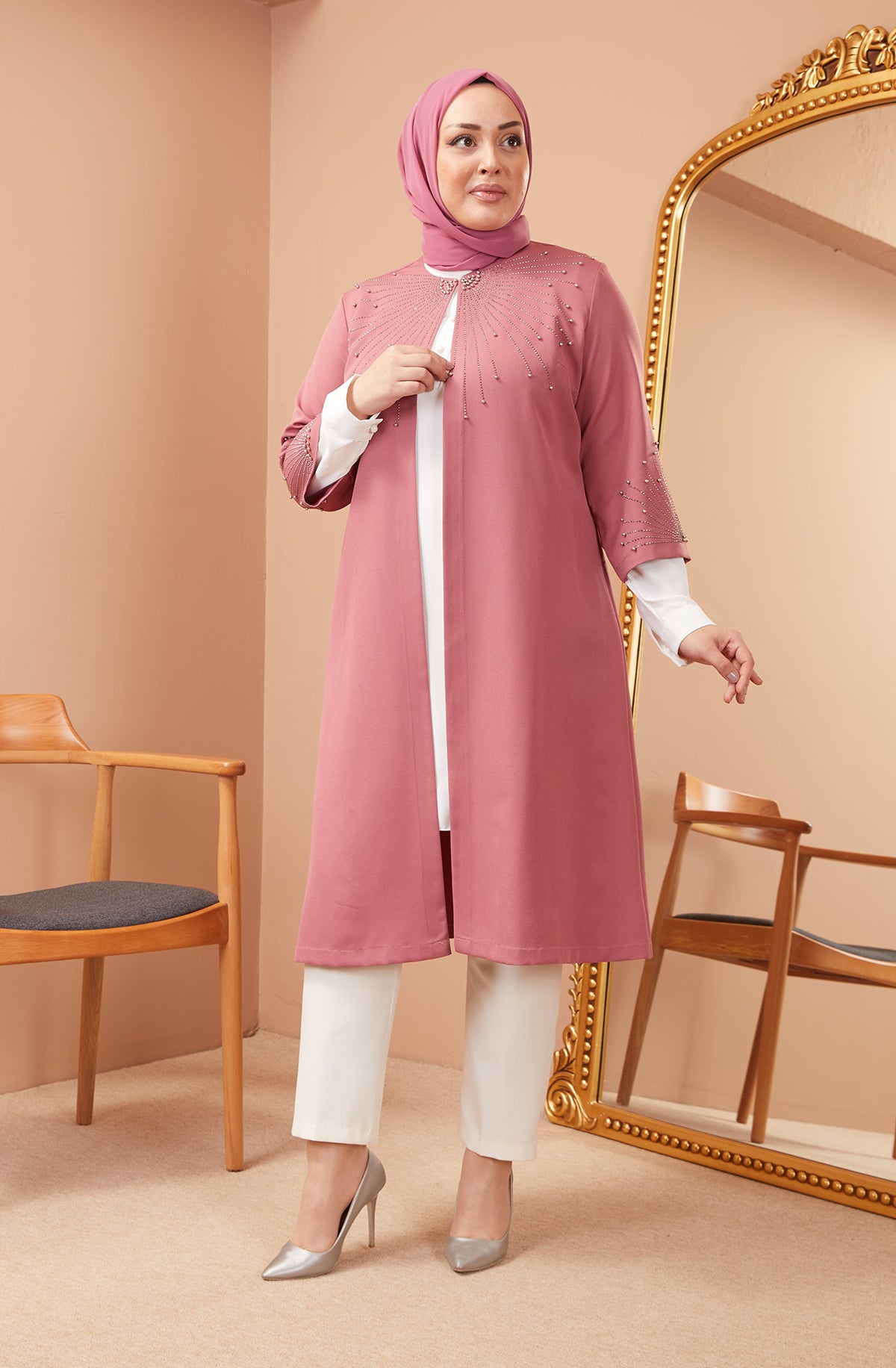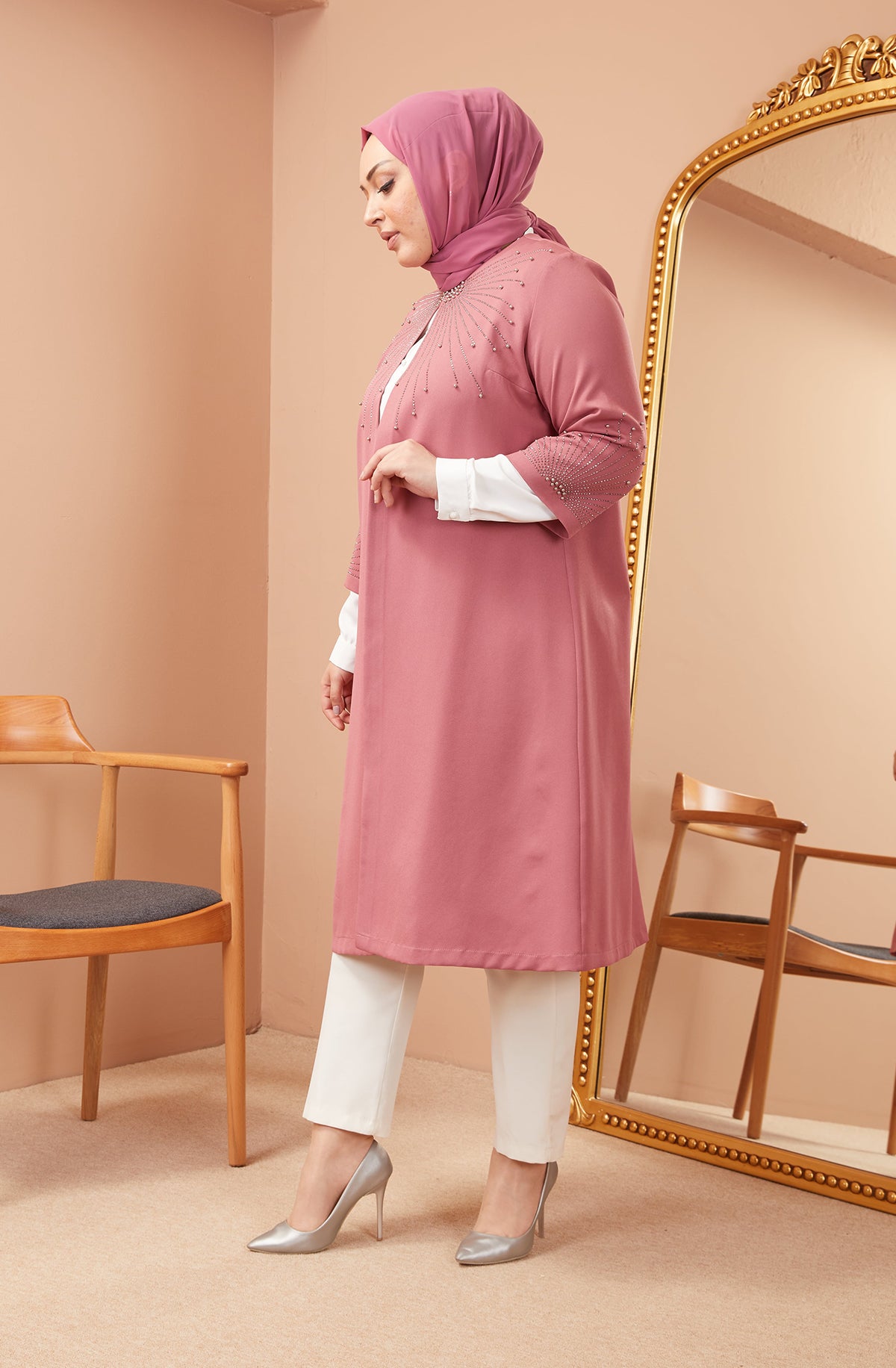 Taş Detaylı Ceketli Takım Pembe | 1100133