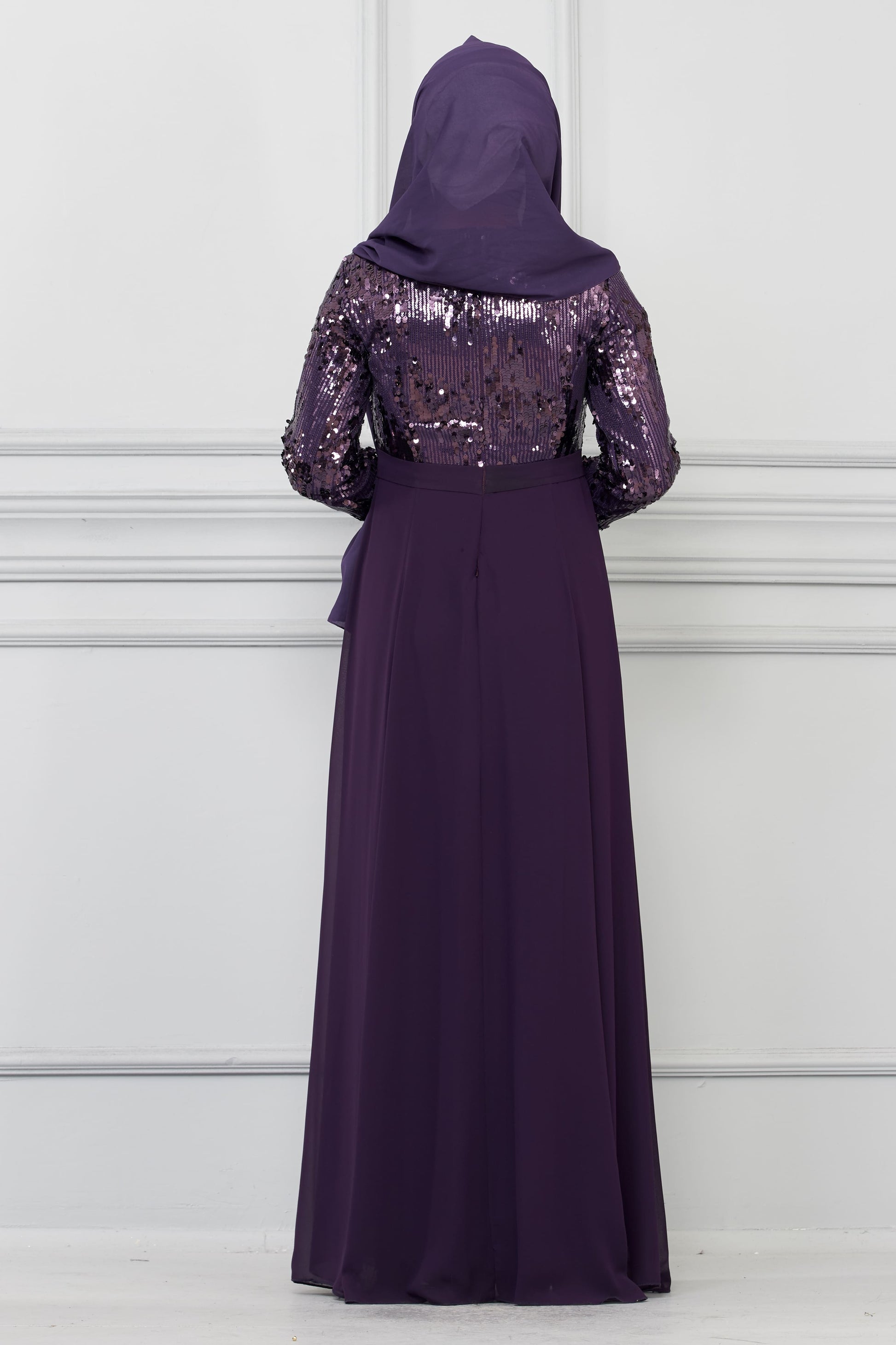 Üstü Pul Payet Altı Şifon Detaylı Abiye Mor | 701912